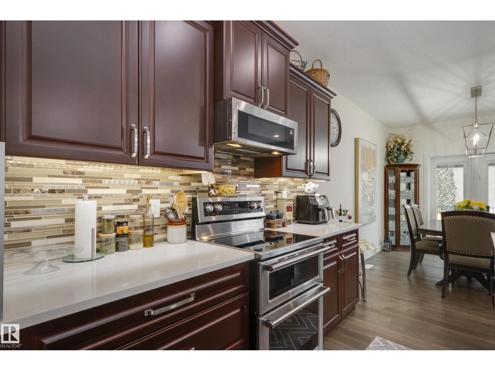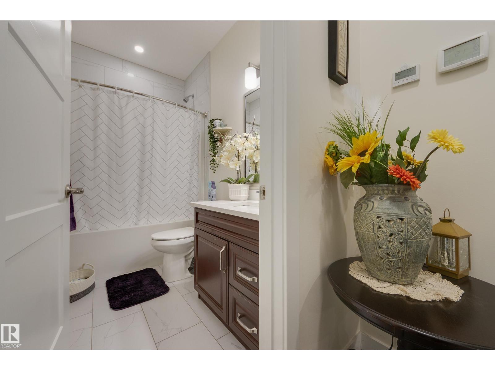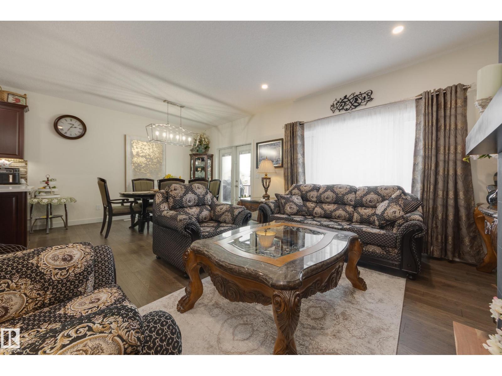 Welcome to this exceptional custom-built home in the quiet, family-friendly community of Gibbons! This thoughtfully upgraded bi-level was designed with comfort and function in mind. Enjoy an oversized heated attached garage, central A/C, 9’ ceilings, and a high-quality HVAC system that keeps the home comfortable year-round. The open-concept main floor features a bright living room and cozy gas fireplace. The designer kitchen stands out with upgraded maple cabinetry, soft-close doors and drawers, and custom finishings that elevate the entire space. Two well-sized main-floor bedrooms and a full 4-piece bath are perfect for kids, guests, or a home office. Upstairs, the private primary suite offers a quiet retreat with its own 4-piece bath. The finished basement adds a cozy family room and two large bedrooms, providing space and comfort for everyone. Outside, the fully landscaped yard includes multiple fruit trees, a gazebo for relaxing, an RV pad, and underground sprinklers. This home checks all the boxes! (id:63190)