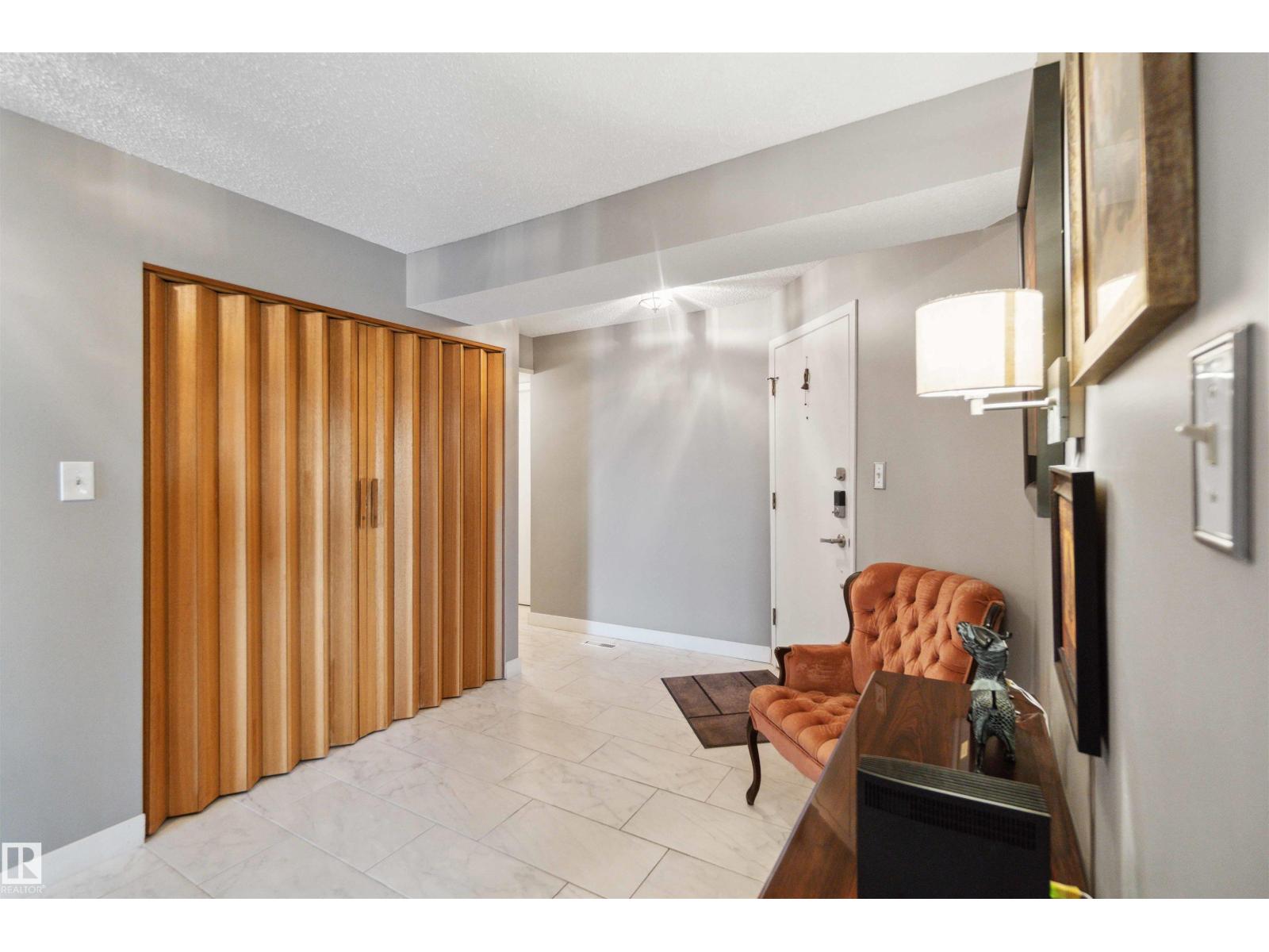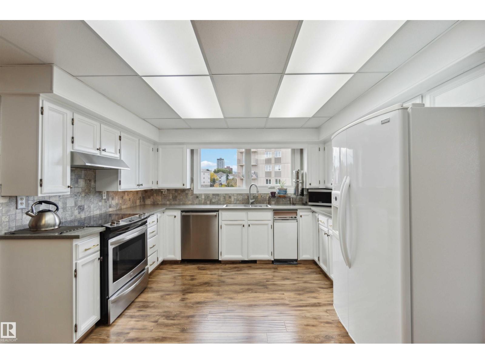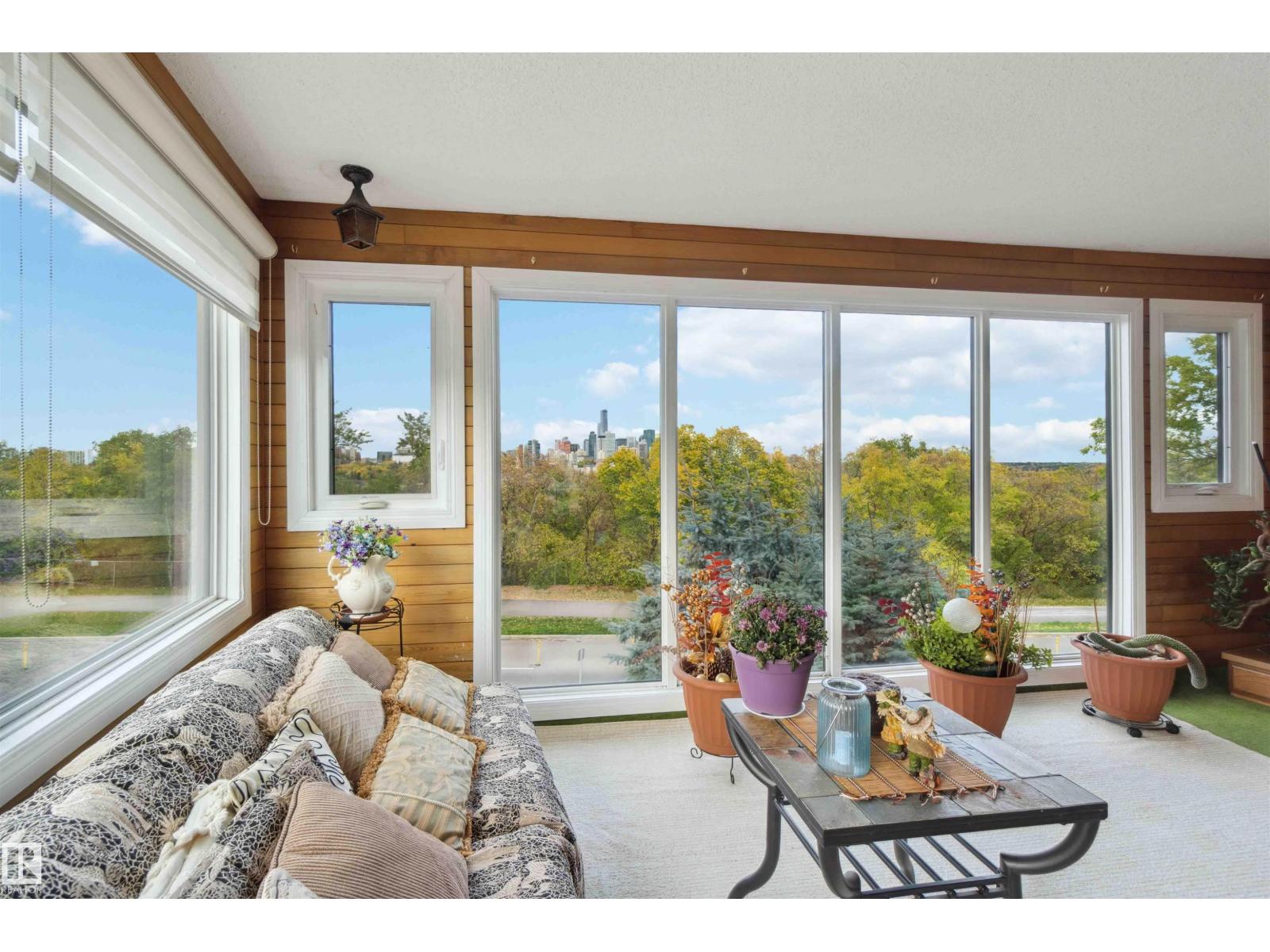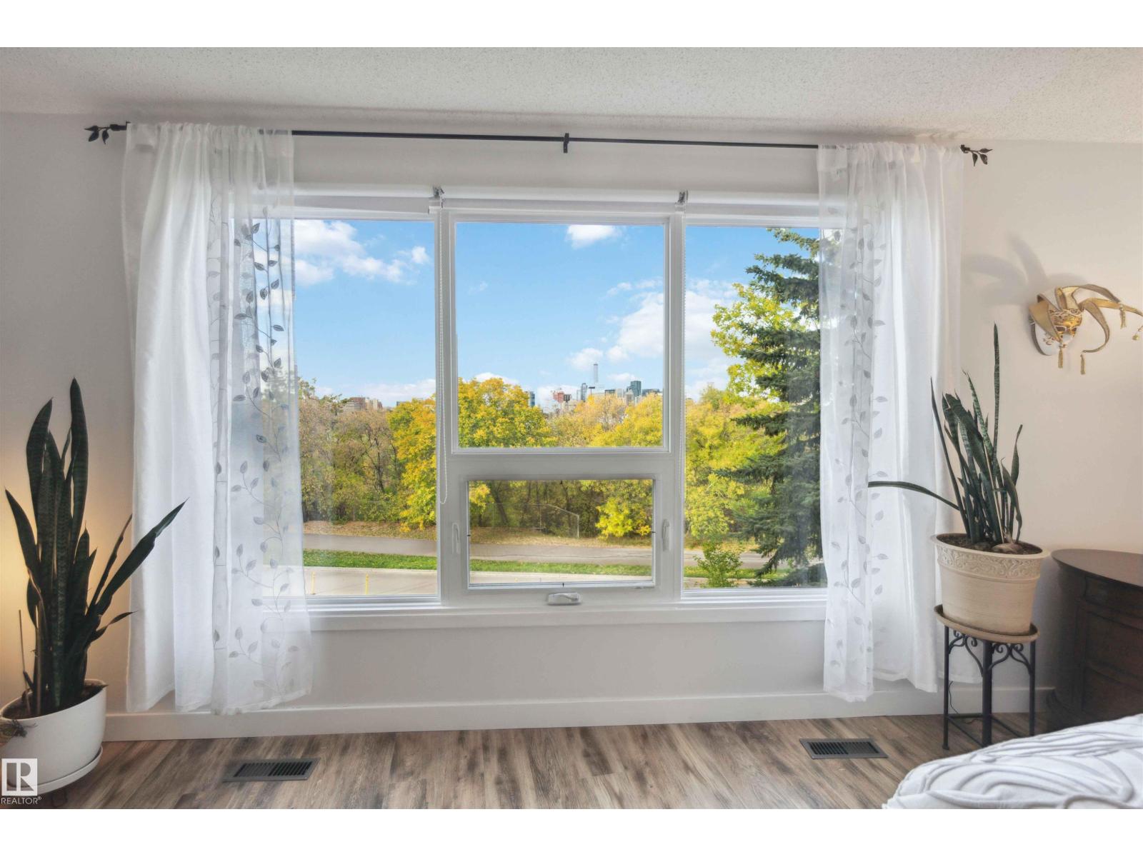 Saskatchewan drive! With only 7 units in the self managed complex you get the best one - 3rd floor unit with the VIEW of downtown, Parliament Building and River Valley! All the amenities are nearby: transportation, parks, Kinsmen rec centre, world class pools, Whyte ave with all entertainment and shopping, University of Alberta, UofA Hospital, Hawrelak park, tons of walking and bike trails along the River valley and much more! All 5 min walk! Unit was upgraded with new quartz countertops, backsplash, some appliances, new flooring and windows as well as furnace & hot water tank, central AC, roof (2019). Gas fire place for cozy evenings. 2 titled underground PARKING stalls+titled STORAGE comes with the unit. There are NO restrictions - age, any pet, any rental! Healthy Reserve fund. Over 2100 sq ft living space on one level is very convenient! $1400 condo fee for that size of the unit is very reasonable!Complex offers guest room, sauna, party/conference room at no cost for the residents!Ready to move in! (id:63190)