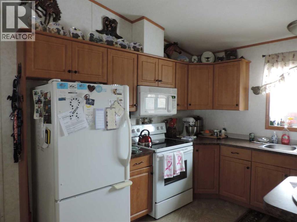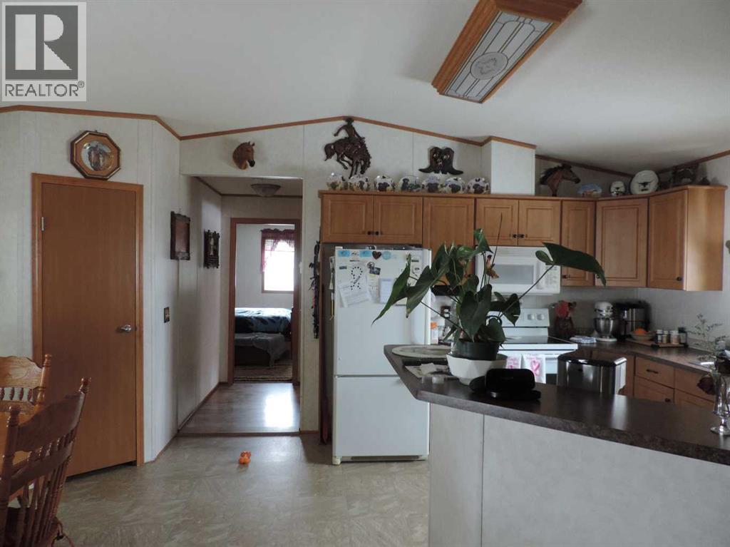 Here is an acreage that is waiting for a family to hobby farming! This 9.84 acres has a barn, sheds, corrals, trees, open area and so much more. Located about 5-10 minutes West from the growing hub of Rimbey. Rimbey has a hospital, churches, schools, commerce, swimming pool, entertainment, clubs, walking trails and so much more to offer. If you a bord its because you wan to be. The home has Vaulted ceilings with 1440 sq. ft. of living space containing four bedroom two large four piece baths (one being an ensuite). The kitchen and living room is open concept in design. Main floor laundry, Front and back deck, 10'x24' 2-tier, 8.6,x16' and a ground level 8'x11' with railings as well as a dog run complete this well kept living quarters. There is a heating 24x2 double detached garage, 220 wiring in a 12,x16; work shed plus a huge 34'x32' detached shop will keep your busy hand busy. there are other smaller sheds for the toy and other support equipment. The drive way has an entrance and an exit as well as being shelters with large pine treed. If you are looking for country living and yet close to people, then look no further; YOU ARE HOME. (id:63190)