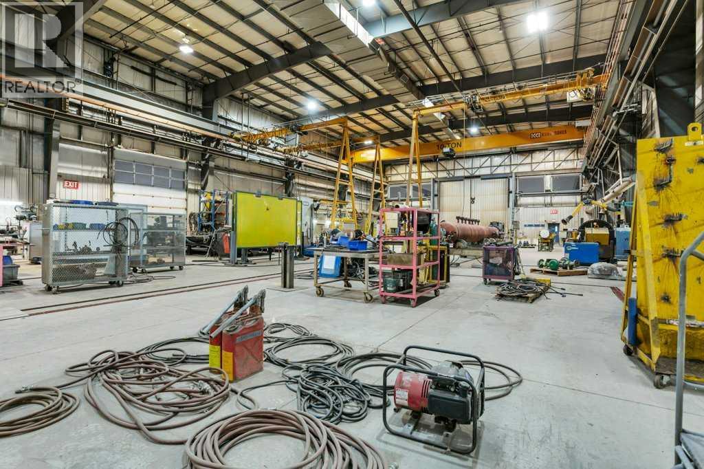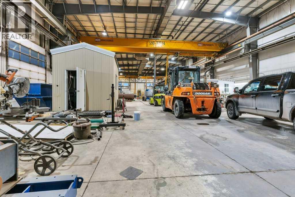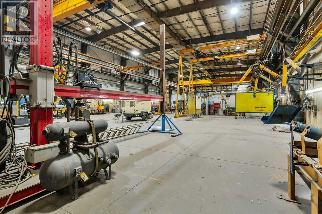 Now offering "For Lease" in the fast paced and quickly expanding area of Gasoline Alley next to the south end of Red Deer, AB. A well maintained and equipped 45,553 sqft office / shop / manufacturing facility on approximately 5 acres. 2 story multiple office area and an attached 29,200 plus sqft shop, detached cold storage building, sandblasting building, and storage tent. The shop consists of a 10 ton and 20 ton crane on the east and west ends of the shop that are capable of travelling to the exterior of the shop on a crane rail. (4) 2 ton cranes located throughout the interior of the shop. Fume extraction systems for welding, compressed air systems and floor drain / sump system. Large paint bay in the main shop with a steel partition door and a smaller detached heated enclosed paint bay outside. 22' wide x 18' high bay doors in the main shop with various other overhead doors. 120/240/480/600 volt availability. Centralized make up air unit. 6 zone radiant heaters. Lunch rooms, locker room areas, multiple washrooms. Lease rates are as follows: Office space $15.00 per sqft plus $4.50 per sqft additional rent. Shop space $12.00 per sqft plus $4.50 per sqft additional rent. Detached heated paint bay $12.00 per sqft plus $4.50 per sqft additonal rent. Cold storage building, sandblasting building and tent $5.00 per sqft. (id:63190)