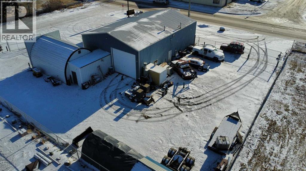 Excellent opportunity to own a versatile commercial property in Bassano, Alberta, complete with a fully fenced 0.43 acre yard and a well equipped shop designed for productivity and growth. The main shop features three overhead doors measuring 10, 12, and 14 feet, along with a 16 foot ceiling height and three vehicle hoists, making it ideal for servicing large vehicles and equipment. The front portion of the building offers a welcoming display area, dedicated office space, and two washrooms, creating a functional and professional environment for both staff and customers. An additional covered and heated parking area has been added, providing extra workspace and year round convenience. The current owner operates an automotive repair and vehicle recovery and towing business from this location and is willing to include all equipment and tow trucks with the sale. This allows a new owner to step in and start earning income immediately. With its prime location along the Trans Canada Highway, this property is exceptionally well suited to continue as an automotive repair and towing operation, benefiting from highway exposure and steady demand. There is also excellent potential for expansion and future growth. Whether you are looking to take over an established operation or launch your own commercial venture, this is a rare chance to acquire a fully set up commercial facility in a strategic location. (id:63190)