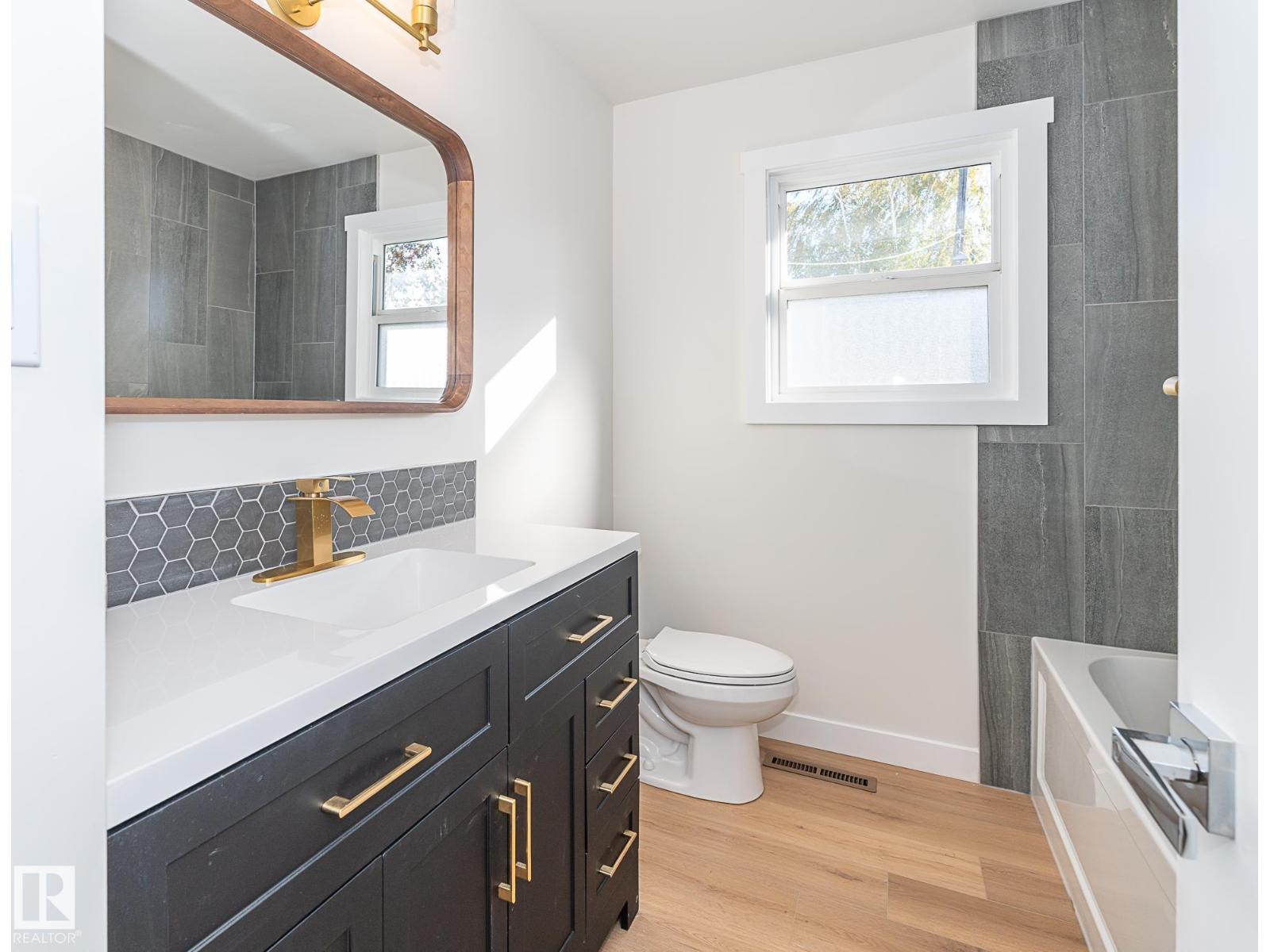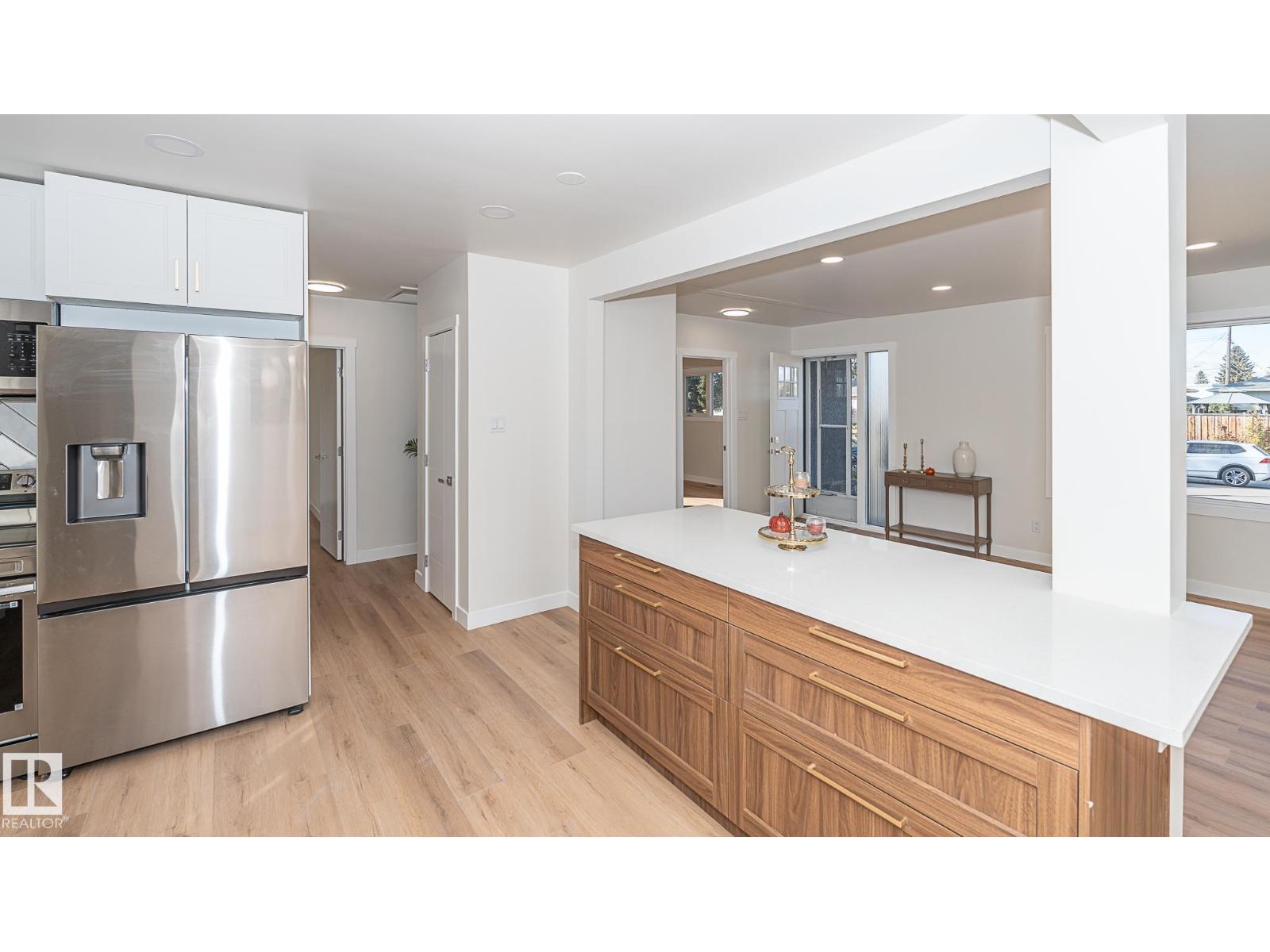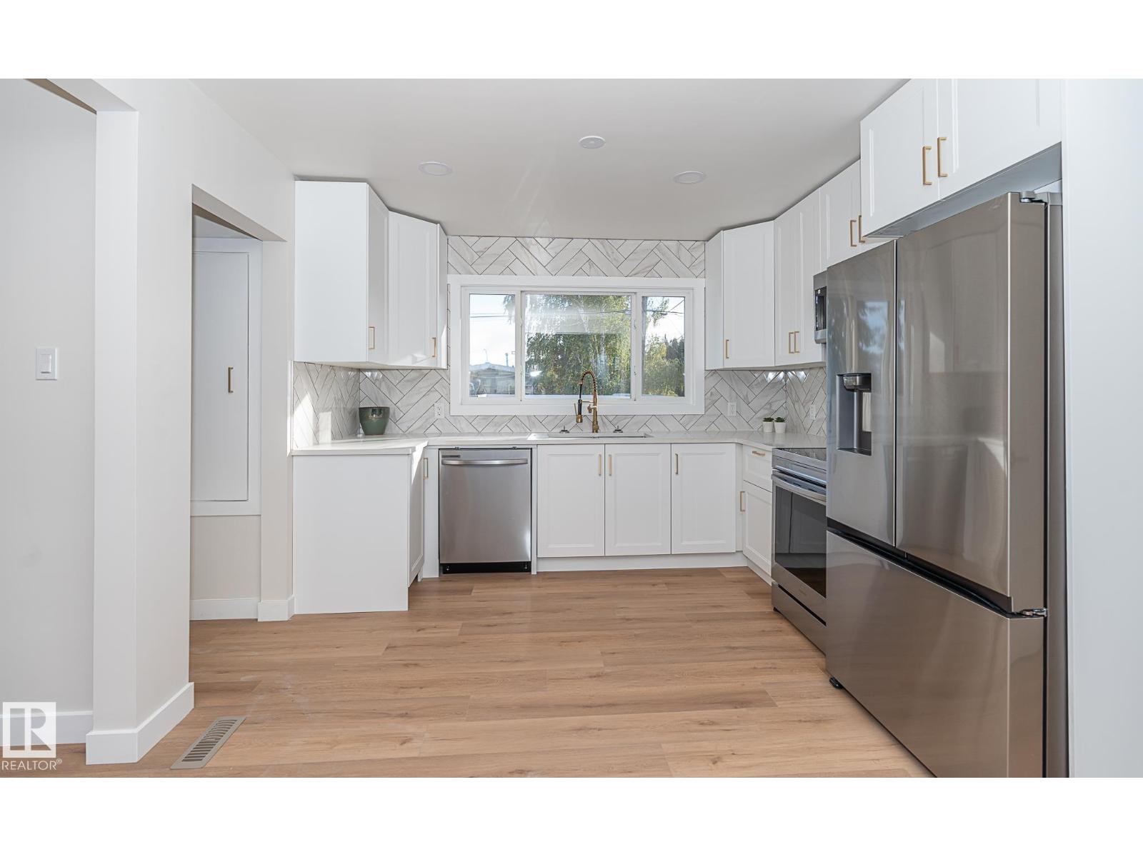 Turnkey, beautifully reborn bungalow in sought-after Terrace Heights. Sunlight fills the open-concept main floor through large windows, showcasing all-new flooring and a stunning chef’s-dream, entertainer’s-delight kitchen with quartz counters, custom cabinetry and stainless appliances. The home offers 4 spacious bedrooms and 3 fully remodeled bathrooms, including a spa-style ensuite and a newly designed walk-in closet for the primary suite. The fully finished basement nearly doubles the living space and is ideal for teens, long-term guests, a live-in nanny, home gym, media room or private office. Located on a quiet, tree-lined street minutes from downtown, schools, parks and shopping. Beyond the beautiful finishes, the home also delivers key structural upgrades: full plumbing conversion to PVC, re-engineered ducting for consistent comfort, and professional exterior regrading with refreshed landscaping. Modern style, peace of mind and true turnkey living in one of Edmonton’s most established communities. (id:63190)