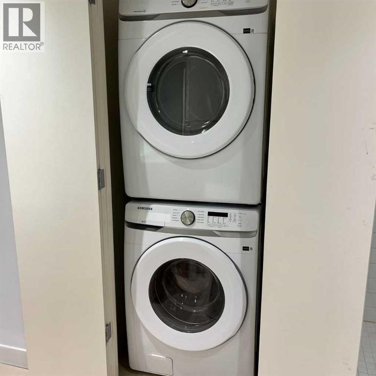 Brand New Oven,Brand New Refrigerator,Brand New Washer,Brand New Dryer. comfort, well-maintained air-conditioned 1-bedroom + den condo, located in the heart of Calgary’s Beltline .An efficient open-concept layout seamlessly connects the kitchen, dining, and living areas. The U-shaped kitchen is equipped with a gas cooktop, oven, microwave hood fan, refrigerator, dishwasher, tiled backsplash, ample cabinetry, and a breakfast bar island. Sliding doors from the living room open onto a generously sized balcony. floor-to-ceiling windows complete the bright bedroom and living room. The den/storage provides excellent flexibility to set up an office. The unit includes titled heated underground parking . Building amenities include full time concierge, bike storage room, guest suites, fitness room, party room, in building visitor parking. (id:63190)