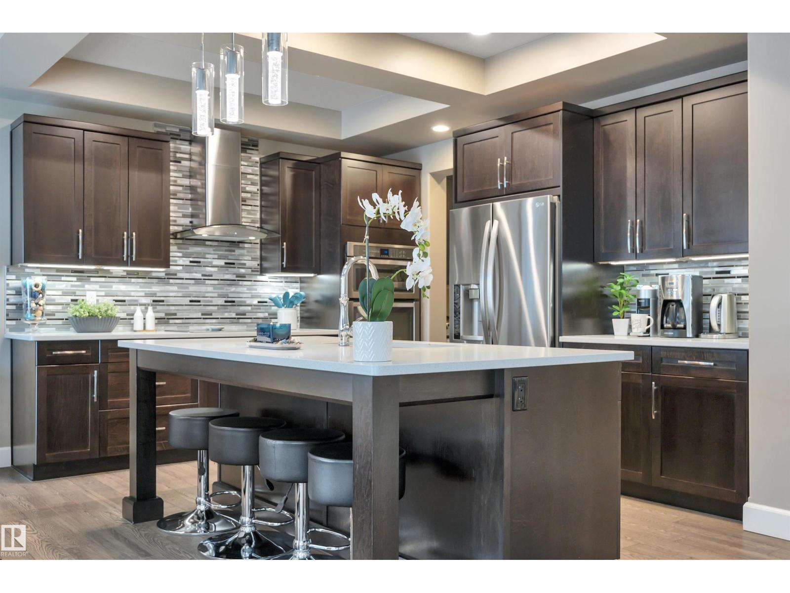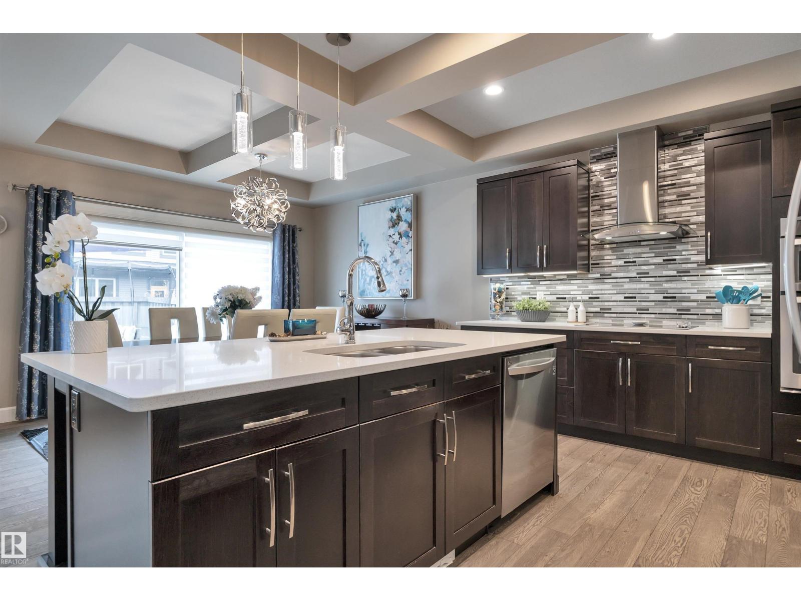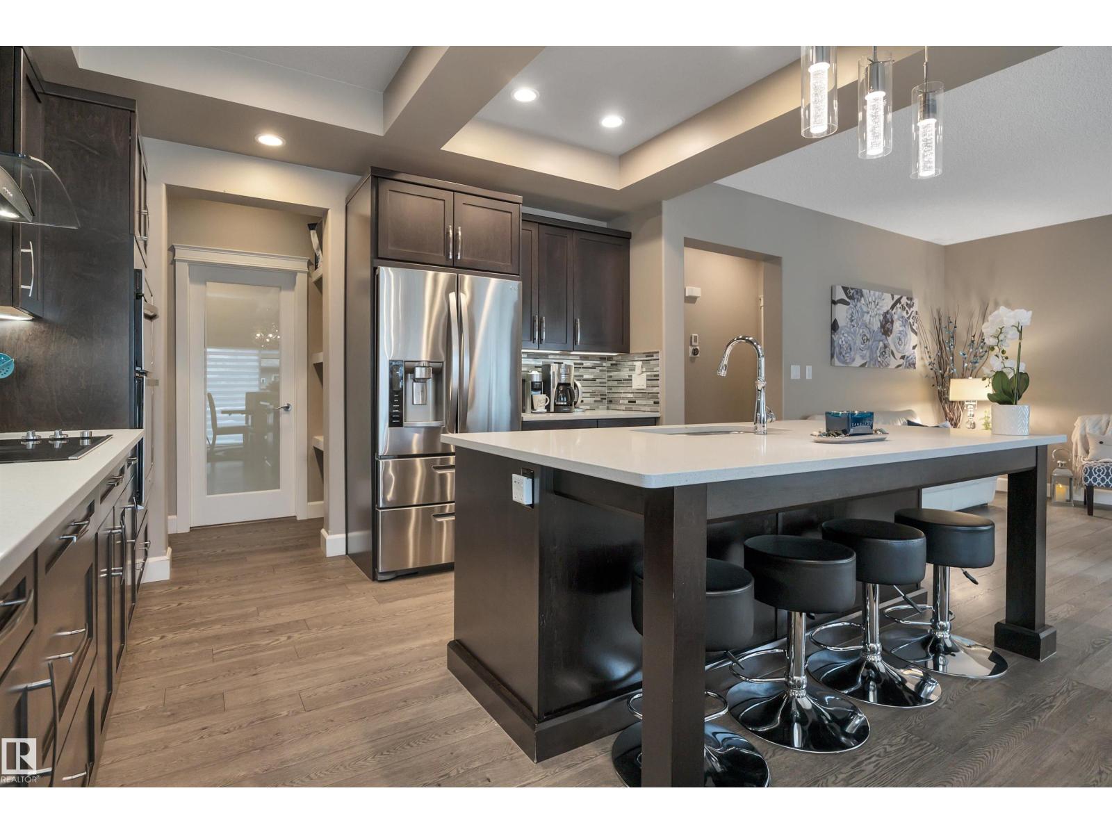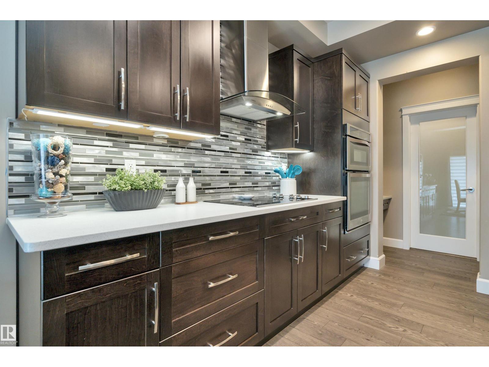 Beautiful EXECUTIVE 2 storey home with 3600 sqft total living space, low maintenance ARTIFICAL TURF, DECK!UPGRADED with Brand new CARPET and COUNTER TOP STOVE(2026) , Coved 9' ceiling, HIGHEND Espresso cabinetry, QUARTZ counters,massive ISLAND in the Chef's kitchen with B/I SS appliances, FRENCH door to the large walk thru BUTLER PANTY to the Mudrm leading to the oversized Finished HEATED Garage. GREAT rm with FEATURE GAS FIREPLACE is open to the kitchen, leading to the deck. Main flr Bedrm/DEN with DOUBLE FRENCH doors. Upstairs is the PRIMARY RETREAT, LARGE BONUS rm with feature wall & High VAULTED ceiling, DOUBLE FRENCH DOORS and 2 more bedrms up.The Primary retreat is total lux with 5 pce ENSUITE Bath incl.CORNER SOAKER TUB, LARGE 5' shower, extended 2 sink VANITY across the room is the DREAM W/I CLOSET! The basement is professionally finished with large GAMES/FAMILY rm open to the GYM and has 5th bedroom, 2nd DEN, 3rd full Bathrm with Large TILED shower and beautiful vanity.Near SCHOOL,PARKS & TRAILS! (id:63190)