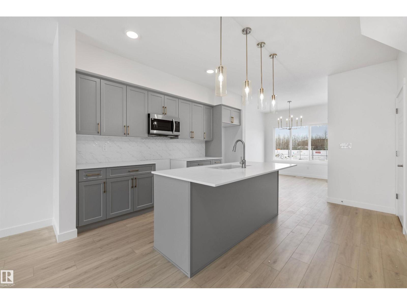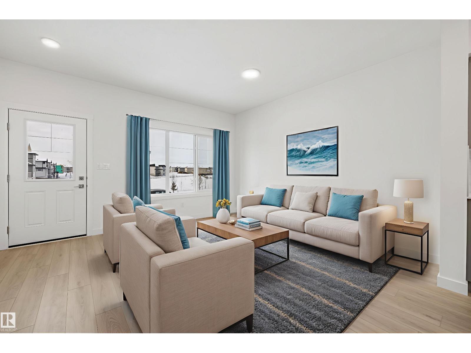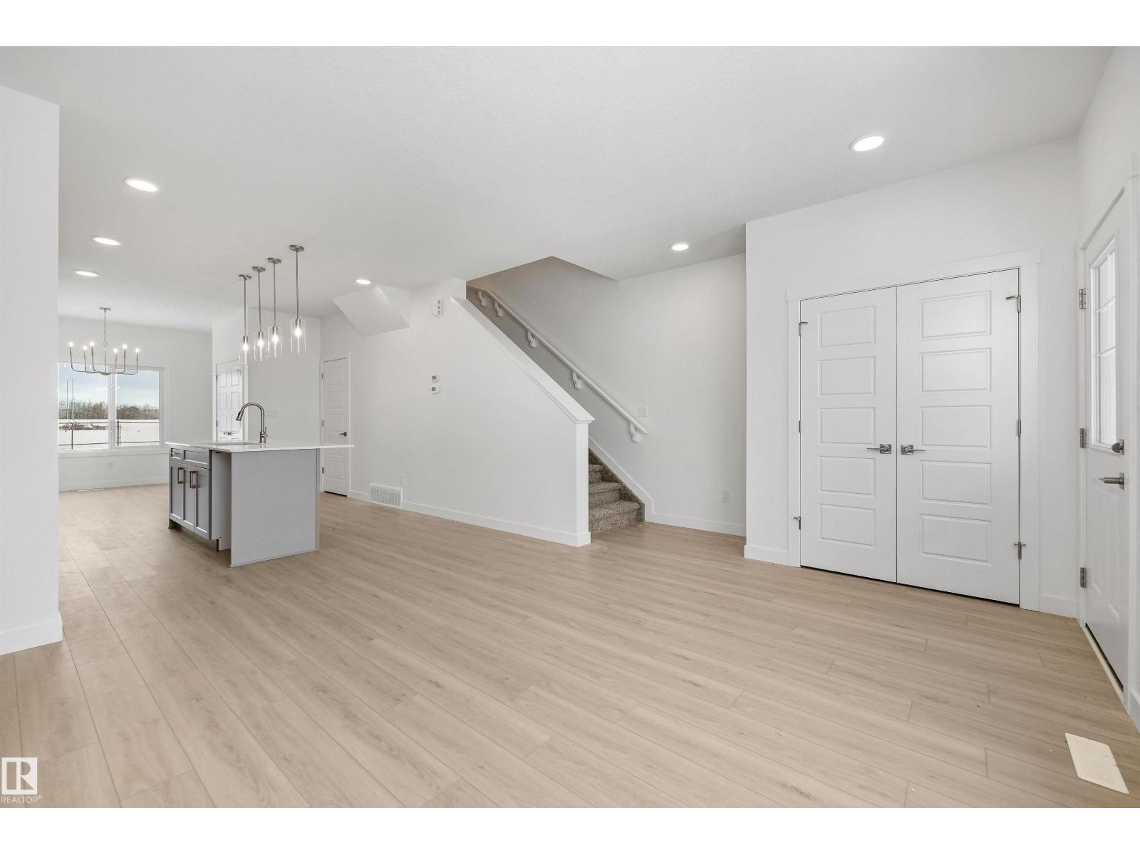 The Stellar is a premier example of balanced architecture, featuring 9’ ceilings and Luxury Vinyl Plank flooring throughout a sun-drenched main level. A welcoming foyer leads into a front great room where an expansive window pulls in constant natural light. At the center, the kitchen serves as a focal point with stone surfaces, a Silgranit sink, and an island with a built-in eating ledge. High-profile cabinetry and a dedicated pantry ensure ample storage, while the rear dining area offers clear views of the deep backyard. The back entry provides access to the parking pad, with room for an optional detached garage. Upstairs, a versatile open loft separates the secondary bedrooms from the primary suite, which includes a private walk-in closet and ensuite. Modern brushed nickel fixtures, a separate side entrance, and a stackable laundry closet complete this refined floor plan. Built to the Sterling Signature Specification, this home prioritizes both quality and daily ease. (id:63190)