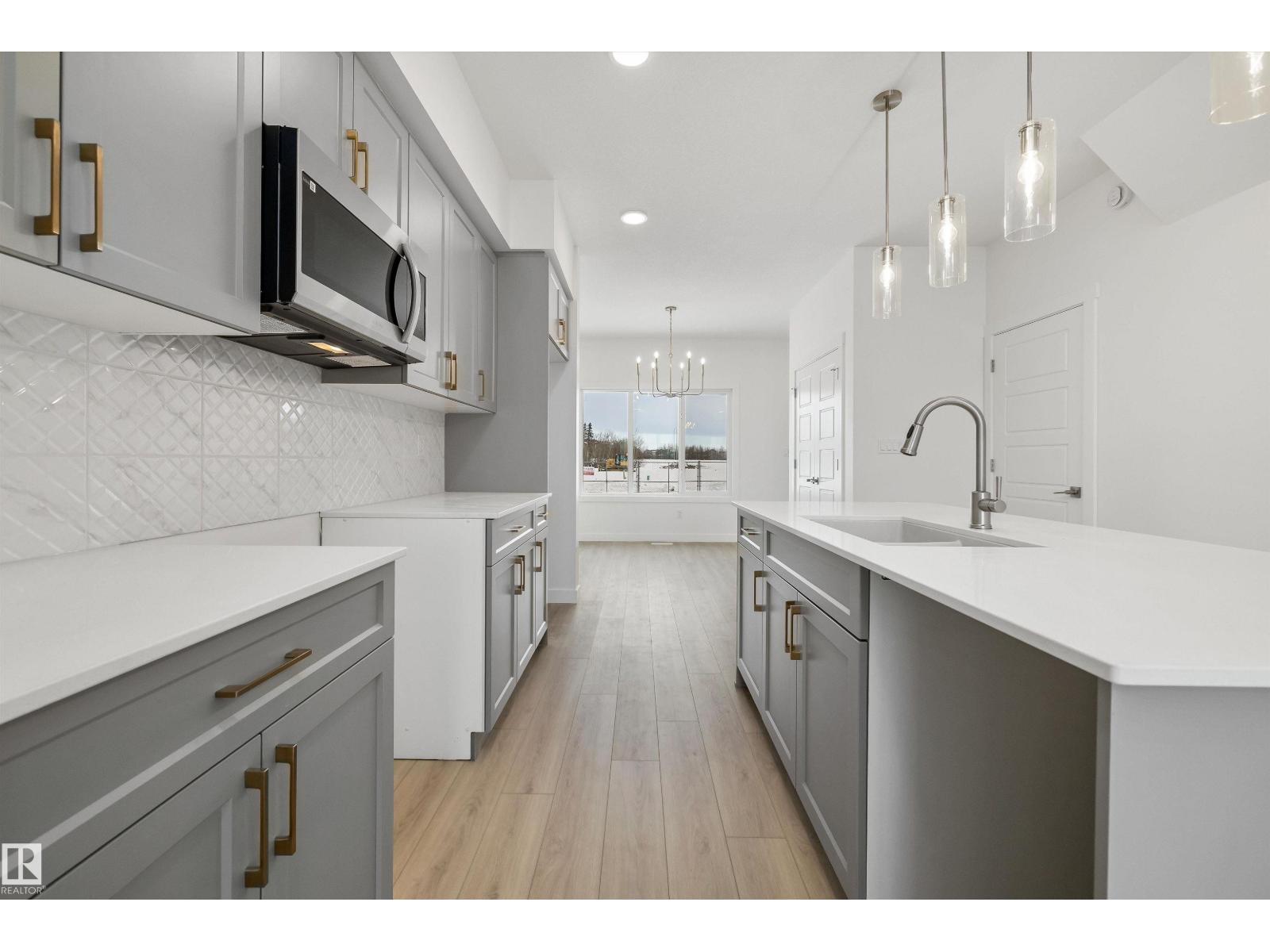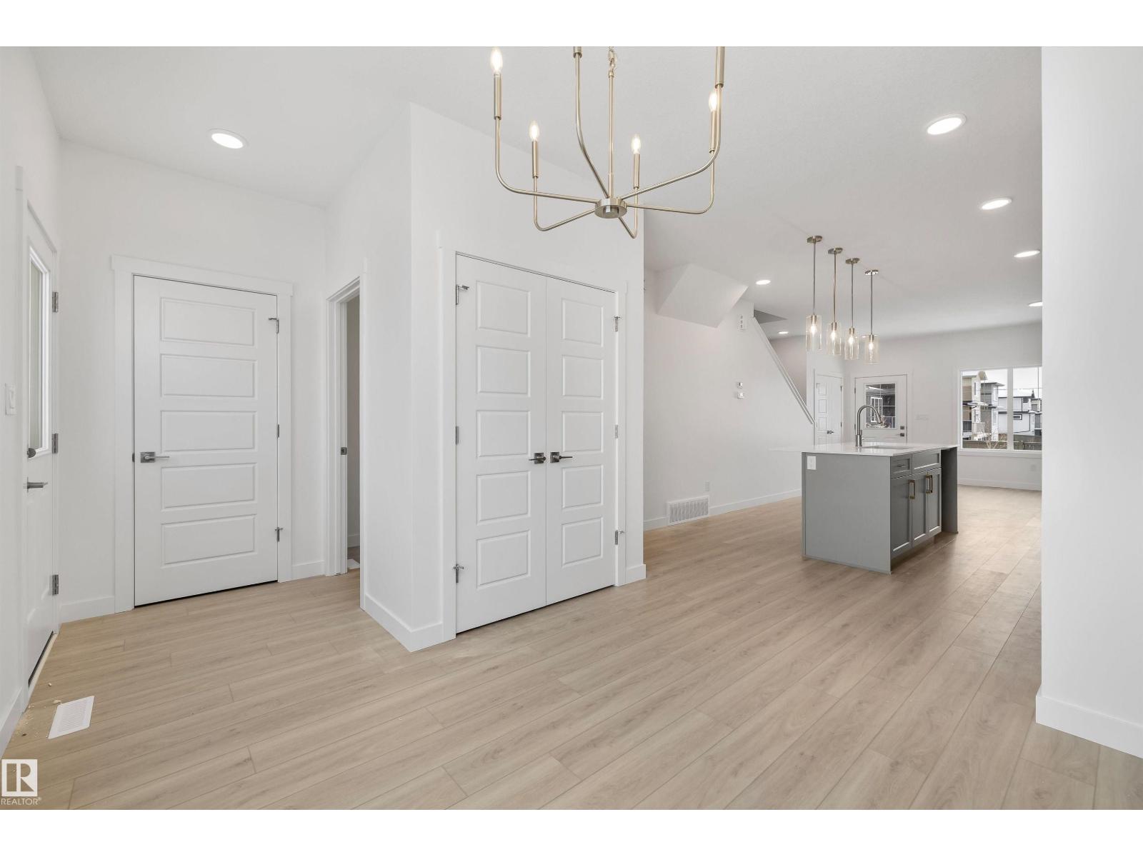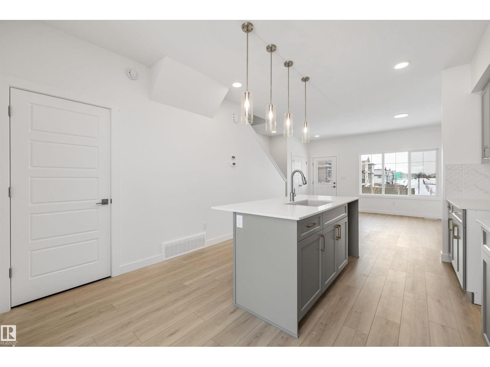 The Stellar is a premier example of balanced architecture, featuring 9’ ceilings and Luxury Vinyl Plank flooring throughout a sun-drenched main level. A welcoming foyer leads into a front great room where an expansive window pulls in constant natural light. At the center, the kitchen serves as a focal point with stone surfaces, a Silgranit sink, and an island with a built-in eating ledge. High-profile cabinetry and a dedicated pantry ensure ample storage, while the rear dining area offers clear views of the deep backyard. The back entry provides access to the parking pad, with room for an optional detached garage. Upstairs, a versatile open loft separates the secondary bedrooms from the primary suite, which includes a private walk-in closet and ensuite. Modern brushed nickel fixtures, a separate side entrance, and a stackable laundry closet complete this refined floor plan. Built to the Sterling Signature Specification, this home prioritizes both quality and daily ease. (id:63190)