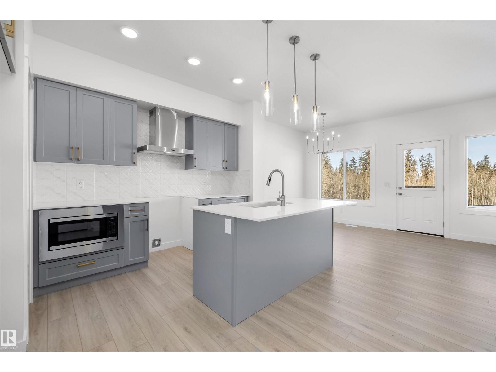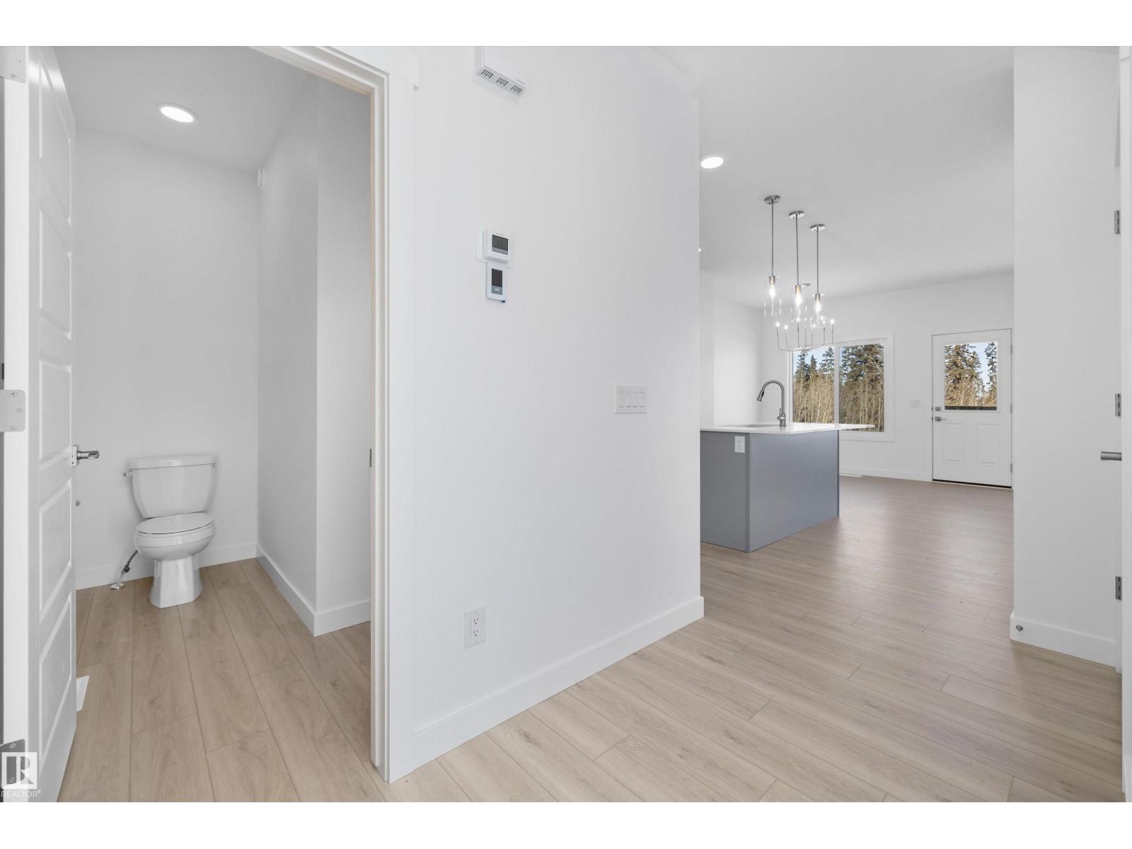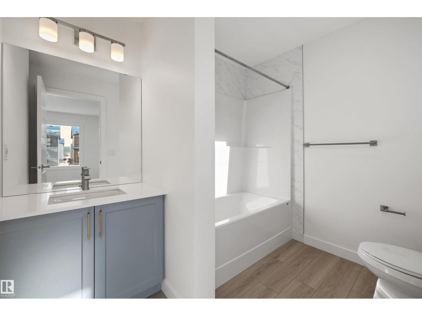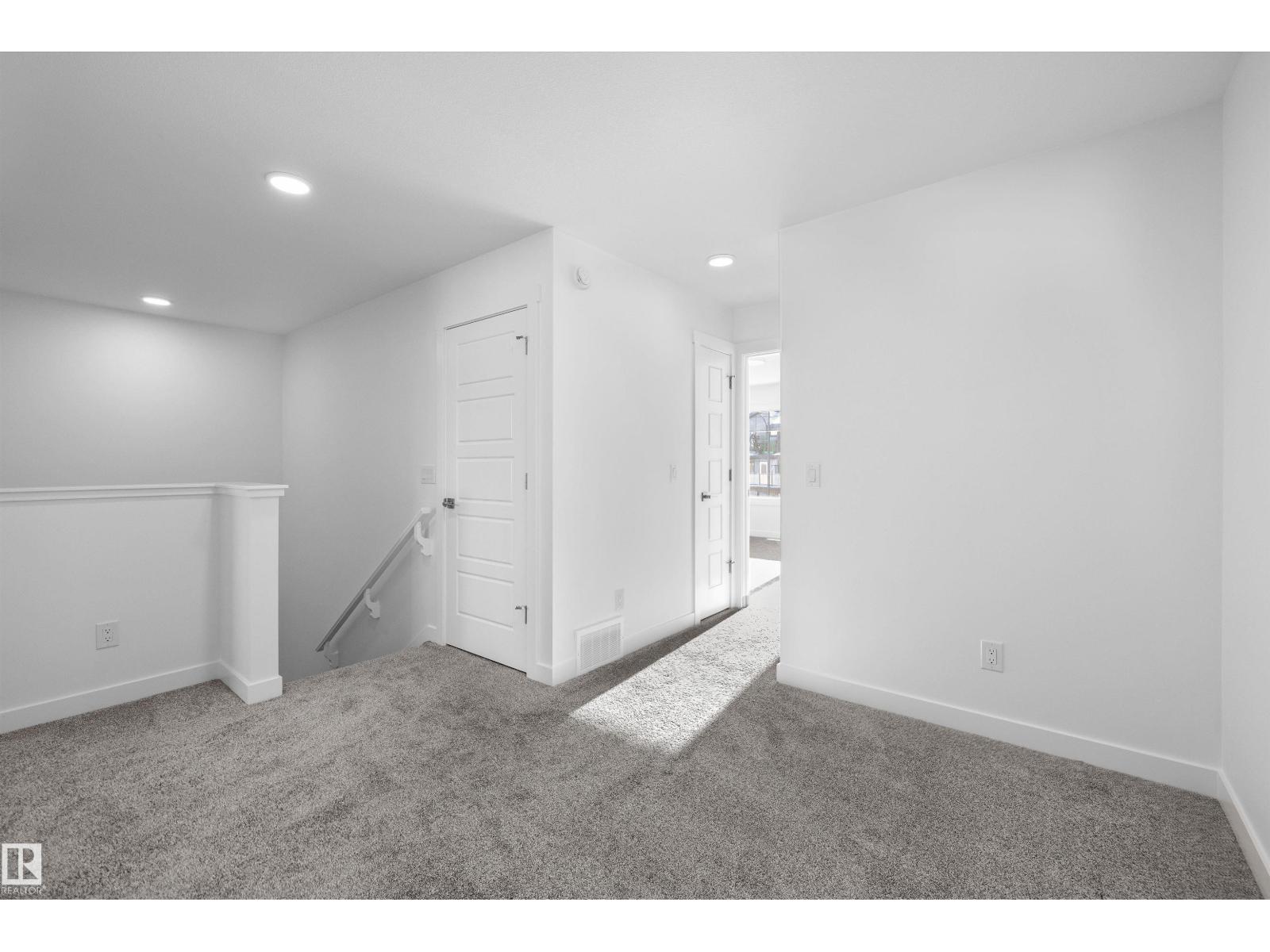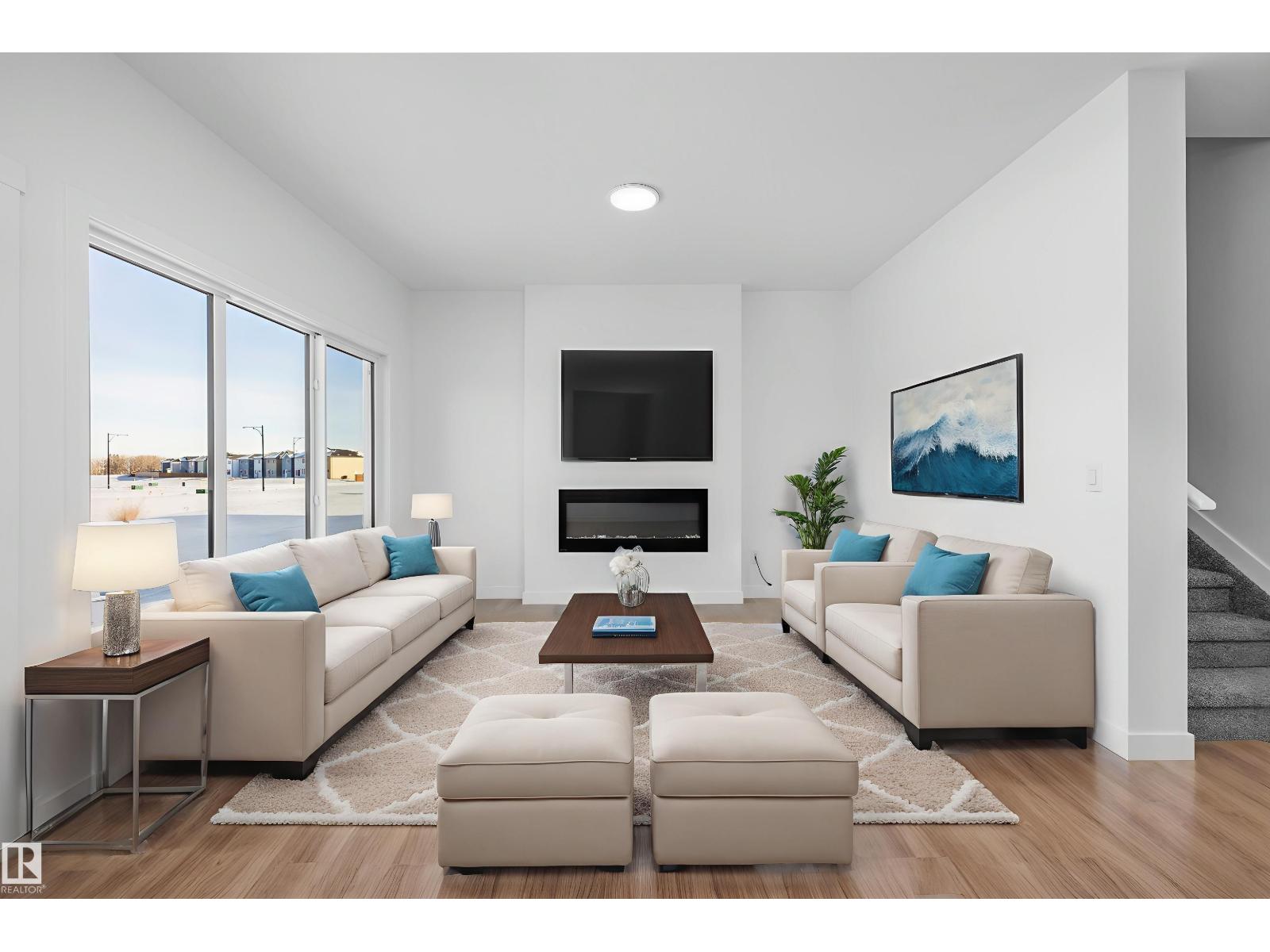 The Renew is a beautifully finished half-duplex offering a double attached garage with a floor drain, a separate side entrance, and 9’ ceilings. The open-concept main floor features durable Luxury Vinyl Plank flooring and an inviting foyer that leads to a sleek powder room. Designed for culinary enthusiasts, the kitchen boasts Quartz countertops, a flush-ledge island, and premium soft-close cabinetry with a corner pantry and chimney-style hood fan. Natural light fills the great room, which is anchored by a modern electric fireplace and sliding doors ready for a future deck. Upstairs, a central bonus room provides a versatile second living area near the dedicated laundry space and two spacious secondary bedrooms. The primary retreat includes a private walk-in closet and an ensuite with a tub-shower combination. Completed with brushed nickel fixtures and a basement rough-in, this home delivers quality and style in a functional, well-planned layout. (id:63190)