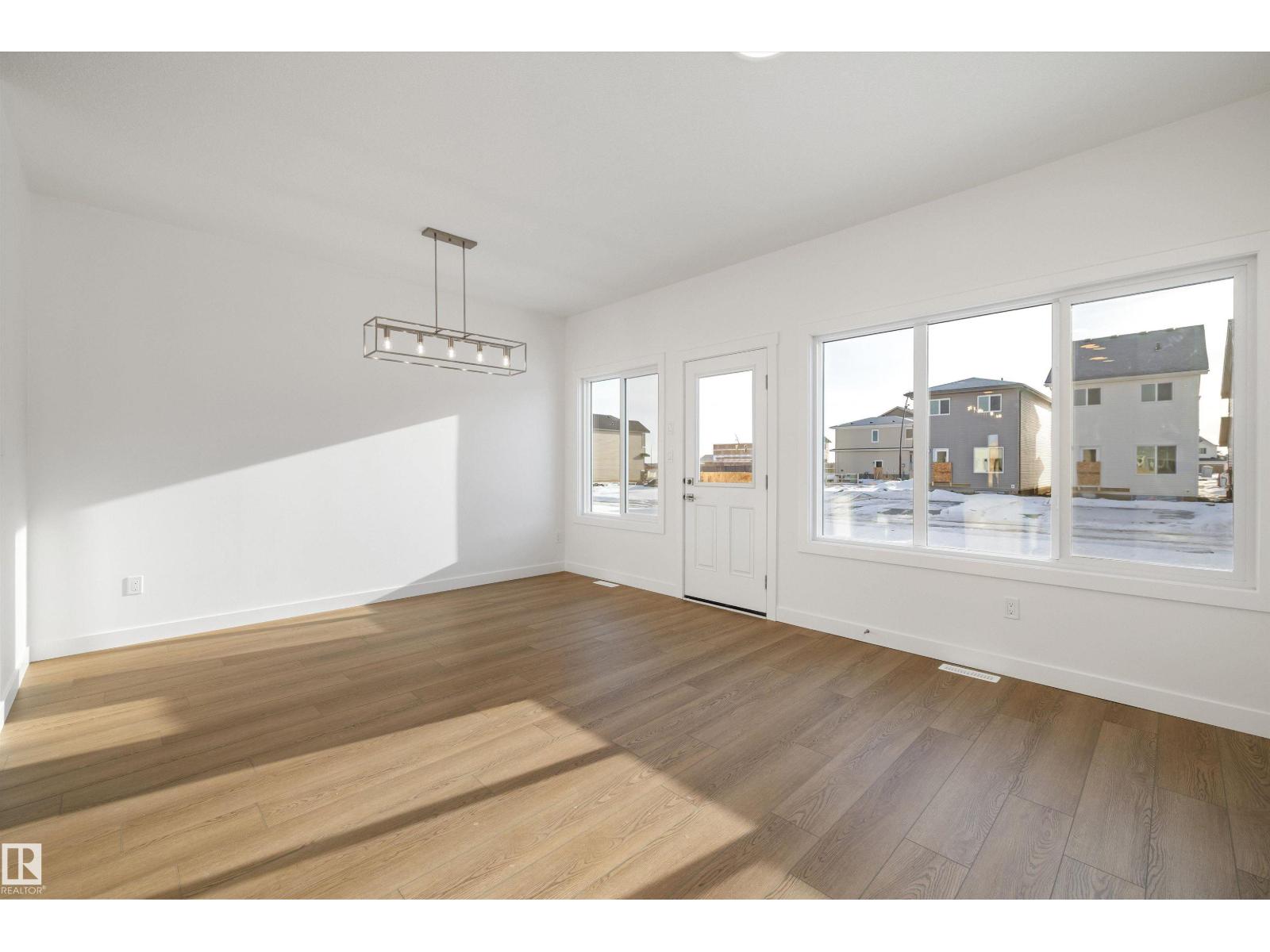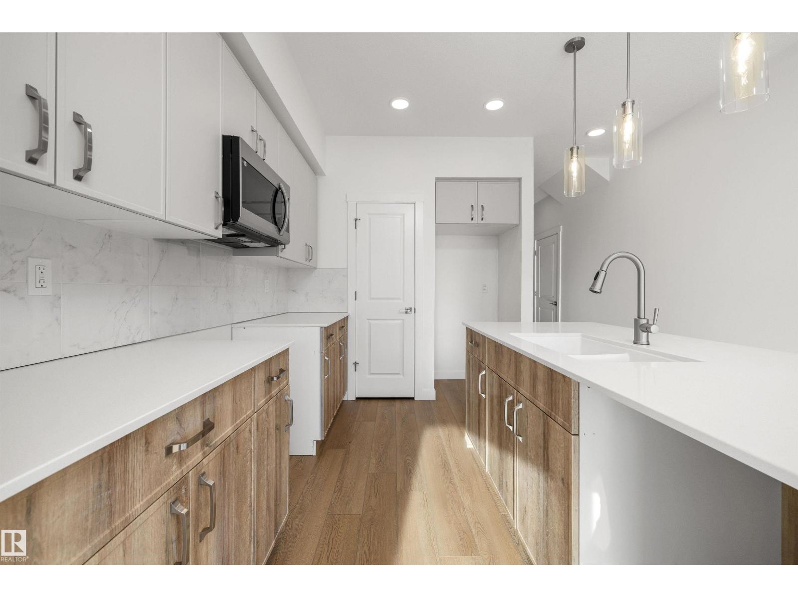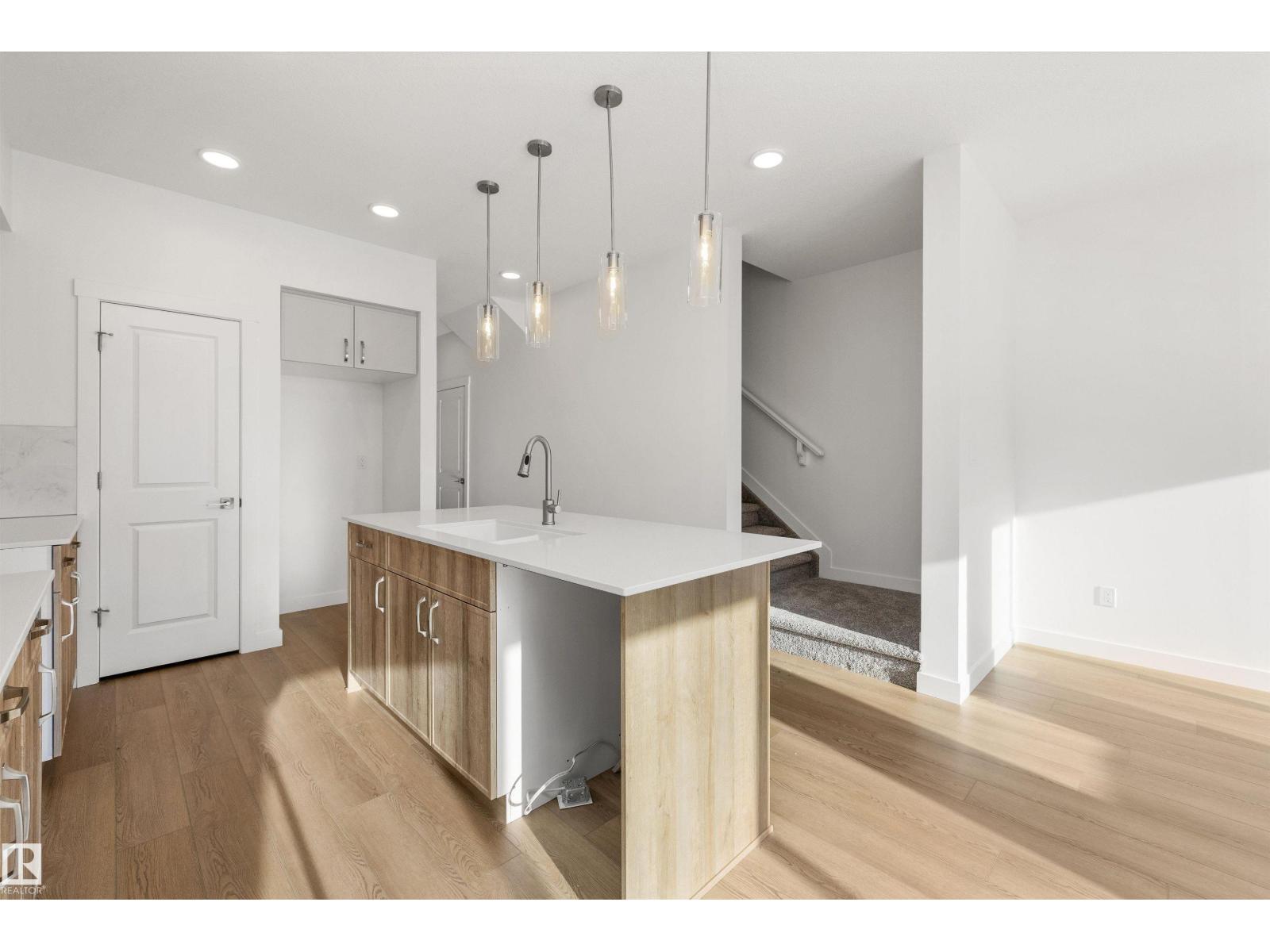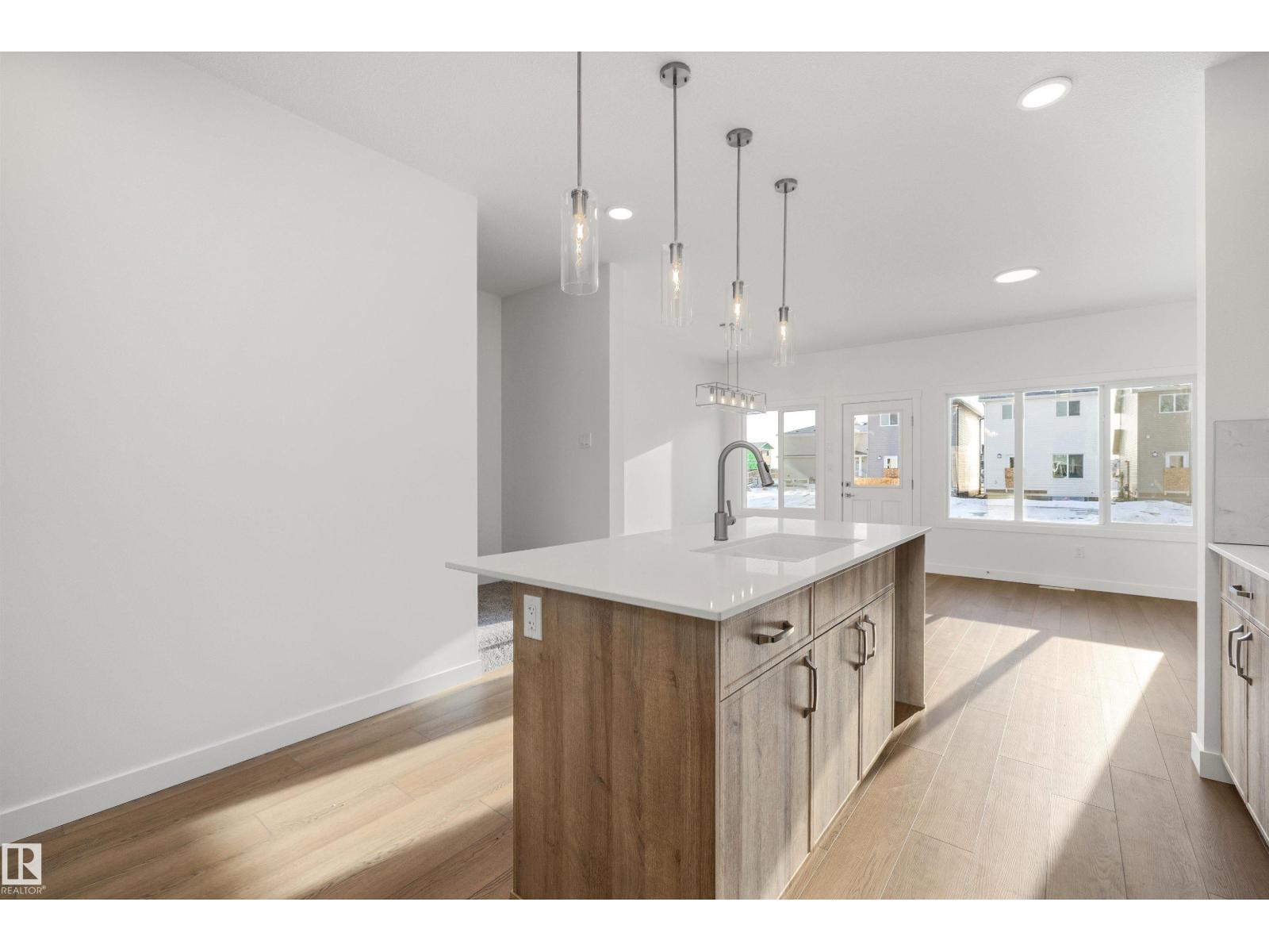 Built by Sterling Homes, this beautifully designed laned home in The Uplands at Riverview offers warm, modern living in one of West Edmonton’s fastest-growing communities. Triple-pane windows and 9’ ceilings flood the main floor with natural light, creating a bright, welcoming feel. The kitchen shines with quartz countertops, a spacious island, upgraded cabinetry, full-height tile backsplash, and a corner pantry, all overlooking the open living and dining areas. A central garden door leads to the backyard for easy indoor-outdoor flow. A main-floor bedroom and full bath add flexible space for guests, work, or hobbies. Upstairs, enjoy a cozy bonus room and a relaxing primary suite with walk-in closet and private ensuite. Two additional bedrooms, a full bath, and convenient upper-floor laundry complete the level. With a side entrance, luxury vinyl plank flooring, and basement rough-ins for future development, this home is designed for comfort and growth. (id:63190)