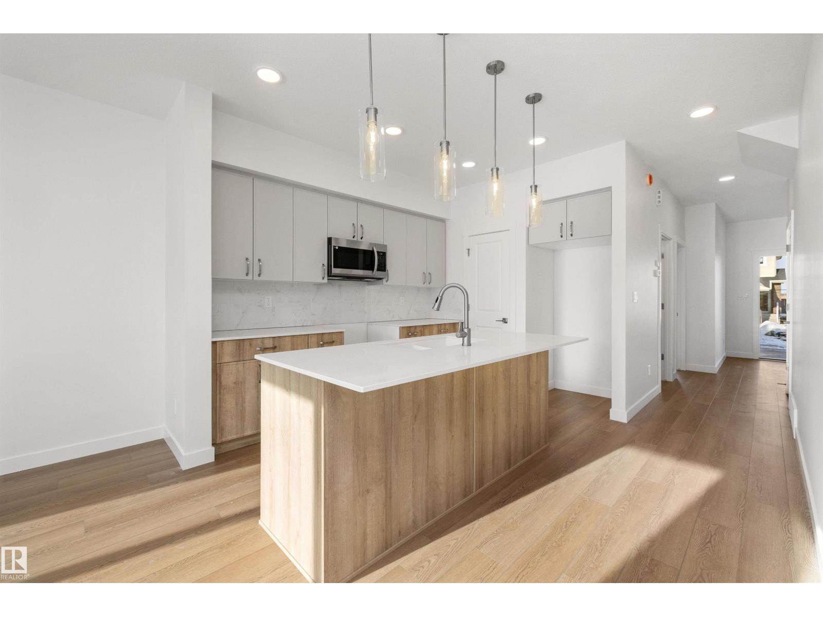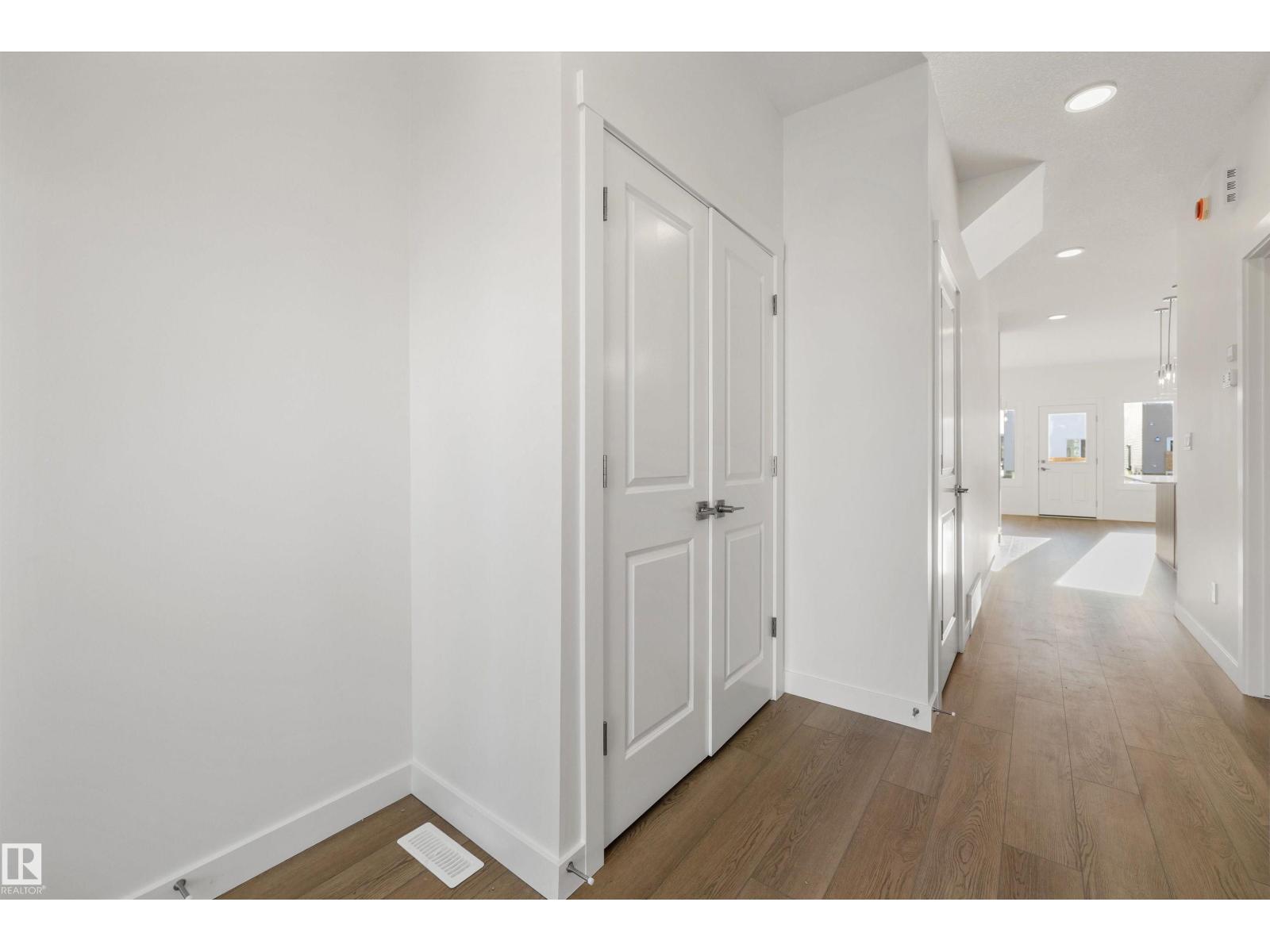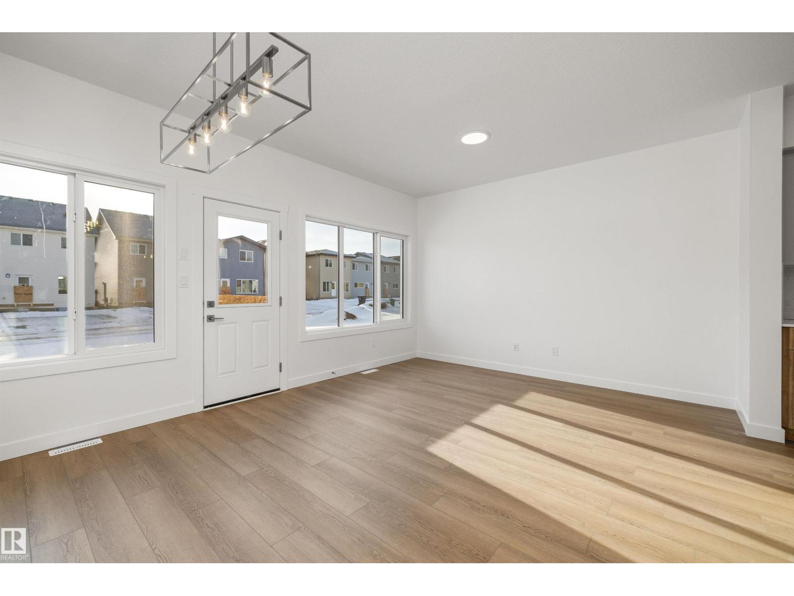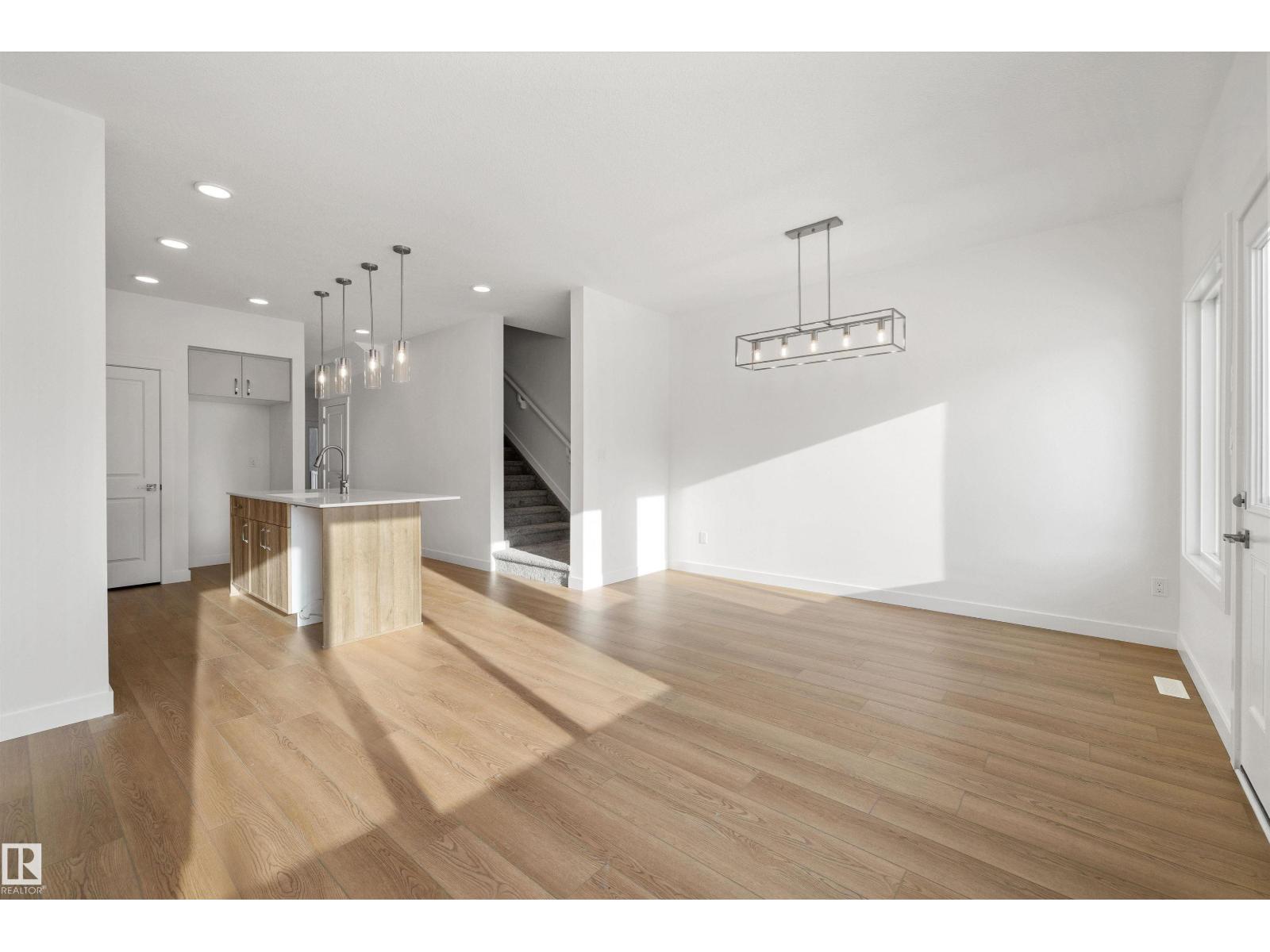 Built by Sterling Homes, this beautifully designed laned home in The Uplands at Riverview offers warm, modern living in one of West Edmonton’s fastest-growing communities. Triple-pane windows and 9’ ceilings flood the main floor with natural light, creating a bright, welcoming feel. The kitchen shines with quartz countertops, a spacious island, upgraded cabinetry, full-height tile backsplash, and a corner pantry, all overlooking the open living and dining areas. A central garden door leads to the backyard for easy indoor-outdoor flow. A main-floor bedroom and full bath add flexible space for guests, work, or hobbies. Upstairs, enjoy a cozy bonus room and a relaxing primary suite with walk-in closet and private ensuite. Two additional bedrooms, a full bath, and convenient upper-floor laundry complete the level. With a side entrance, luxury vinyl plank flooring, and basement rough-ins for future development, this home is designed for comfort and growth. (id:63190)