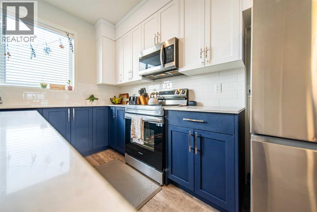 Newer two-storey home featuring a fully self-contained, legal 1-bedroom basement suite & Central Air conditioner—ideal for reliable rental income or multi-generational living. The main residence offers 9’ ceilings, durable vinyl flooring throughout, and an upgraded kitchen with ceiling-height cabinetry and stainless-steel appliances. The upper level includes 3 bedrooms, 2 full bathrooms, a spacious primary suite with walk-in closet and 3-piece ensuite, plus the convenience of upstairs laundry. A 2-piece powder room is located on the main floor. The legal basement suite is thoughtfully designed with a full kitchen, stainless steel appliances, stacked washer and dryer, full bathroom, and additional storage, providing excellent tenant appeal and functionality. Located on a corner lot with abundant parking, this property also features a fully fenced, south-facing backyard with deck and central air conditioning. A low-maintenance, income-producing property in a growing community—perfect for investors or owner-occupants looking to offset mortgage costs. (id:63190)