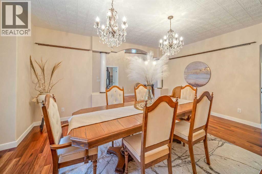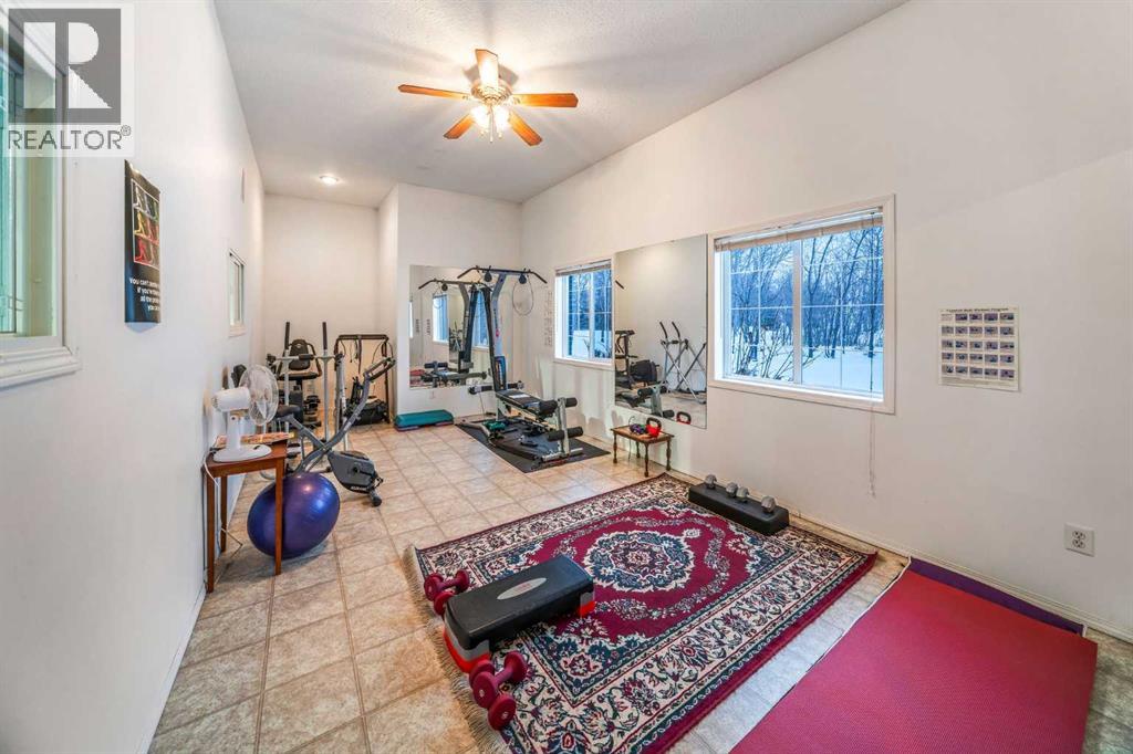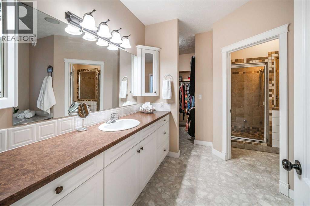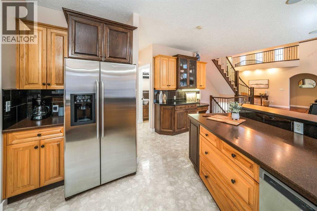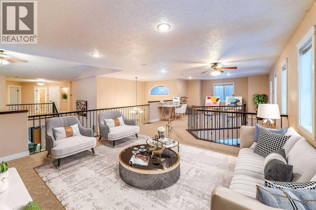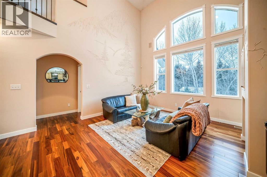 Perched high above the Red Deer River in the prestigious enclave of Olinda Meadows, this remarkable estate acreage offers a lifestyle rooted in space, privacy, and everyday ease - just ten minutes from Red Deer shopping, dining, and services, Canyon Ski Lodge and Parkland Nurseries only moments away. Set on 3.01 beautifully treed acres, the property is introduced by a gated, meandering driveway that winds through mature trees and opens to a home that feels both commanding and welcoming. Elevated topography delivers sweeping views, dramatic skies and constant connection to nature, with birdlife and wildlife as part of the daily rhythm. With over 10,000 square feet of developed living space, this residence was purpose built for families who value room to gather, entertain and grow. Soaring ceilings, beautiful hardwood flooring and expansive windows create an open and airy feel throughout. A formal dining room sets the stage for special occasions, while the bright dining nook offers a relaxed space for everyday meals and opens directly onto a sprawling deck that spans the width of the home, perfect for summer gatherings, dining al fresco or enjoying a quiet morning coffee surrounded by treetops. The kitchen is designed for function and flow with a walk in corner pantry, generous cabinetry and seamless connection to the main living areas. A main floor home office, dedicated laundry and sewing room, and thoughtfully designed storage including multiple storage rooms add to the home’s exceptional livability. The flex loft overlooking the main level provides additional space for work, play or retreat. Two wood burning stoves anchor the home with warmth and comfort, creating cozy gathering spaces year round. The walkout lower level mirrors the lifestyle above with expansive recreation areas, custom bar and theatre room, while offering shaded outdoor enjoyment on warm days, allowing you to choose how and where you take in the surrounding beauty. A gym area in the mezzanine o f the impressive shop adds yet another layer of versatility. A true standout, the massive attached shop with soaring ceilings accommodates a motorhome, multiple vehicles, workshops, storage and hobbies with ease, ideal for enthusiasts and business owners alike. RV parking and services further enhance the lifestyle. Built with pride and exceptional care, upgrades include newer exterior siding, shingles, 2x8 wall construction with staggered studs, forced air and hot water heating with dual boilers and fan coils, two air conditioning units, paved circular drive, security gate and camera system. Unique artistic wall engravings reflect the craftsmanship and character found throughout, reinforcing that this is a home meant to be experienced in person. Lovingly maintained by the original owners who built it from the ground up, this is a rare opportunity to secure a legacy acreage and forever home. (id:63190)
