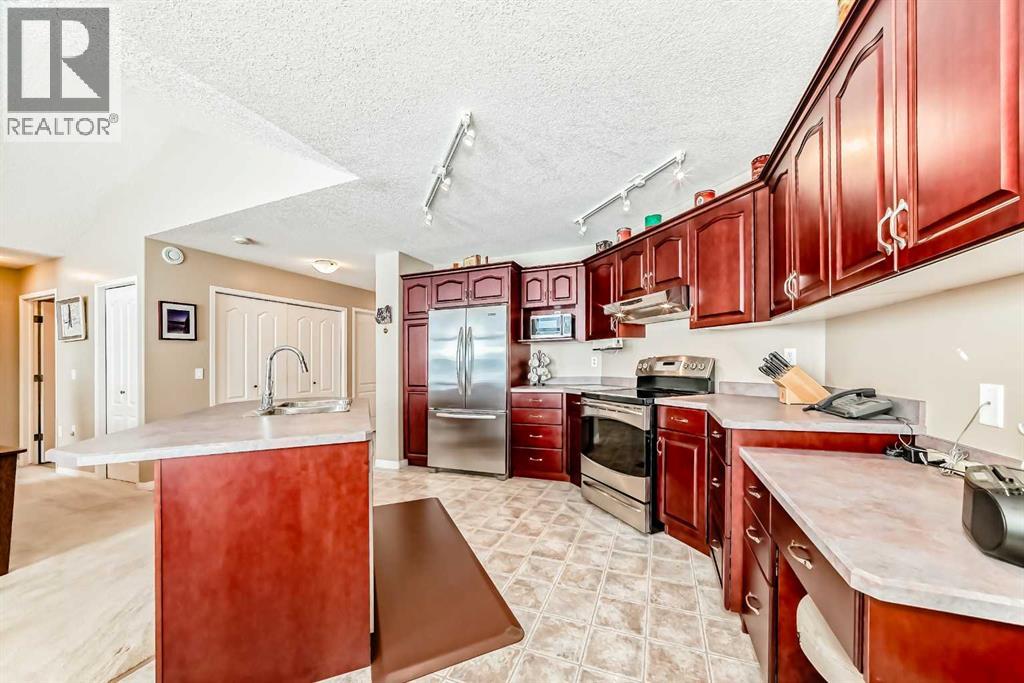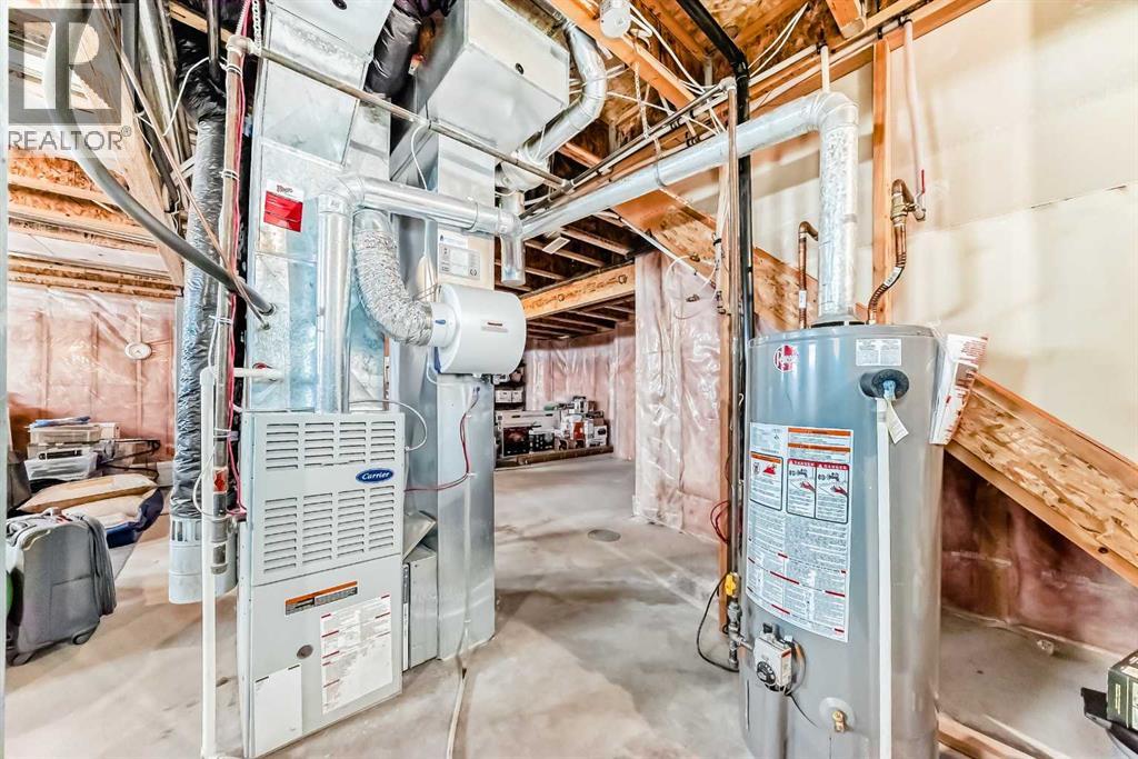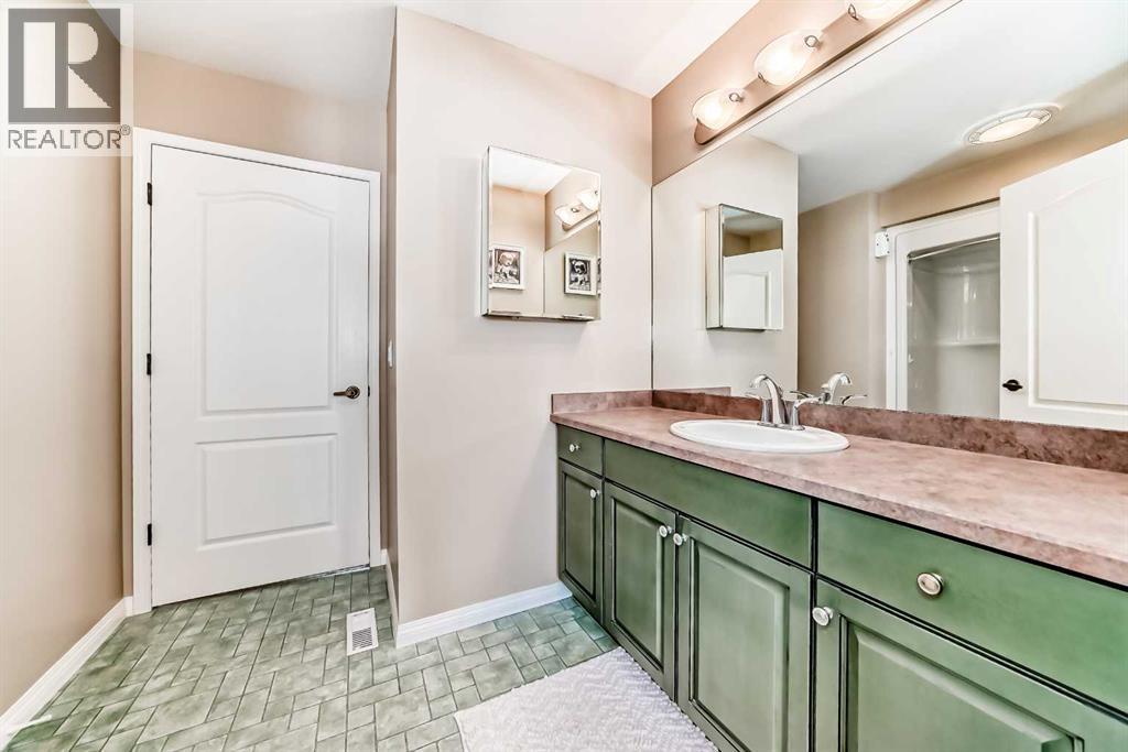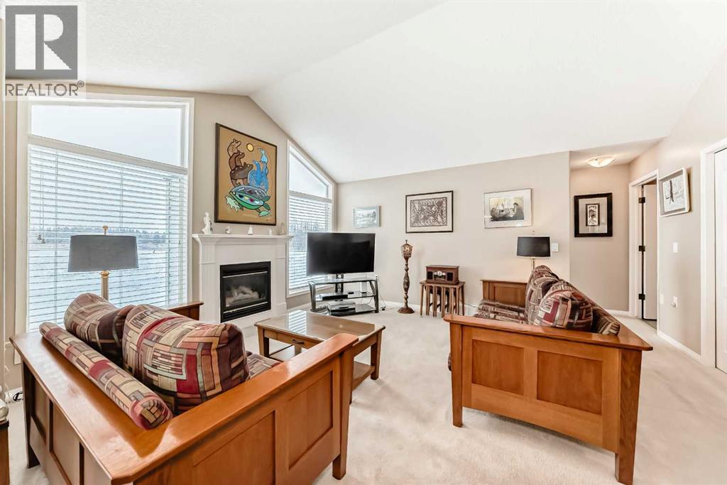OPEN HOUSE April 6th 2-4pm ~Welcome to Prince of Peace Village an Adult 55+ community on the edge of the City of Calgary. Easy access to the #1 highway and close to Calgary heading west or Chestermere heading east. Prince of Peace Village is a vibrant community with walking paths, Community Gatherings at the Centre and a natural setting. This villa comes with 2 bedrooms up, a 4 piece bathroom with dual access either from the Primary Bedroom or hall way. The Vaulted ceilings make the living room feel very spacious and open. A fireplace adds too the warmth of the area and the windows framing the fireplace bring in so much natural light. In the summer turn on the central air for comfort. throughout the home. The Kitchen is bright with a central island, and lots of counter & cupboard space. There is even a built in desk area. Dining Room is large enough for seating for 6. Sliding patio doors take you to a lovely patio with nature right at your door! The 2nd bedroom of this home is used as an office and could easily be the guest room or t.v. area. Laundry is also conveniently located on the main floor. This home is at the end of the cul de sac and there are no immediate neighbours to the west and is almost surrounded by greenspace. The condo fee includes snow removal, in winter and lawn care in the summer. Prince of Peace Village, a Beautiful place to call Home! (id:63190)