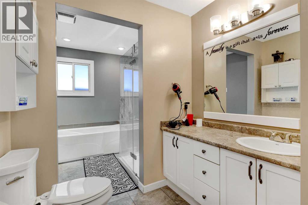 Experience this well-maintained 4-bedroom, 2-bathroom home situated on a spacious double lot in a desirable location close to schools and shopping, and just 3½ blocks from the Regional Multi-Plex. This property features an impressive 32' x 26' finished and heated attached garage perfect for vehicles, storage, or a workshop. Inside, you'll find a large kitchen and dining area with a newly refinished gyproc ceiling and modern pot lighting. Enjoy a cozy living room with an air-tight wood-burning fireplace and an open office nook. The main bathroom offers a relaxing soaker tub and a glass walk-in shower. Three bedrooms are conveniently located on the main floor.The fully developed basement includes ample storage, a laundry room, a family room, and a fourth bedroom. Recent upgrades include a new furnace and hot water heater. Outside, you’ll find deck and patio areas, a firepit, and a gated back corner providing easy access for an RV or recreational toys. A fantastic property with a very functional layout! (id:63190)