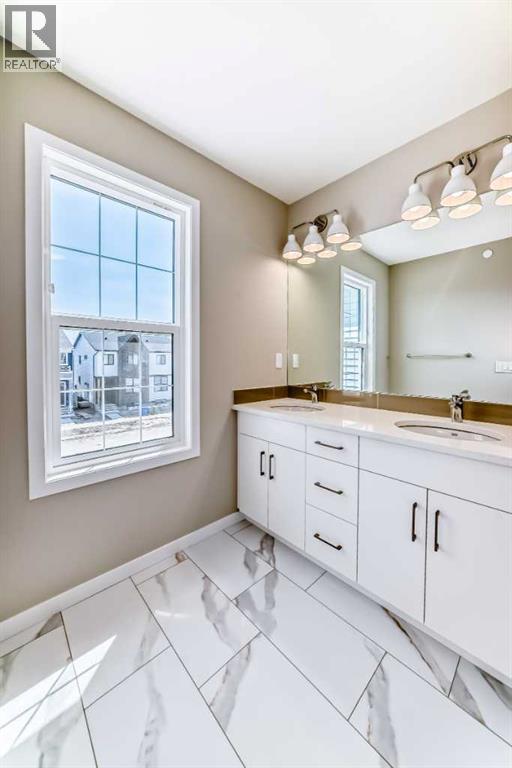Step inside and feel right at home in the Barwell—a thoughtfully designed laned home that strikes the perfect balance between style, function, and comfort. With 1,515 sq ft of well-planned living space, this brand-new residence in the vibrant community of Hotchkiss checks all the boxes for modern family living. The main floor welcomes you with 9’ ceilings and durable luxury vinyl plank flooring throughout. A spacious front living room flows effortlessly into the heart of the home—an L-shaped kitchen featuring sleek quartz countertops, contemporary cabinetry, and a large dining area that’s perfect for gatherings. Tucked just off the kitchen is a convenient pocket office, ideal for remote work or managing your day-to-day. Upstairs, you’ll find a functional layout with three well-sized bedrooms, including a spacious primary retreat complete with a tile-to-ceiling ensuite shower that adds a touch of luxury to your daily routine. Additional features include painted spindle railings on the main level, knockdown ceiling texture, and a side entrance provides options in the future for a basement suite (A secondary suite would be subject to approval and permitting by the city/municipality) providing the perfect spot for extended family or rental income. Additionally the basement features a wet bar rough-in already in place, making it easy to plan out your dream basement. **This home also comes complete with full front and backyard landscaping, including sod, mulch on the side yards, and trees/shrubs in the front as per community guidelines. Enjoy warm summer evenings in the west-facing backyard, or take advantage of the exterior gas line for future BBQs. Whether you're a growing family or a savvy investor, this home offers long-term value in one of Calgary's up-and-coming communities. Hotchkiss is a new southeast Calgary community designed for those who crave space, connection, and outdoor living. With easy access to major roadways, future planned amenities, and nearby parks and pathways, it’s a neighbourhood that blends natural beauty with city convenience. Whether you're headed to work or the mountains, Hotchkiss puts you in a prime location to live your best Calgary lifestyle. (id:63190)