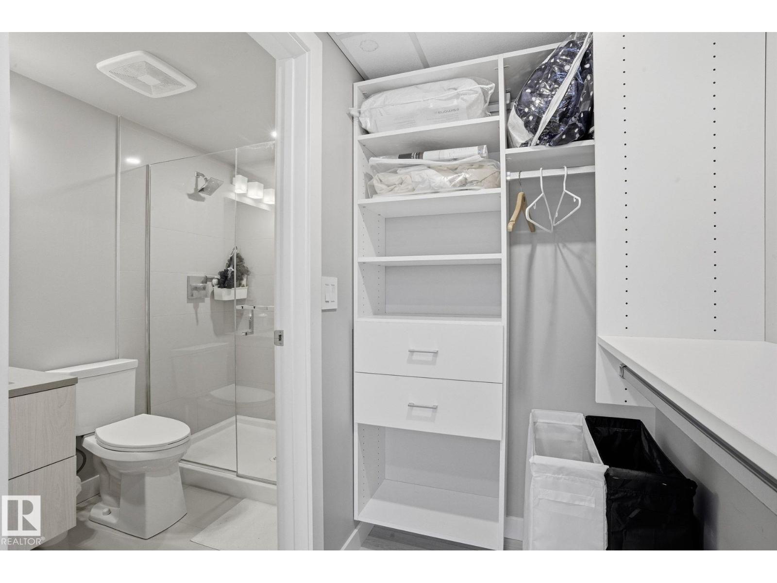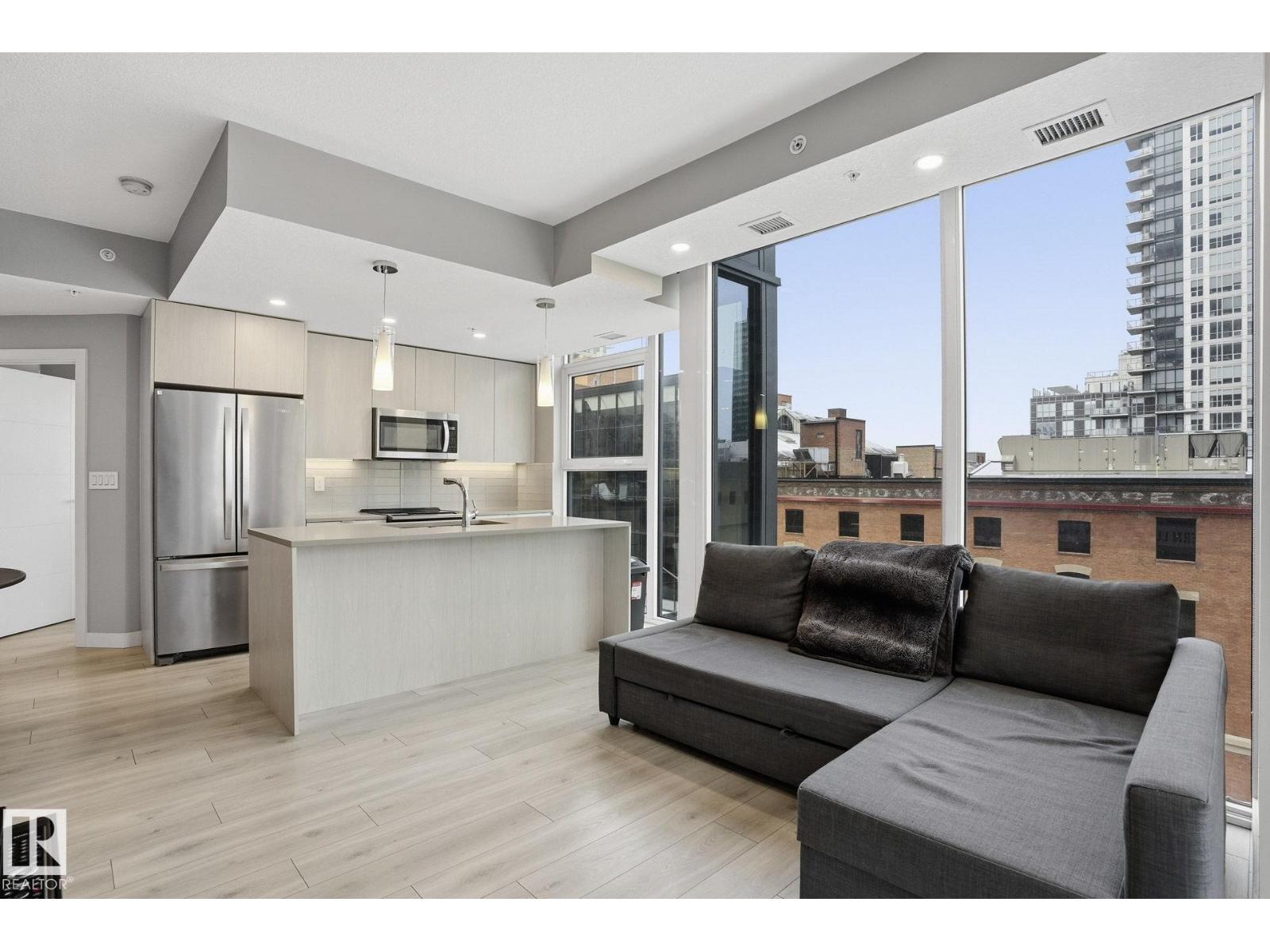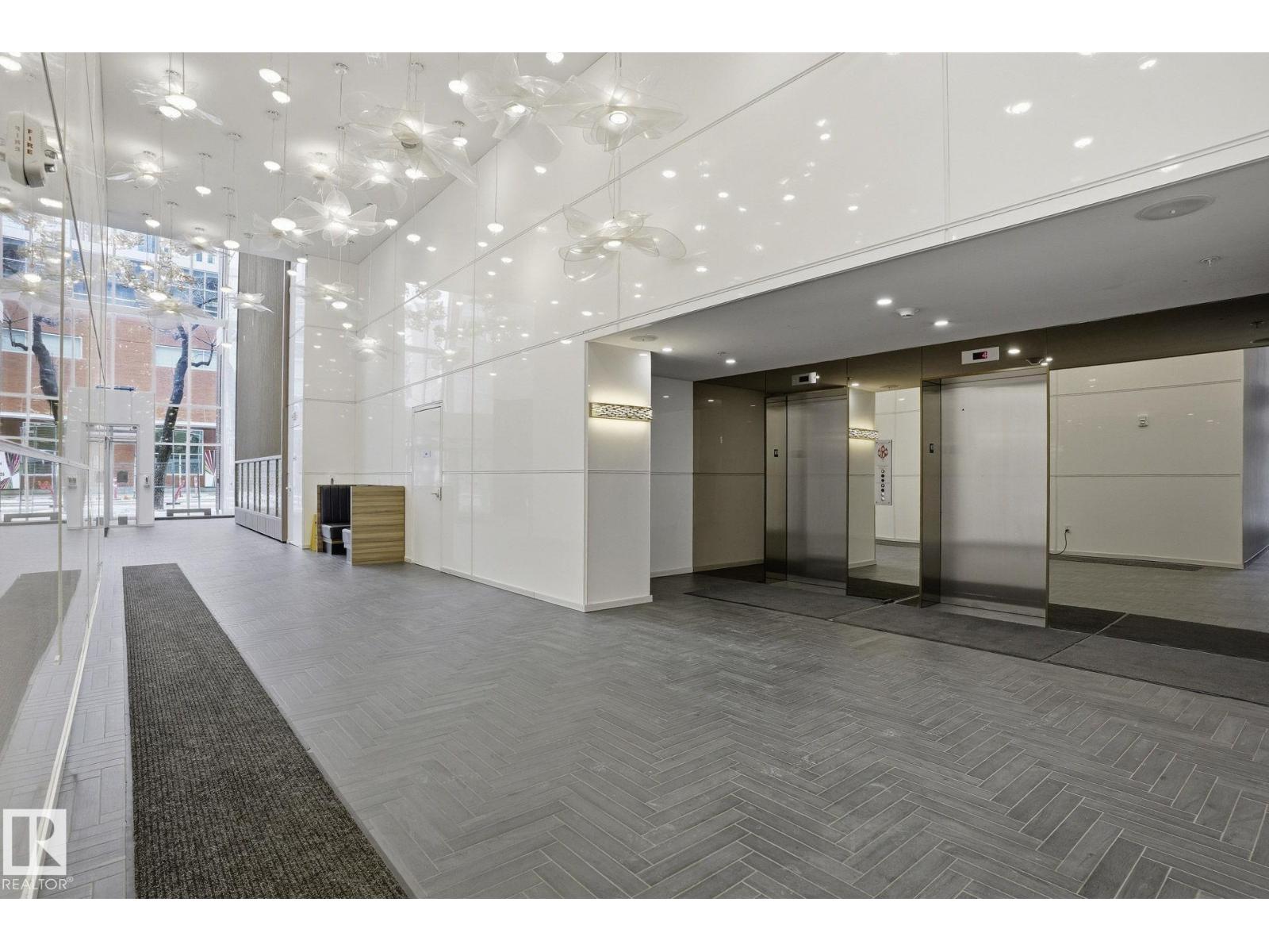 Introducing a new level of luxury. You will find modern elements in every corner of this functional living space. Encore Tower is a sleek and modern designed building located just steps from the ICE District, Rogers Arena, and 104 Street amenities. This incredible 2 bedroom, 2 bathroom unit offers one of a kind downtown living. Featuring luxury Vinyl Plank flooring, a modern kitchen design with stainless steel appliances, quartz counters and eat-in bar, spacious living area with 9'ceilings, and floor to ceiling windows. The primary bedroom offers its own private 3pce ensuite and walk-in closet. In-suite laundry and convenient garbage chute on every floor. Unit includes a titled heated underground parking stall. Living in this spectacular tower comes with concierge service, 24hr security, access to the 4th floor rooftop hot tub, outdoor sun lounge, exclusive fitness center, and social room. (id:63190)
