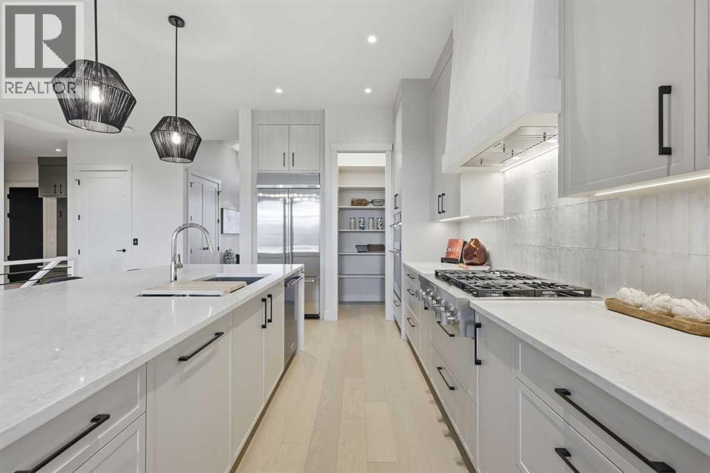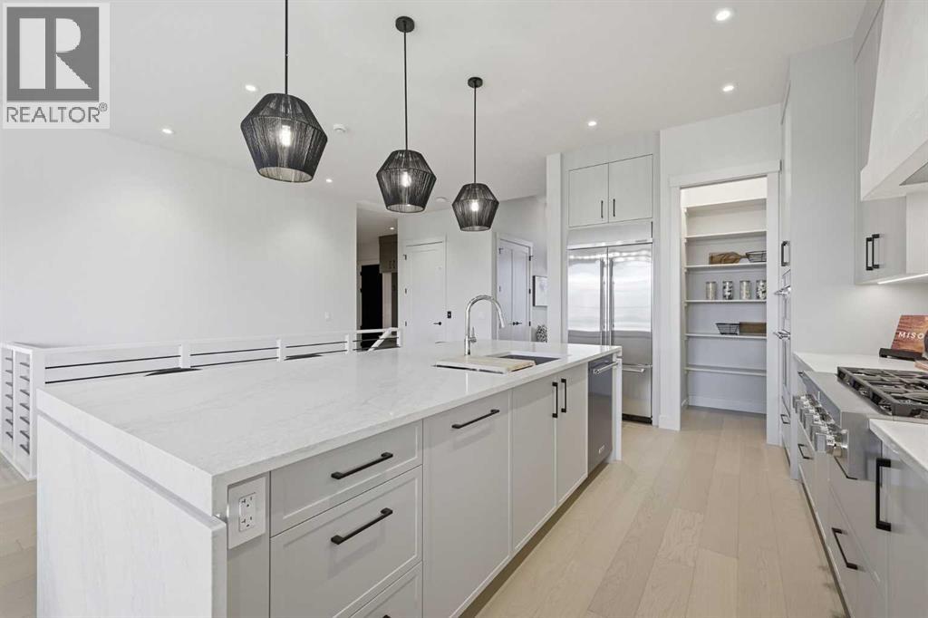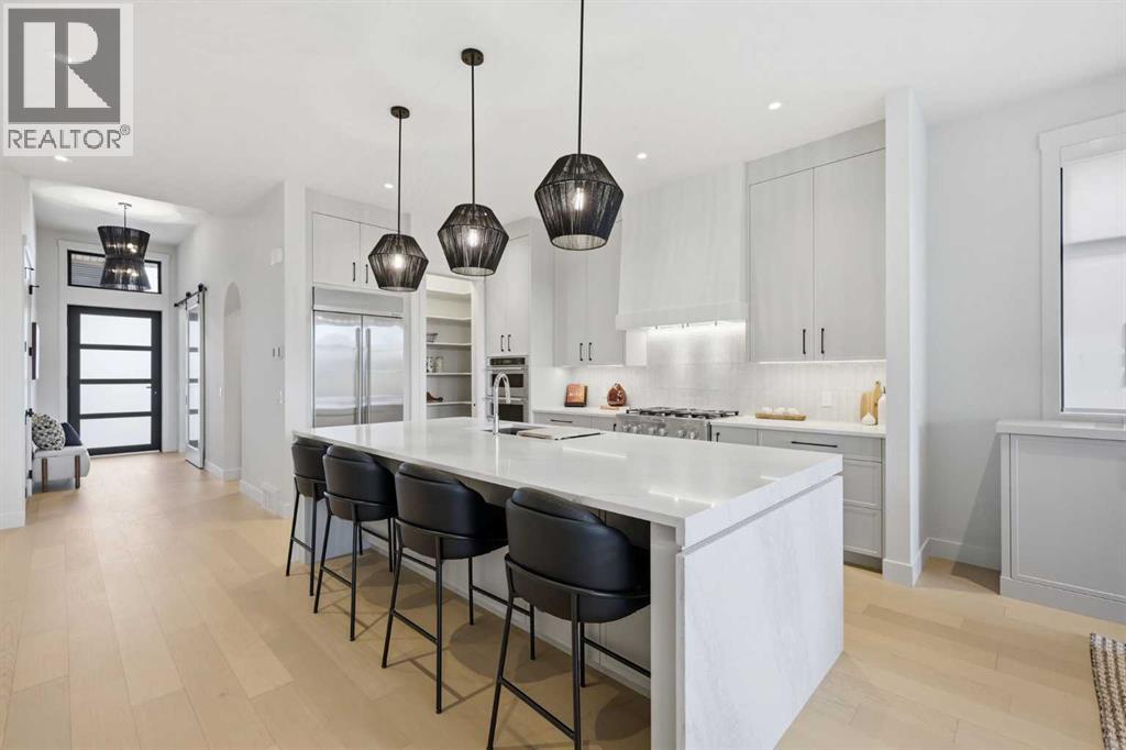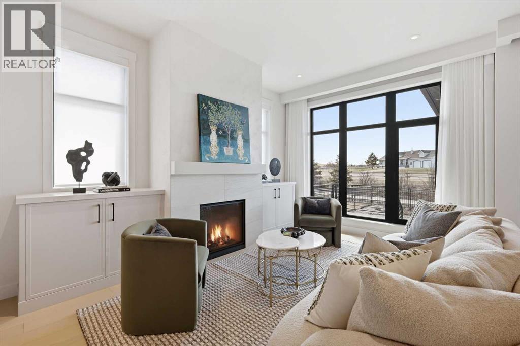 OPEN HOUSE SATURDAY, APRIL 25TH & SUNDAY, APRIL 26TH FROM NOON - 5 PM BOTH DAYS. Nestled in the heart of Serenity at Heritage Pointe and backing onto a beautifully landscaped greenspace, this luxurious 3 bedroom, 2.5 bath villa with the Sydney floorplan has been carefully crafted by RareBuilt Homes & offers over 3200 sq ft of exceptional living space. The open concept main floor impresses with engineered wide plank hardwood, custom tile detailing, 10’ ceilings, and a spacious great room with large sliding doors that open to a covered rear deck and private fenced yard. The chef inspired kitchen is equipped with a full KitchenAid appliance package, including a six burner gas cooktop, custom hood fan, refrigerator/freezer, dishwasher, and built in oven with convection microwave. A generous island, ample storage, and thoughtful layout make this kitchen ideal for both everyday living and entertaining. A stylish home office with beam detailing adds both character and functionality. The primary suite provides a serene retreat, complete with a spa inspired 5 piece ensuite featuring heated floors, a freestanding soaker tub, an oversized shower, and a custom walk in closet. The fully finished basement extends the living space with a large recreation room, two additional bedrooms, a full bath, and a roughed-in theatre room that can be modified to wherever your imagination takes you. Additional highlights include a 3 stop elevator, tilt and turn triple glazed windows, 6 standard solar panels, a high efficiency furnace, heat pump, air conditioning, and radiant in floor heating—ensuring year round comfort and energy efficiency. Outside, enjoy a covered composite rear deck with custom aluminum railing plus a fully landscaped & irrigated yard including ornamental fencing and gate in the rear yard providing access to 2 km of local pathways. Parking is effortless with a fully finished and painted oversized double attached garage complete with epoxy flooring, aggregate driveway and EV charger readiness. Enjoy the freedom of full landscape maintenance and snow removal plus close proximity to Heritage Pointe Golf Club, LaunchPad Golf at Heritage Pointe & easy access to Calgary or Okotoks via highway 2 or 2A. (id:63190)