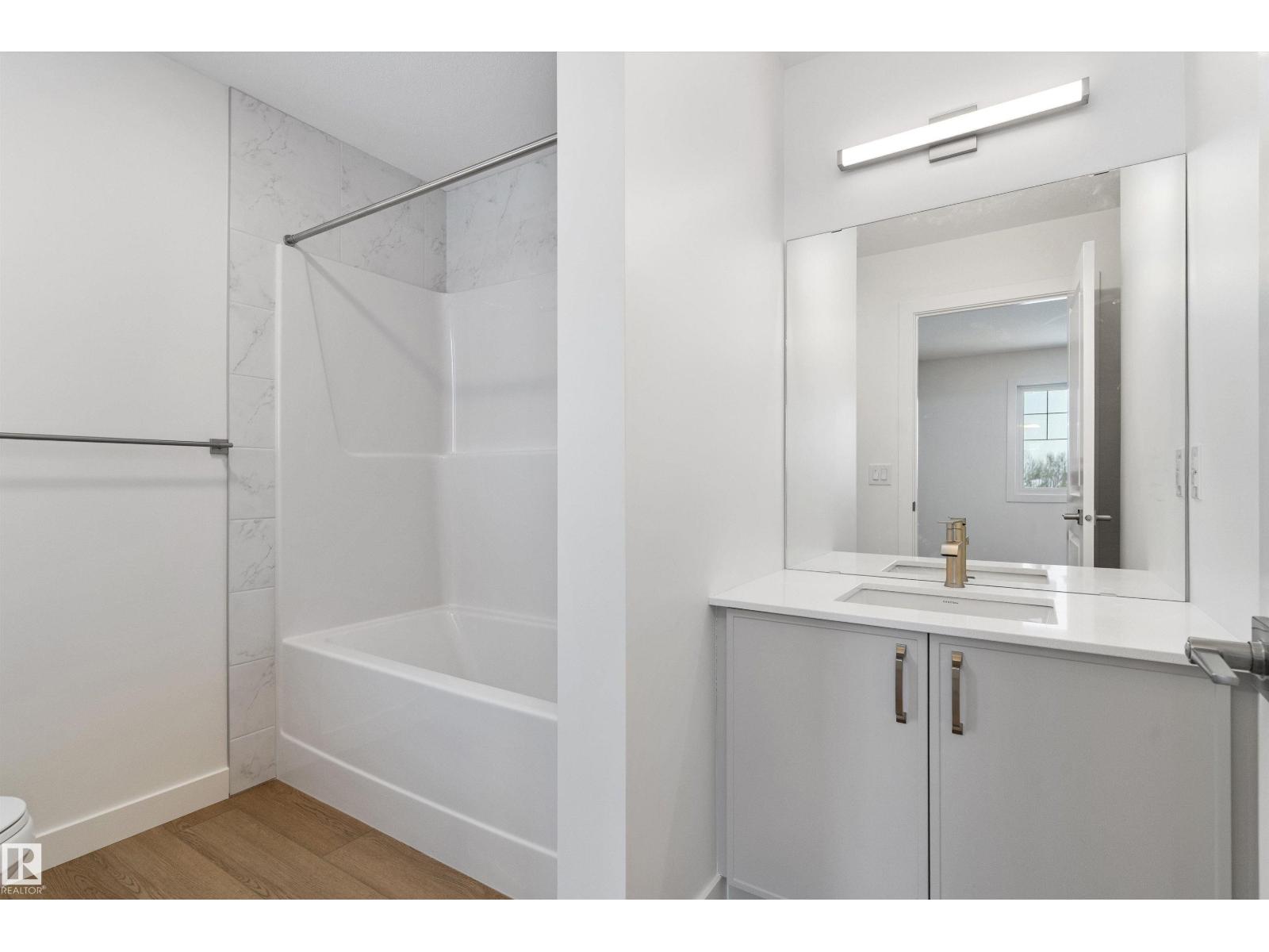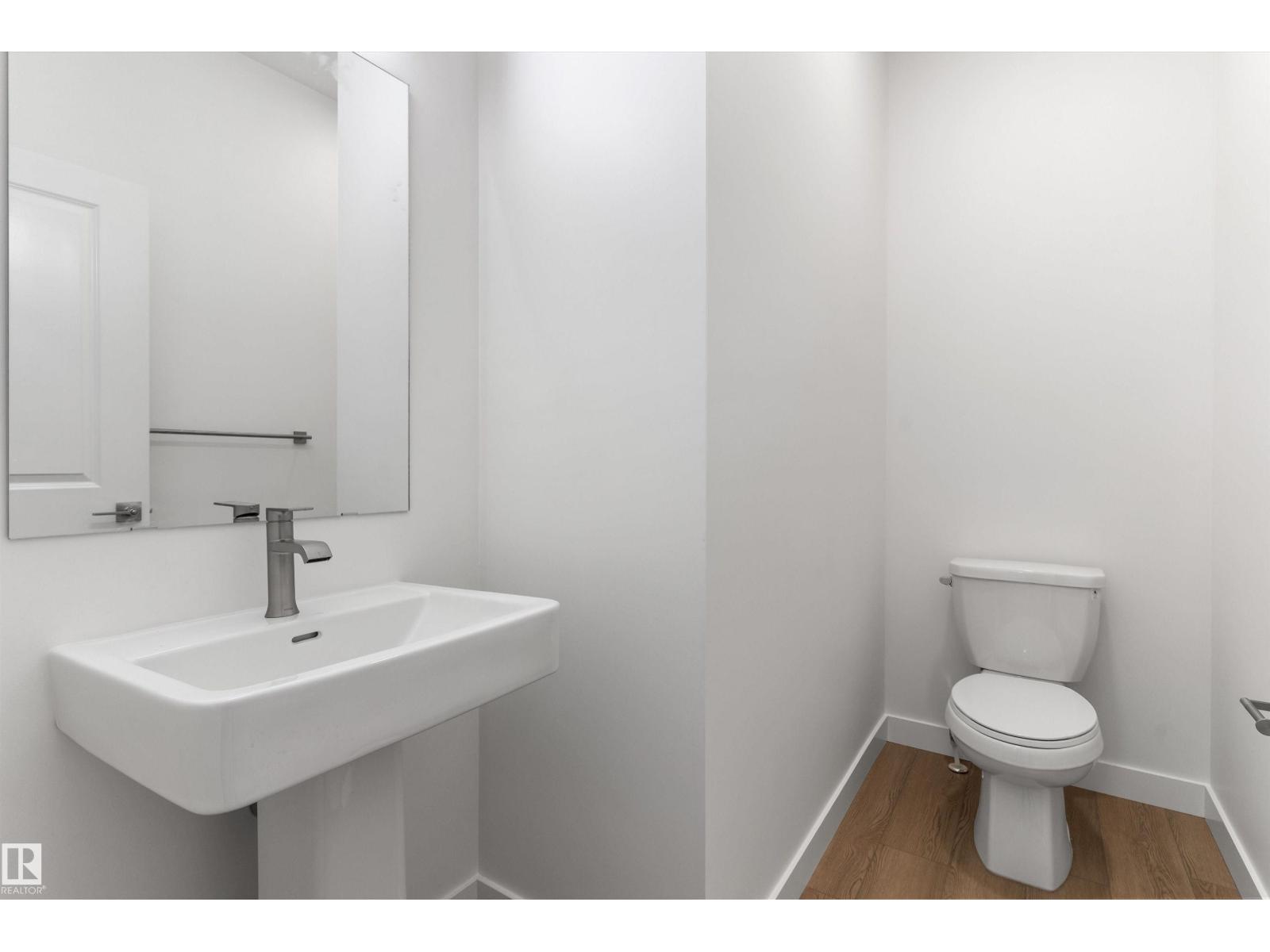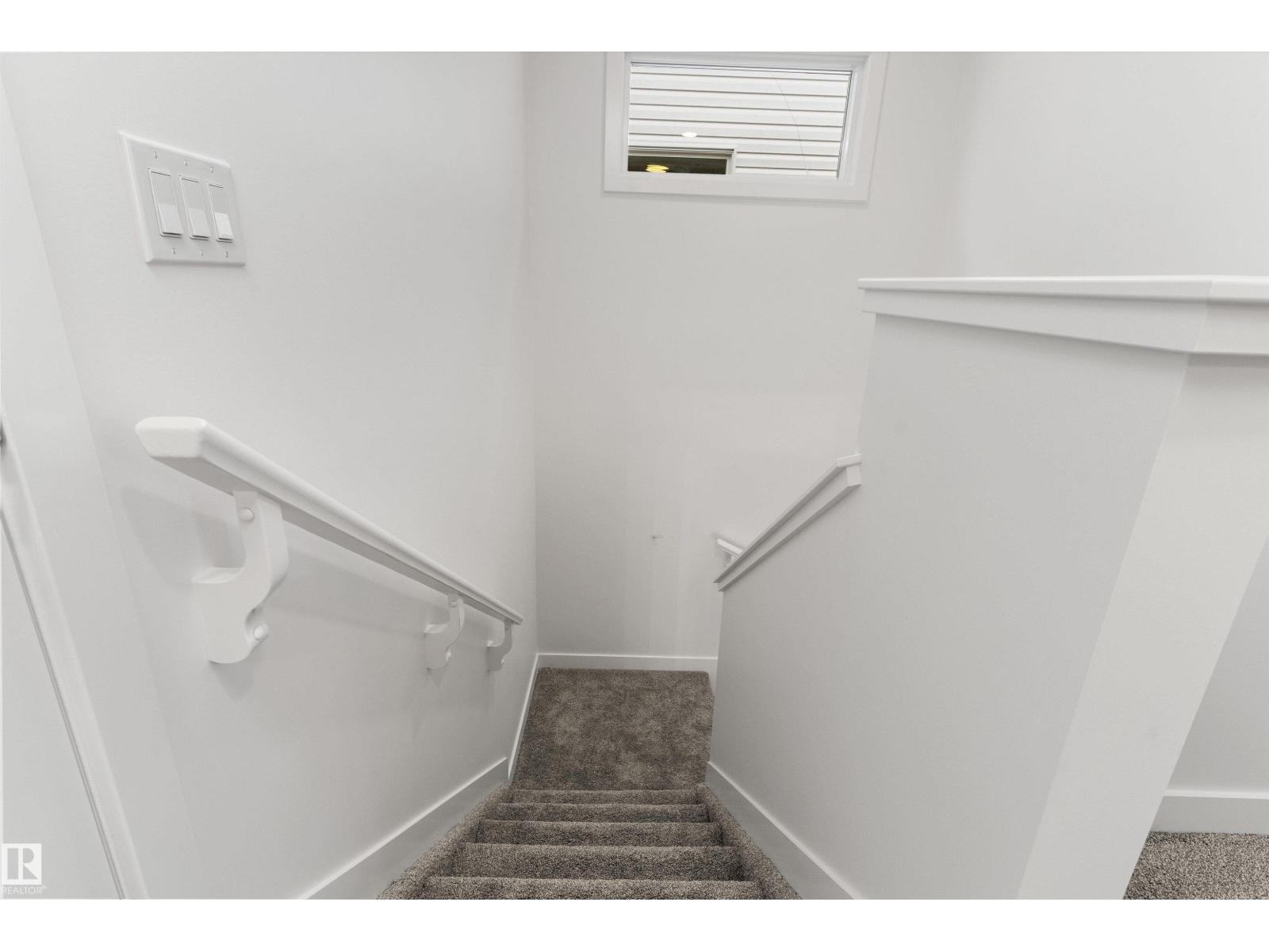 The Renew is a polished half-duplex offering a double attached garage with a floor drain, a separate side entrance, and 9’ ceilings. The open-concept main floor features Luxury Vinyl Plank flooring and a bright foyer leading to a sleek powder room. Designed for functionality, the kitchen boasts Quartz countertops, a flush-ledge island, and premium soft-close cabinetry with a corner pantry and chimney-style hood fan. Natural light fills the great room, which is anchored by a modern electric fireplace and patio doors ready for a future deck. Upstairs, a central bonus room provides a versatile second living area near the dedicated laundry space and two spacious secondary bedrooms. The primary retreat includes a private walk-in closet and a three-piece ensuite. Completed with brushed nickel fixtures and a basement rough-in, this home delivers quality and style in a well-planned layout. (id:63190)