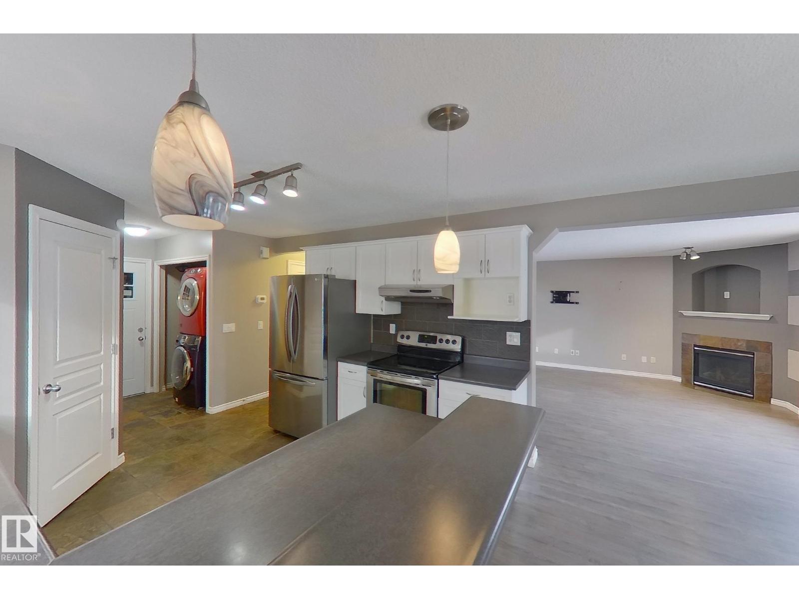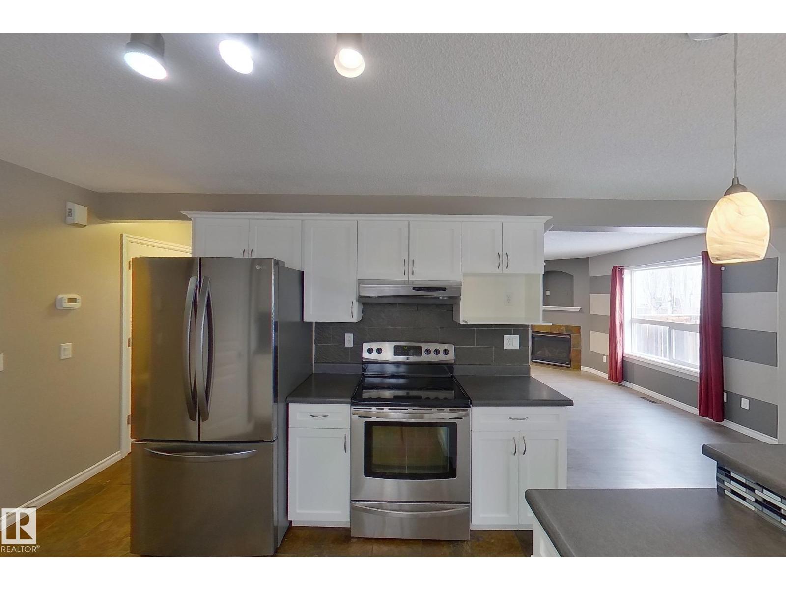 Welcome to 156 Lakewood Drive in Spruce Grove, an incredible opportunity for buyers looking to build equity and add value. This property is priced to reflect needed updates including roof and cosmetics, offering exceptional potential in a desirable, family-friendly neighborhood. The bright layout features a vaulted entryway with large windows and a cozy living room with a gas fireplace. The kitchen provides ample storage and functional space, ready for your personal updates. With 4 bedrooms and 3.5 bathrooms, including a spacious primary suite with walk-in closet and ensuite, there is room for the whole family. The fully developed basement adds a bedroom, full bath, and large family room. Outside, the backyard offers great space for entertaining with a large deck and pergola, plus raised garden beds. With a little care, this outdoor area can truly shine and add value. (id:63190)