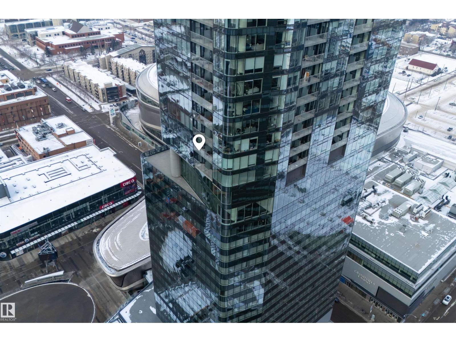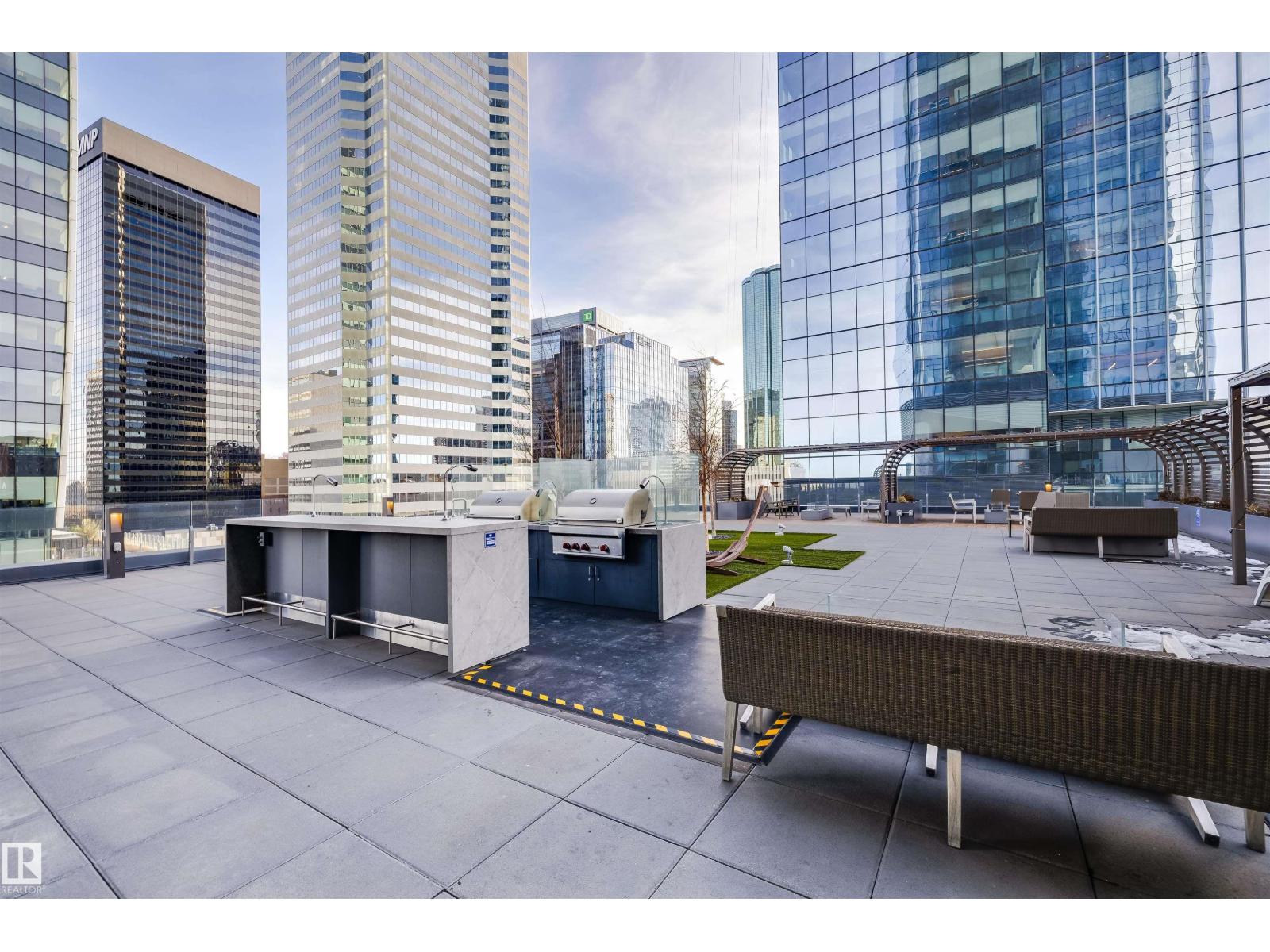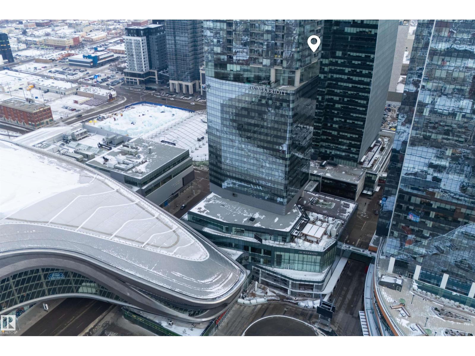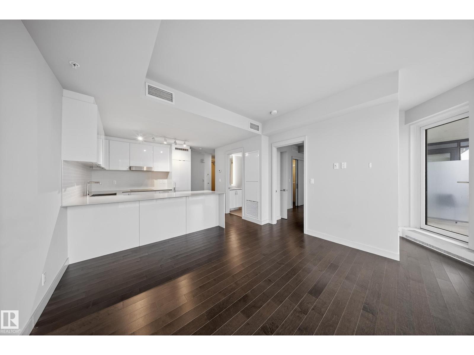 Welcome to The Legends Private Residences, located above the prestigious JW Marriott in the heart of the Ice District. This stylish, move-in-ready, one-bedroom, one-bathroom residence offers in-suite laundry, engineered hardwood flooring, floor-to-ceiling windows, and balcony with beautiful sunset views. The modern kitchen features quartz countertops and high-quality built-in Bosch and Miele appliances, combining sleek design with everyday functionality. The unit includes a titled parking stall, along with access to the JW Marriott’s premium amenities. Enjoy membership to the Archetype Fitness Centre, indoor pool, hot tub, steam room, and spa, plus exclusive use of The Residence Club amenities including a rooftop patio, billiards lounge, conference room, outdoor BBQ patio, dog run, and 24/7 concierge and security. Direct pedway access connects you to Rogers Place, restaurants, grocery, and more. Experience elevated living at The Legends Private Residences. (id:63190)