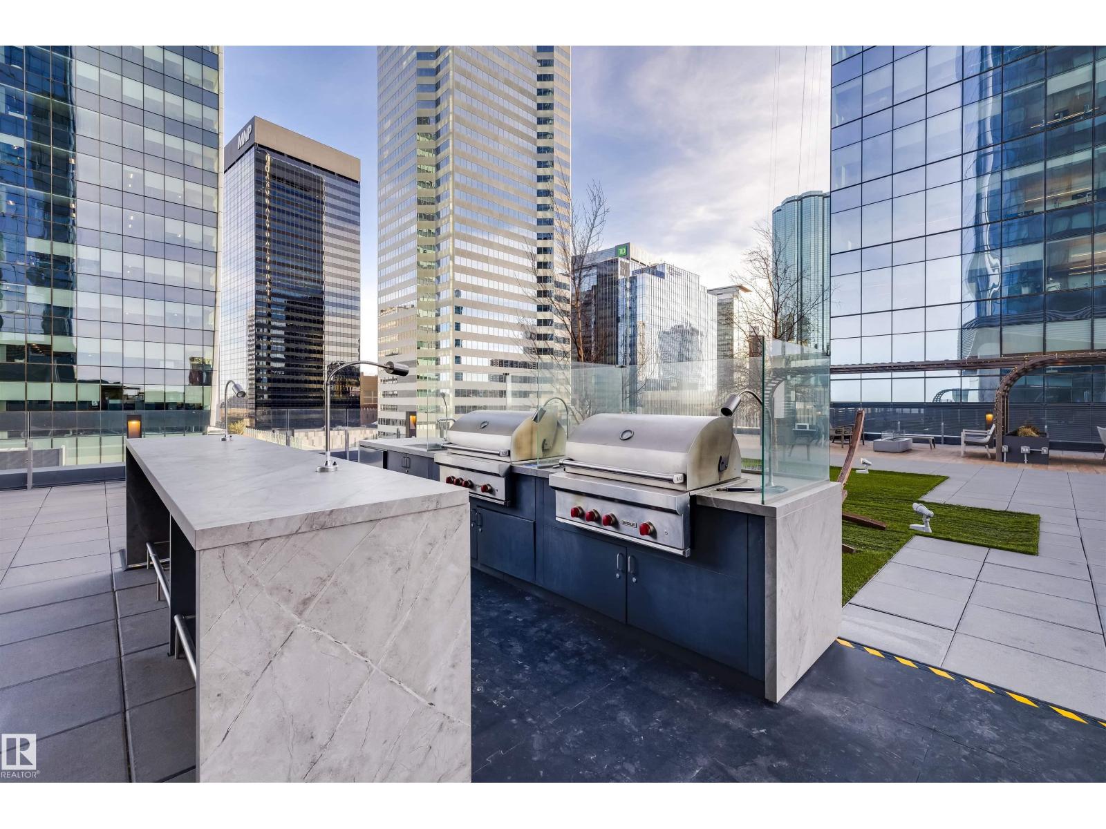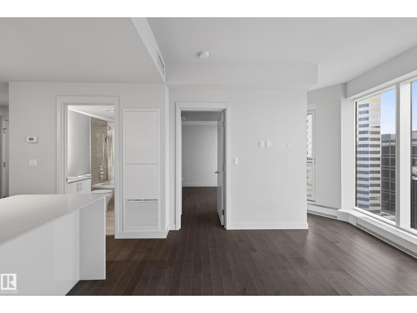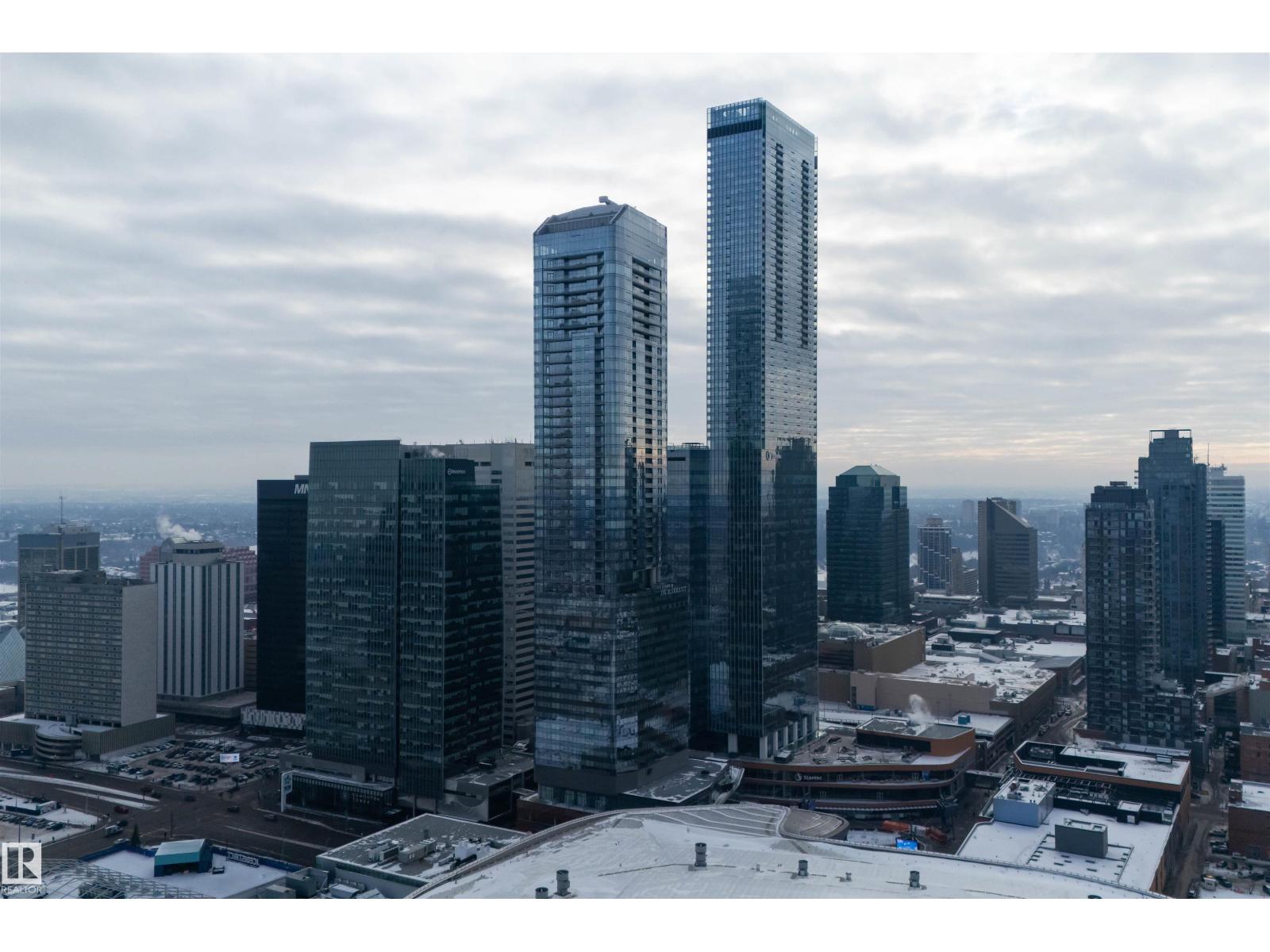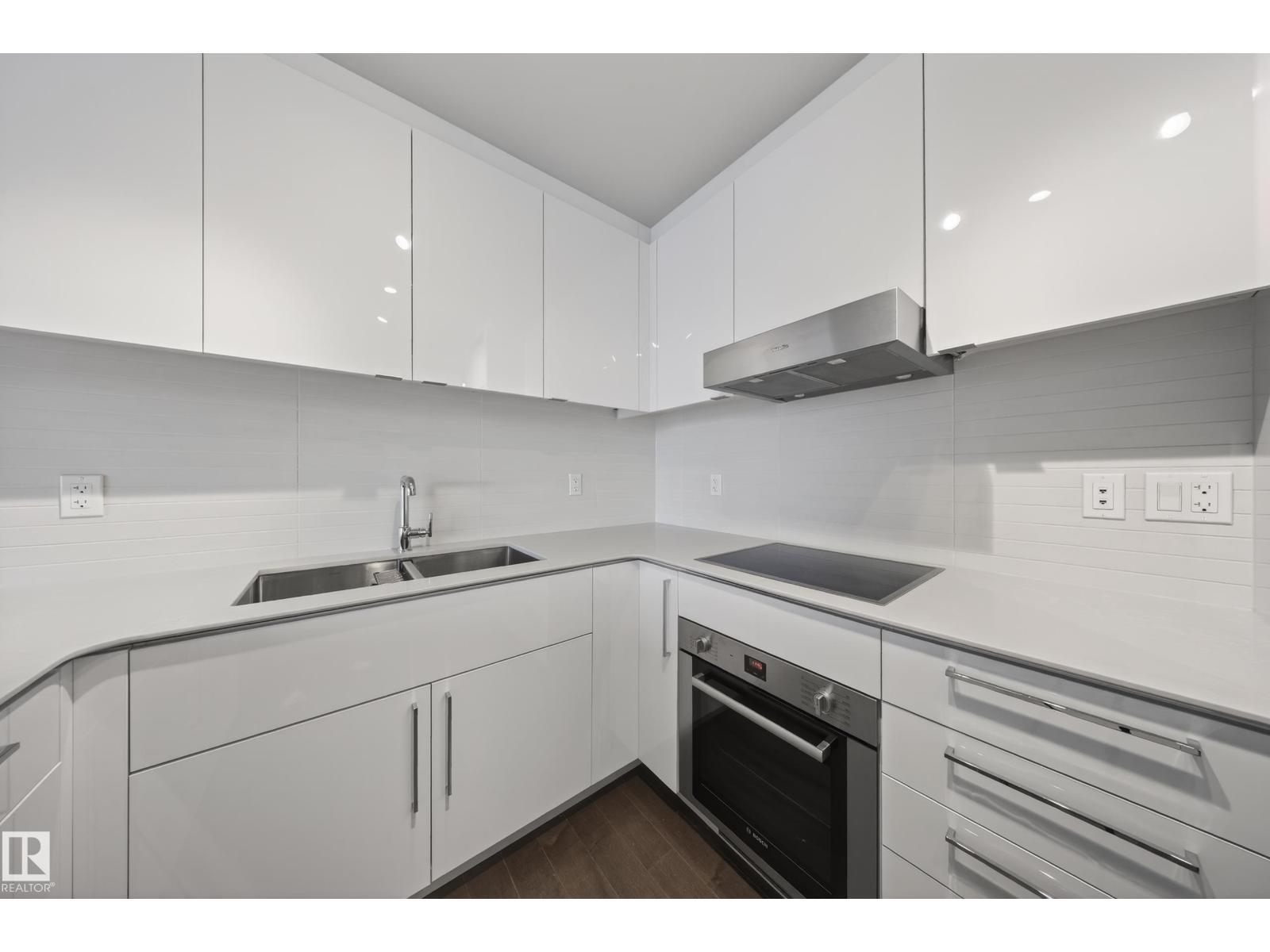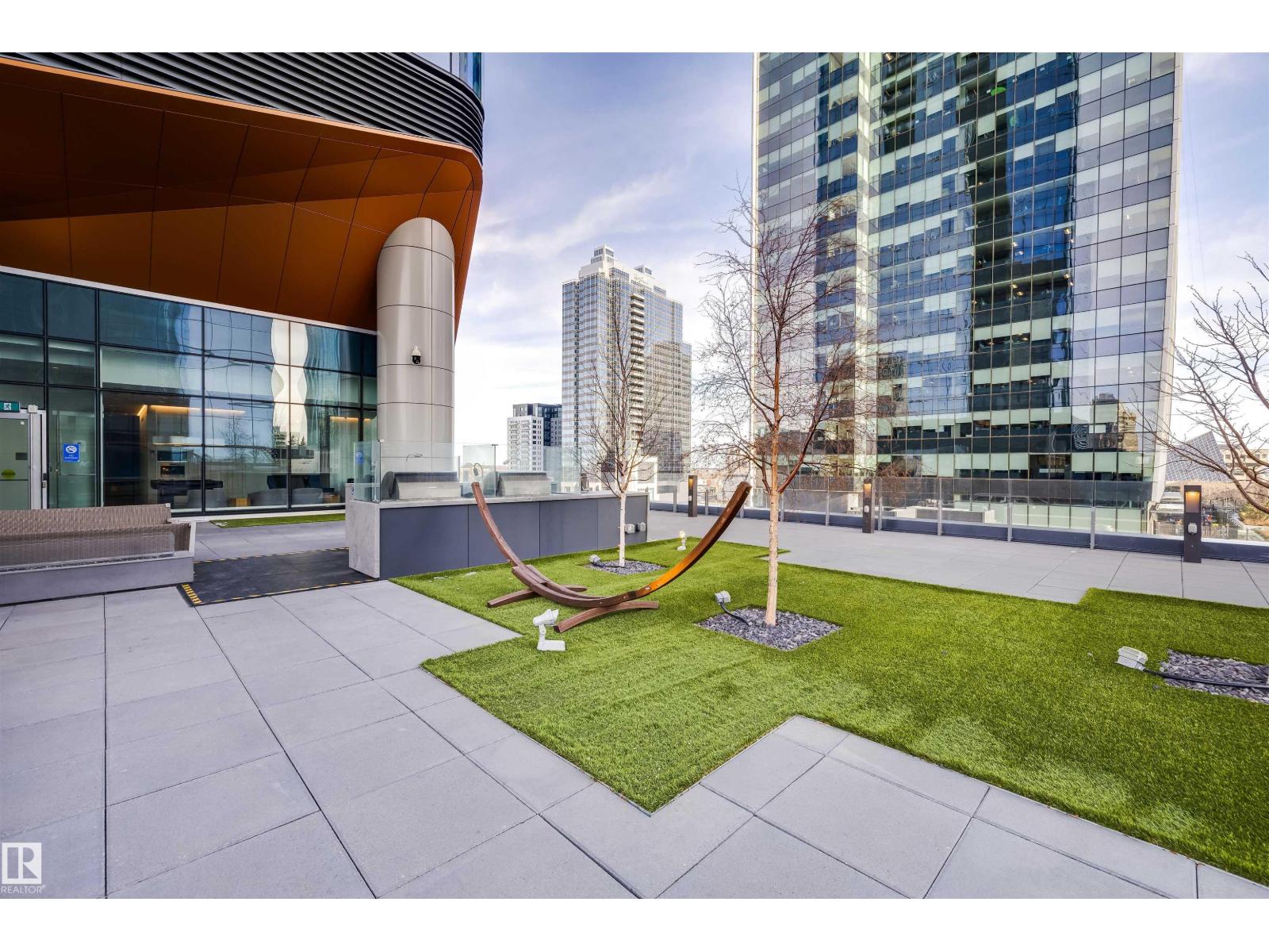 Welcome to The Legends Private Residences, located above the prestigious JW Marriott in the heart of the Ice District. This stylish, move-in-ready, one-bedroom, one-bathroom residence offers in-suite laundry, engineered hardwood flooring, floor-to-ceiling windows, and balcony with beautiful sunset views. The modern kitchen features quartz countertops and high-quality built-in Bosch and Miele appliances, combining sleek design with everyday functionality. The unit includes a titled parking stall, along with access to the JW Marriott’s premium amenities. Enjoy membership to the Archetype Fitness Centre, indoor pool, hot tub, steam room, and spa, plus exclusive use of The Residence Club amenities including a rooftop patio, billiards lounge, conference room, outdoor BBQ patio, dog run, and 24/7 concierge and security. Direct pedway access connects you to Rogers Place, restaurants, grocery, and more. Experience elevated living at The Legends Private Residences. (id:63190)