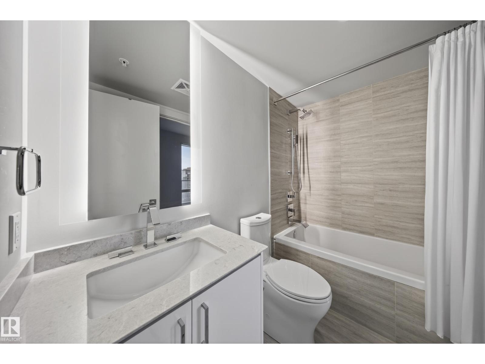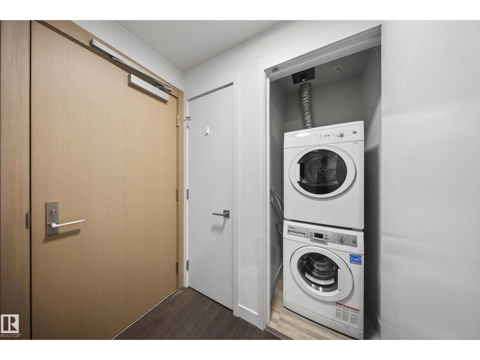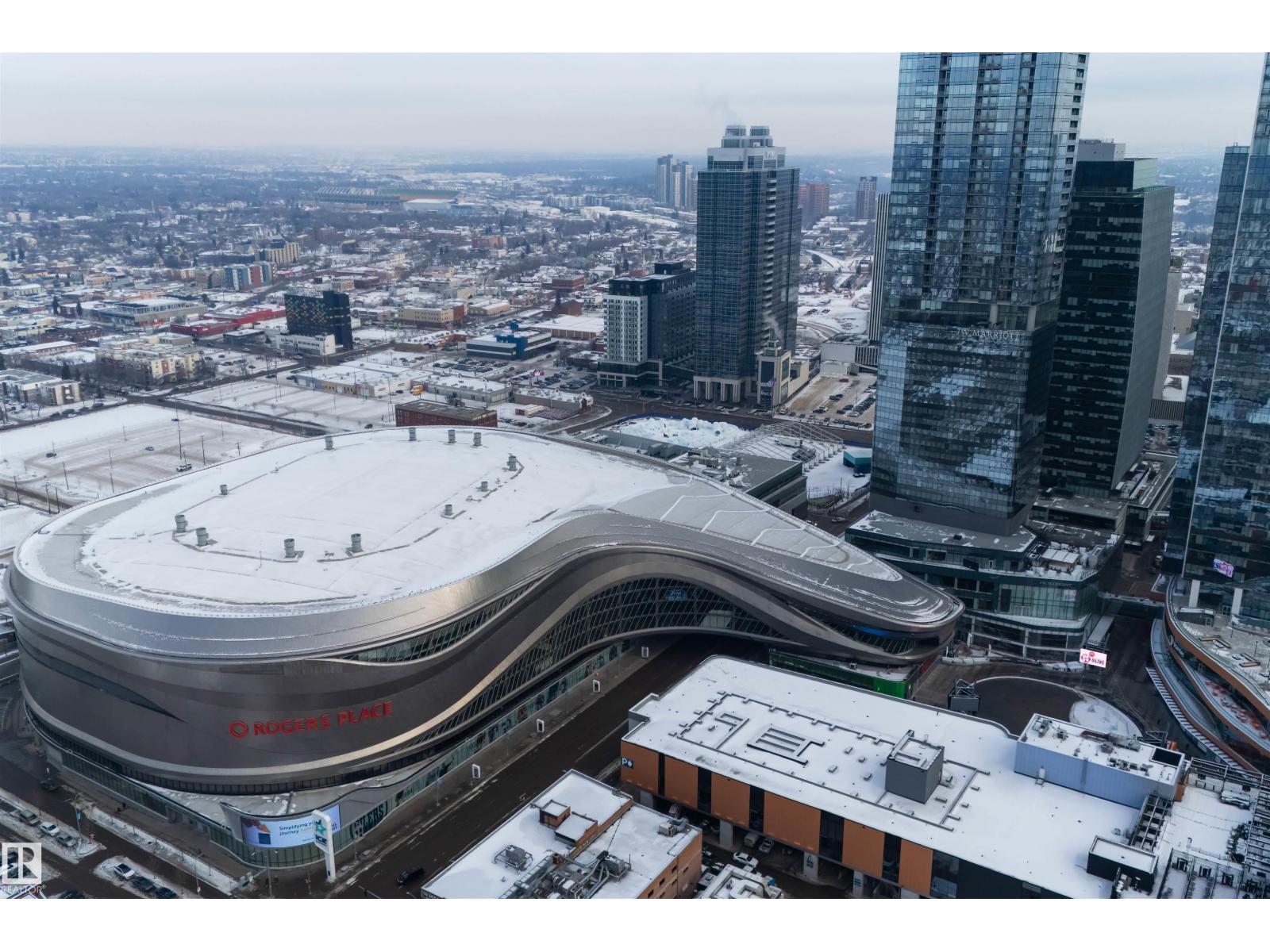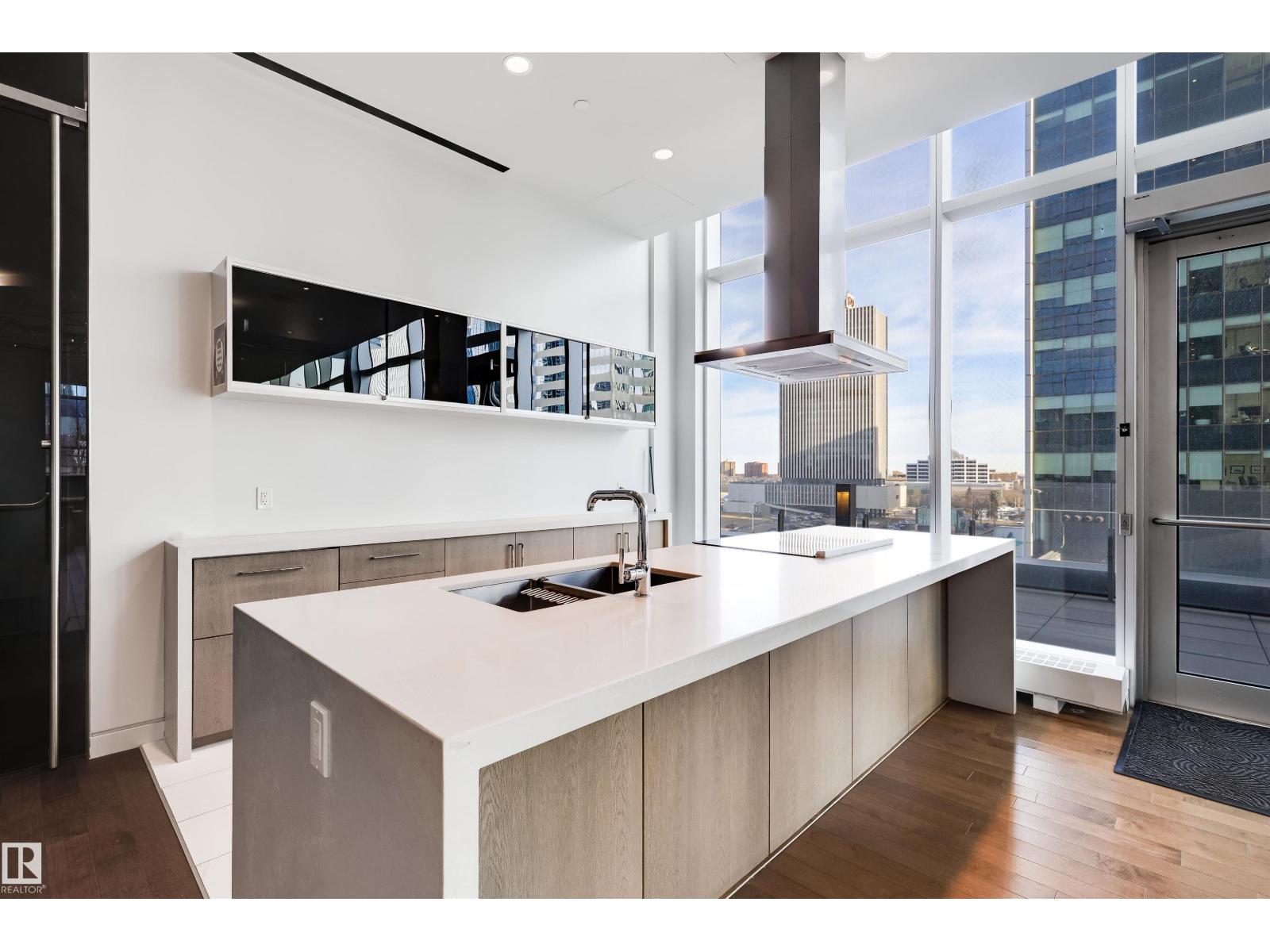 Welcome to The Legends Private Residences, located above the prestigious JW Marriott in the heart of the Ice District. This stylish, move-in-ready, one-bedroom, one-bathroom residence offers in-suite laundry, engineered hardwood flooring, floor-to-ceiling windows, and balcony with beautiful sunset views. The modern kitchen features quartz countertops and high-quality built-in Bosch and Miele appliances, combining sleek design with everyday functionality. The unit includes a titled parking stall, along with access to the JW Marriott’s premium amenities. Enjoy membership to the Archetype Fitness Centre, indoor pool, hot tub, steam room, and spa, plus exclusive use of The Residence Club amenities including a rooftop patio, billiards lounge, conference room, outdoor BBQ patio, dog run, and 24/7 concierge and security. Direct pedway access connects you to Rogers Place, restaurants, grocery, and more. Experience elevated living at The Legends Private Residences. (id:63190)