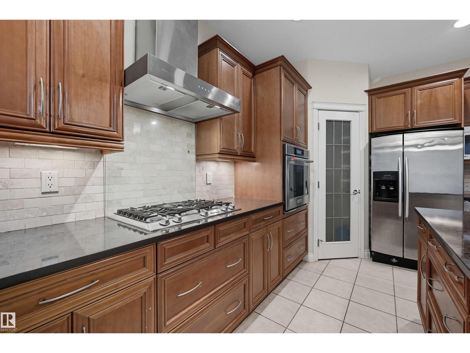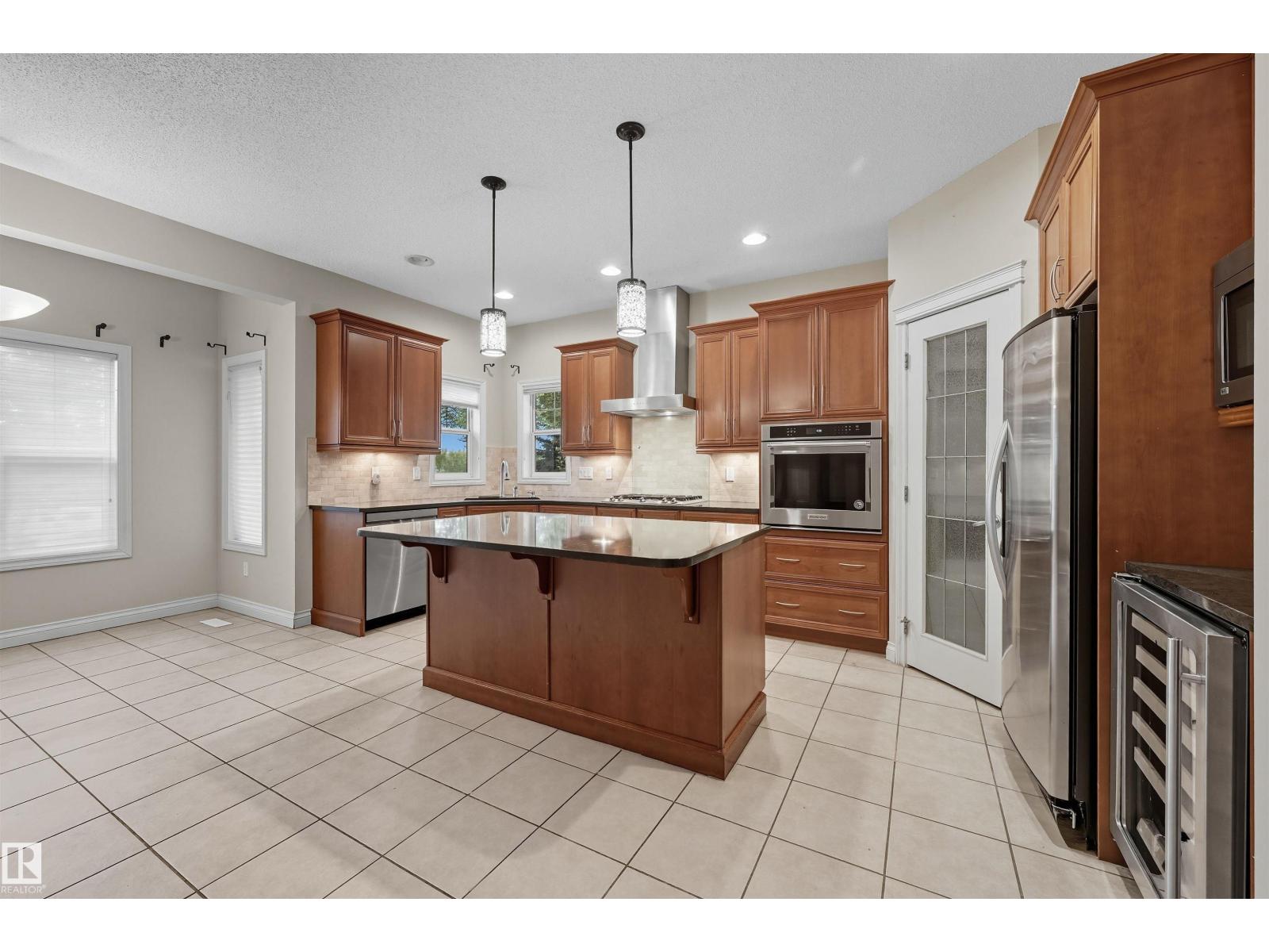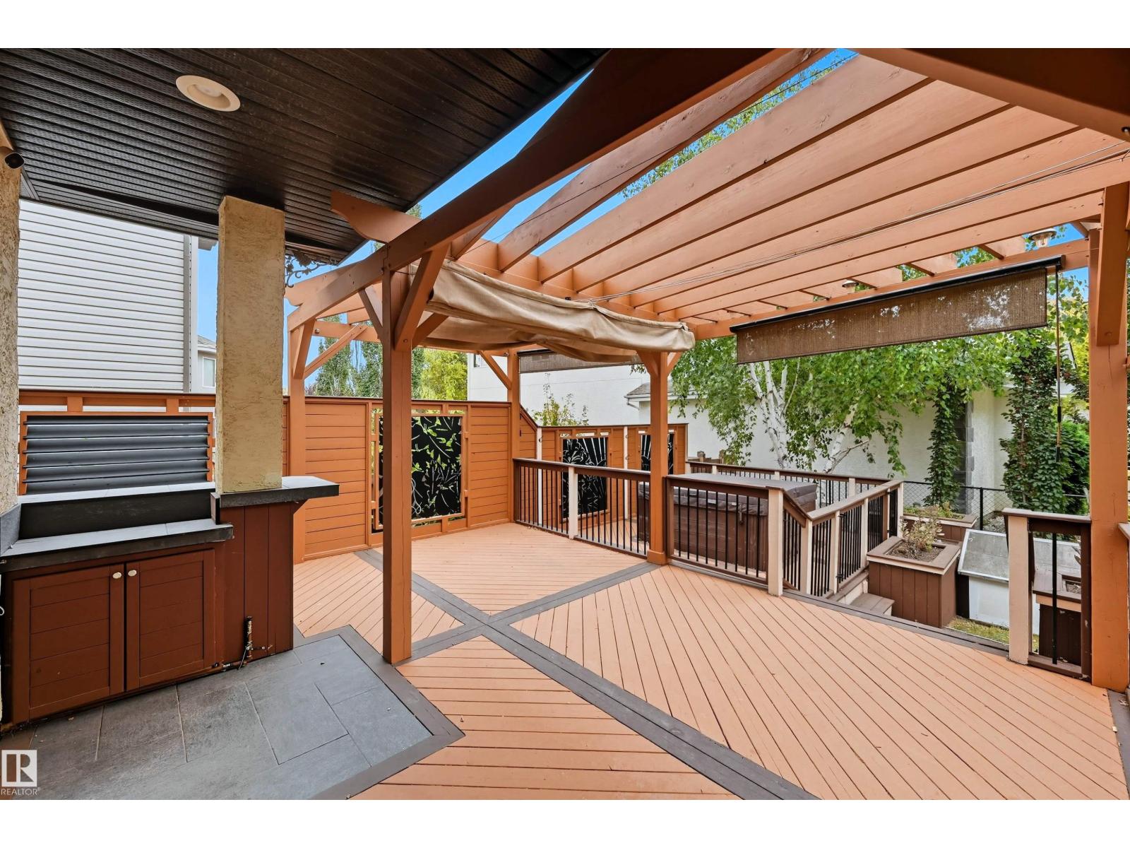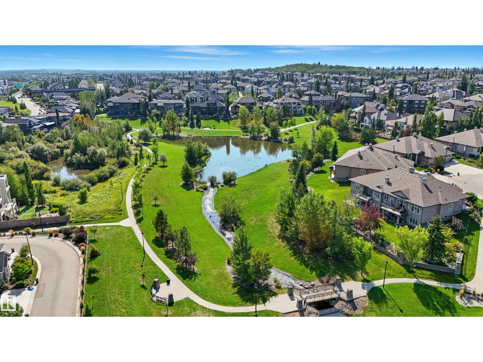 Spacious corner lot nestled in desirable Hodgson across from Hodgson Wetland Park & steps to Whitemud Creek Ravine. Past the cozy porch find a vaulted foyer with plenty of natural light & large office (or bdrm) off entrance. Open concept kitchen w/ stainles steel appliances (Kitchen Aid wall oven/Dacor stove), dining nook & living room w/ gas fireplace. Main level complete w/ 3PC BTHRM, spacious mudrm w/ laundry. Upstairs has a huge bonus room, 2 spare bedrooms & spacious primary retreat w/ ensuite & walk-in closet. Basement finished w/ 4th bdrm, full bthrm, rec space & flex area. This corner lot offers partial park views from the yard + has plenty of deck space to enjoy w/ pergola & hot tub. Features: 9' ceiling, hot water on demand, AC, SIDE ENTRANCE. Great school designations & proximity to Hodgson Park & ravine walking trails. Terwillegar Rec Centre, transit & easy access to major arteries. Plus shopping & dining at nearby neighborhood squares! (id:63190)