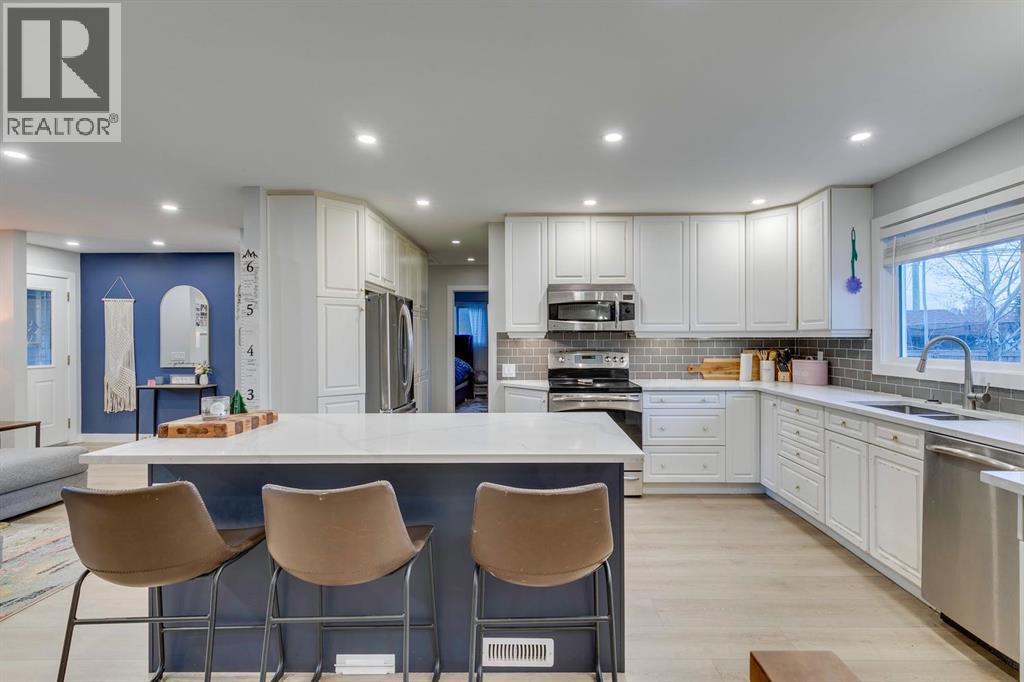 Refreshed and move-in ready! Welcome to this beautifully updated 1,180 sq ft bungalow in the wonderful community of Bonavista Downs, offering stylish comfort, modern upgrades, and a bright open-concept layout.The spacious living room is filled with natural light thanks to large NEW windows, creating a warm and inviting space perfect for everyday living and entertaining. The home features new flooring and updated finishes throughout, adding a fresh and modern feel.The modern kitchen offers a large island, ample cabinetry, and a dedicated dining area—perfect for family meals or hosting guests. Thoughtfully designed feature walls and updated details bring character and warmth to the main living space.With 5 bedrooms in total—including 3 on the main level and 2 in the fully finished basement—this home offers incredible flexibility for families, guests, or a home office. Two bathrooms provide added convenience for busy households.The fully finished basement expands the living space with plenty of room for a recreation area, media room, or additional family space.Outside, enjoy the spacious backyard with room to relax, garden, or entertain, along with the convenience of a double detached garage providing both parking and storage.Located in Bonavista Downs, a welcoming and established community known for its parks, schools, and easy access to shopping, transit, and major roadways, this home offers both comfort and convenience.With new windows, new flooring, updated features, and plenty of space, this refreshed home is ready for its next owners to move in and enjoy. (id:63190)