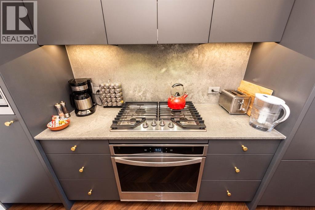 Experience elevated living in this Truman-built, concrete construction condo in sought-after West Springs. This 1-bedroom residence offers peace and quiet with superior soundproofing, allowing you to fully enjoy the spacious 547 sq ft open-concept design.Floor-to-ceiling glass in the living room, 9’ ceilings, and LED pot lighting create a bright, modern atmosphere. The chef-inspired kitchen features quartz countertops, a gas cooktop, wall oven, and custom soft-close cabinetry. Retreat to the bedroom with its expansive walk-in closet, and step out onto your private balcony with sweeping views.With central air conditioning, high-end finishes, and a location just minutes from shopping, dining, and transit, this home blends comfort, style, and convenience. Perfect for professionals, downsizers, or investors seeking long-term value. (id:63190)