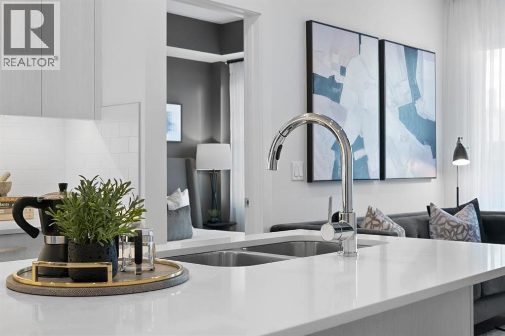 Welcome to Lockwood, where comfort meets convenience in this stunning 2-bedroom, 2-bathroom, plus den, unit with a titled parking stall, located in the vibrant and fast-growing community of Chelsea in Chestermere. Surrounded by parks, playgrounds, and scenic walking trails—and just moments from Chestermere Lake—this home is perfectly positioned for both relaxation and adventure. Enjoy easy access to local amenities like Chestermere Station, Chestermere Crossing, and an array of shopping and dining options, all just minutes away. Step inside to experience a thoughtfully designed open-concept layout featuring an oversized east-facing balcony that floods the living space with natural morning light and offers serene views. Every detail has been carefully curated, from the luxurious vinyl plank flooring and high ceilings, to the chef-inspired kitchen complete with full-height soft-close cabinetry, sleek stainless steel appliances, and an elegant eat-up bar topped with quartz countertops—ideal for casual meals and entertaining. The primary bedroom, features a generous walk-through closet and a private 3-piece ensuite. A second bedroom, perfect for guests or a home office, and a stylish 4-piece main bathroom complete the space. Beyond your private residence, enjoy a wealth of on-site amenities including a fully equipped fitness centre, owners’ lounge, bike storage, and more—all designed to complement an active and social lifestyle. This bright and modern home is move-in ready, offering a premium opportunity to embrace the TRUMAN lifestyle in one of Chestermere’s most exciting new communities. *Photos shown are of a similar unit (id:63190)