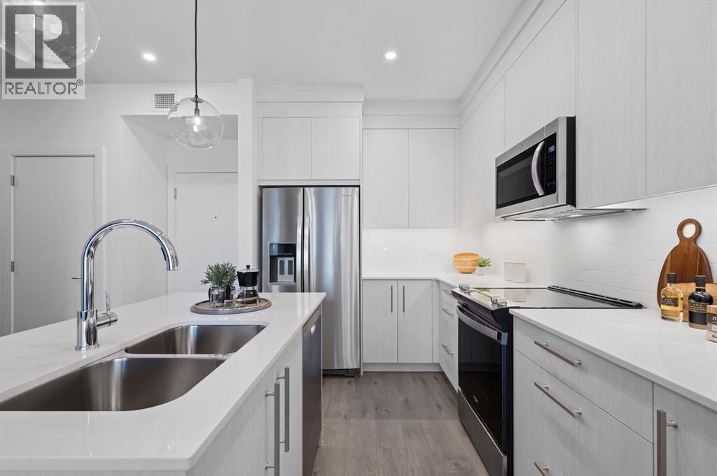 Discover this 2-Bedroom + Den, 2-Bathroom home with a titled underground parking stall at Lockwood, offering the perfect blend of comfort, style, and convenience in the vibrant community of Chelsea, Chestermere.Inside, you’ll find a bright, open layout with luxury vinyl plank flooring, a modern lighting package, and oversized windows that flood the space with natural light. The kitchen is designed for both function and flair, featuring stainless steel appliances, full-height soft-close cabinetry, and elegant quartz countertops — an inviting space for everything from quick weekday meals to weekend gatherings with friends.The primary bedroom includes a walk-through closet leading to a private three-piece ensuite, while the second bedroom offers ample space and comfort for family or guests. The versatile den is perfect for a home office, hobby space, or quiet retreat. The versatile den is perfect for a home office, hobby space, or quiet retreat.Additional features include in-suite laundry, stylish window coverings, and a private balcony off the living room — the perfect spot for morning coffee or unwinding at the end of the day.Located just minutes from Chestermere Lake, parks, pathways, and convenient shopping and dining at Chestermere Station and Chestermere Crossing, this residence combines modern design with a connected, small-town feel. *Photo gallery of similar unit (id:63190)