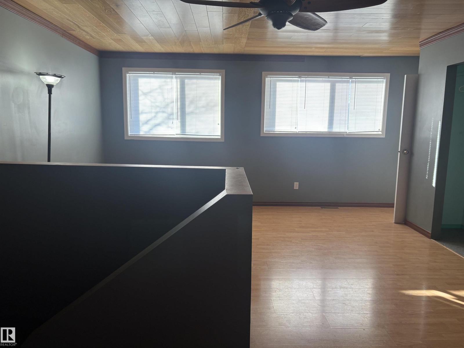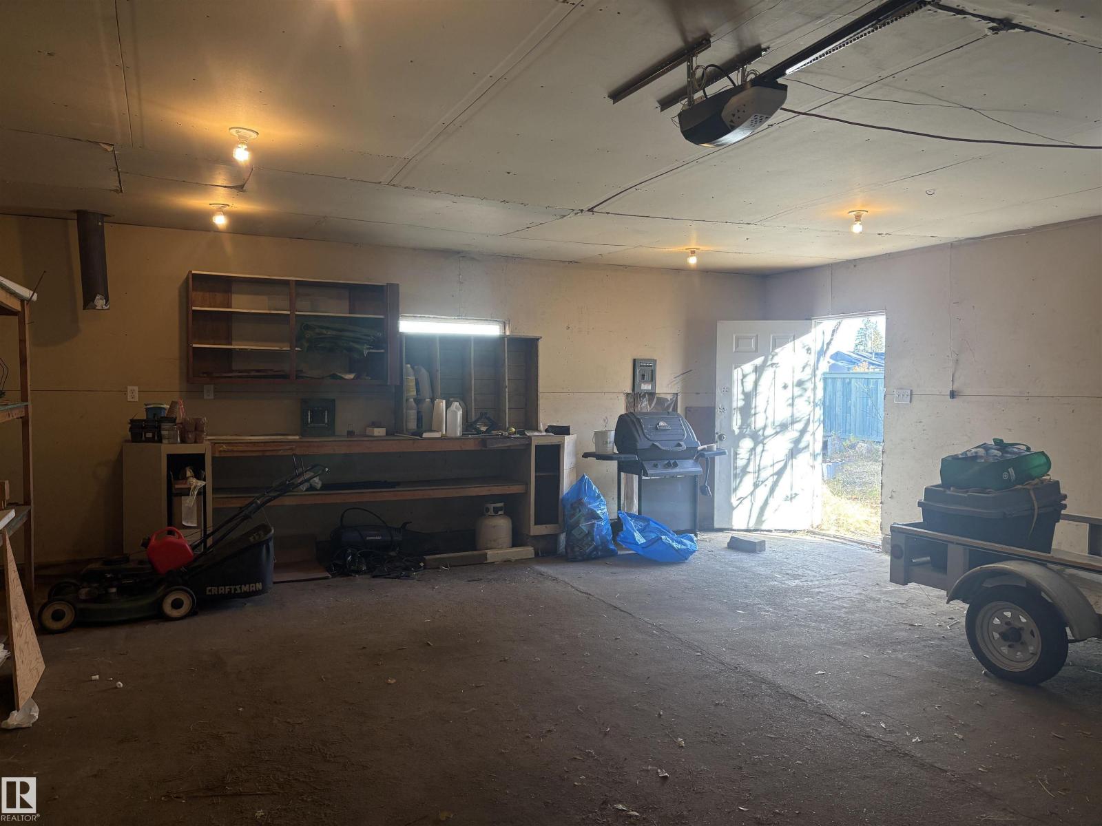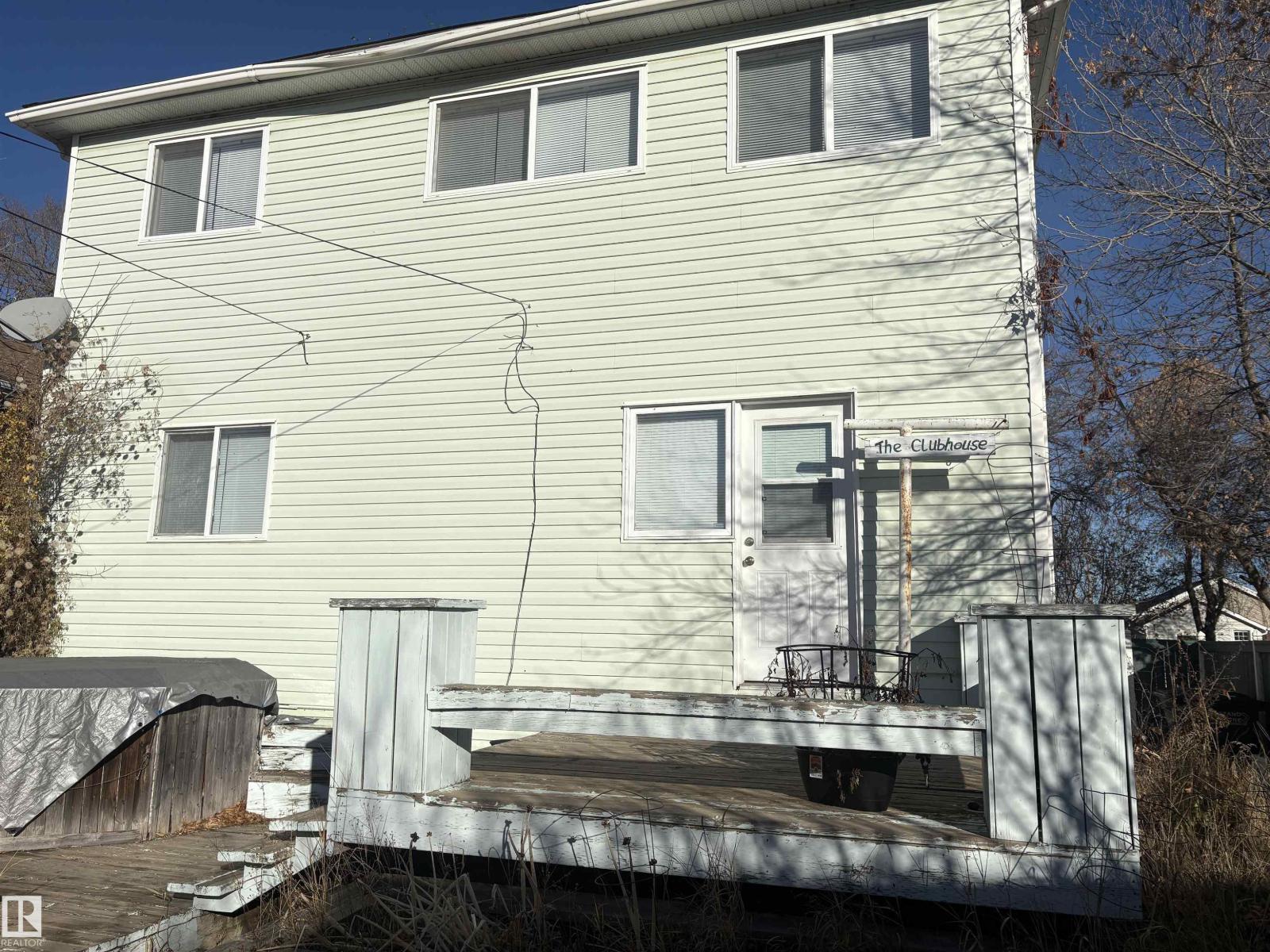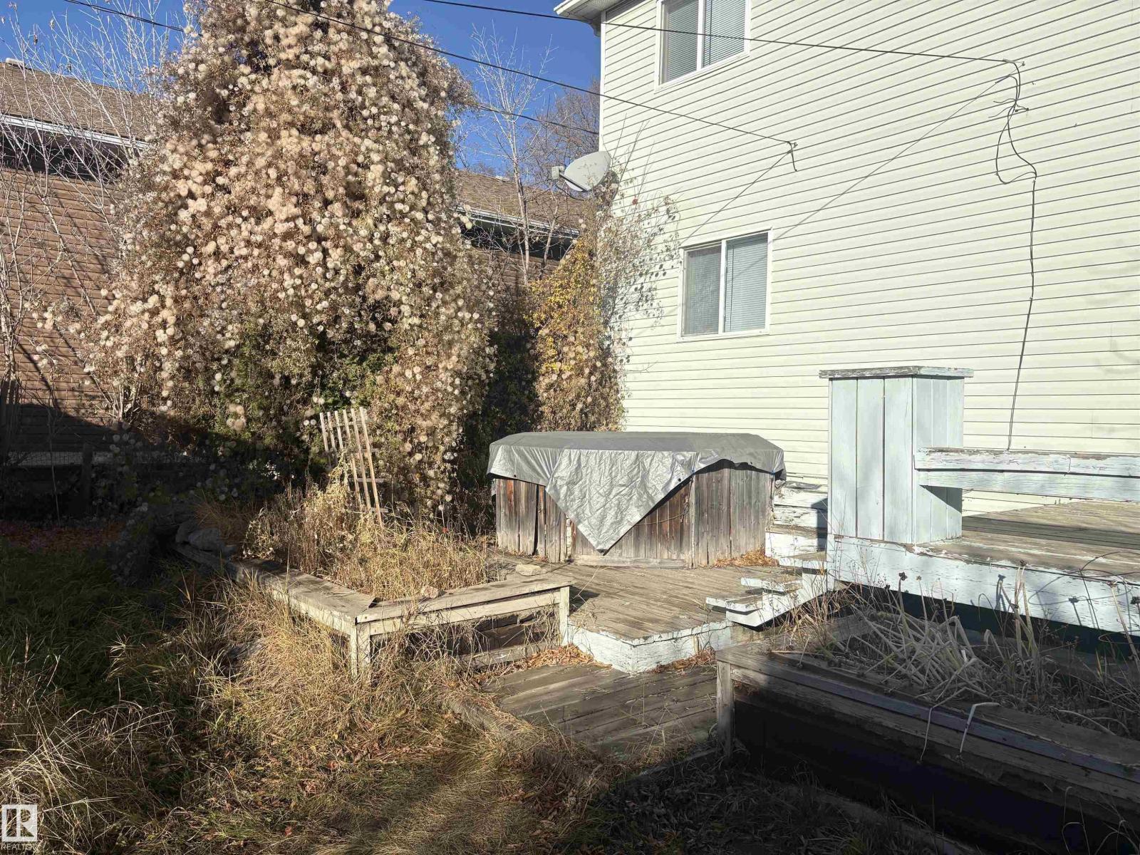 Great opportunity to own this 3-bedroom, 2-bathroom home with a double detached garage and just under 1,500 sq ft of living space. The entire upper floor can be used as a spacious primary suite with a 4-piece bath or as a fun play space for the kids, offering flexibility to fit your lifestyle. The main floor features an open kitchen and living room, two bedrooms, a 4-piece bath, and a convenient space for a home office just off the living area. Step outside to a private, treed backyard with a deck and hot tub, perfect for relaxing or entertaining. Upgrades include some windows, a high-efficiency furnace, newer appliances, and two jetted tubs. Located in a quiet Redwater neighborhood close to schools, parks, and all amenities. Redwater offers K–12 schools and is about 30 minutes north of Edmonton. (id:63190)