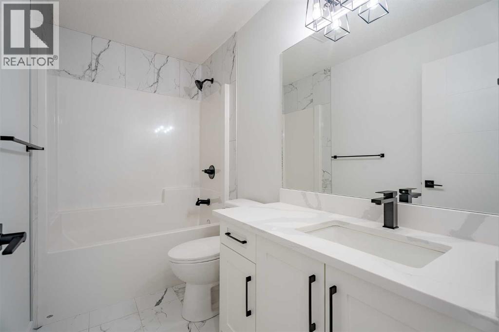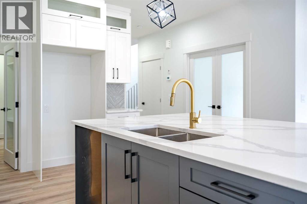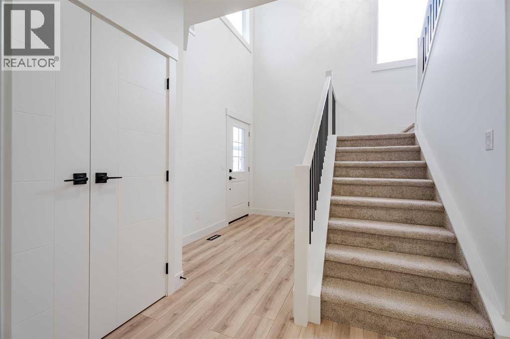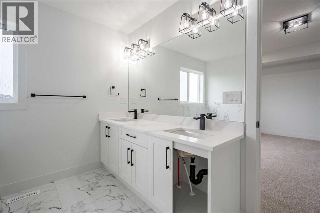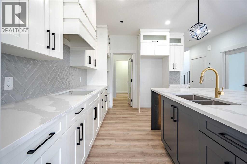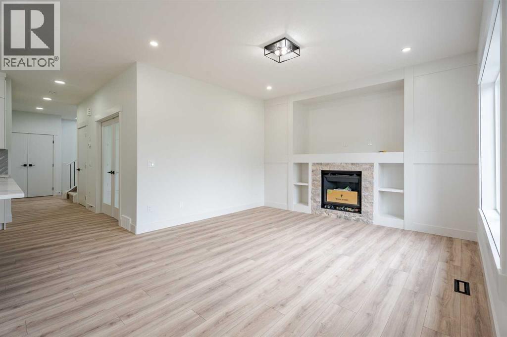 Quick Possession and Brand New with Triple Garage on a spacious lot with 51' frontage and 120' deep. Quick possession is available, and a Fall Special allows buyers to inquire about discount pricing to add a complete basement development. 2,372 sq.ft. two story with attached triple garage (28' x 23') and side access walk-up basement. Bright, open plan with spacious main level dining nook, kitchen with island and walk-through pantry (wood shelving) to spacious mud room (wood bench + shelves), family room with built-in shelves and fireplace, private Work From Home Office, two piece bath and spacious open cathedral front entry. Three bedrooms on the upper level including 15'9" x 14' Primary suite with raised tray ceiling and large walk-in closet (wood shelving), 5 piece Ensuite, bonus room with raised tray ceiling and fireplace, laundry room and 4 piece main bath. Bright undeveloped side access basement has high efficiency mechanical, roughed-in bath plumbing, and large windows for lots of natural light. Will be nicely appointed with ceiling height cabinets, quartz counter tops, upgraded lighting, vinyl plank, tile + carpet flooring, wood shelving in all closets, upgraded exterior and stonework. Includes GST (rebate to builder), new home warranty, rear deck with vinyl cover, front sod + tree, and $5,000 appliance allowance. Great family community with school, park and pond nearby, recreation facilities, and a quick commute to Airdrie, Balzac Mall, Calgary, or hospital nearby at Didsbury. A little drive, a lot of savings! (id:63190)
