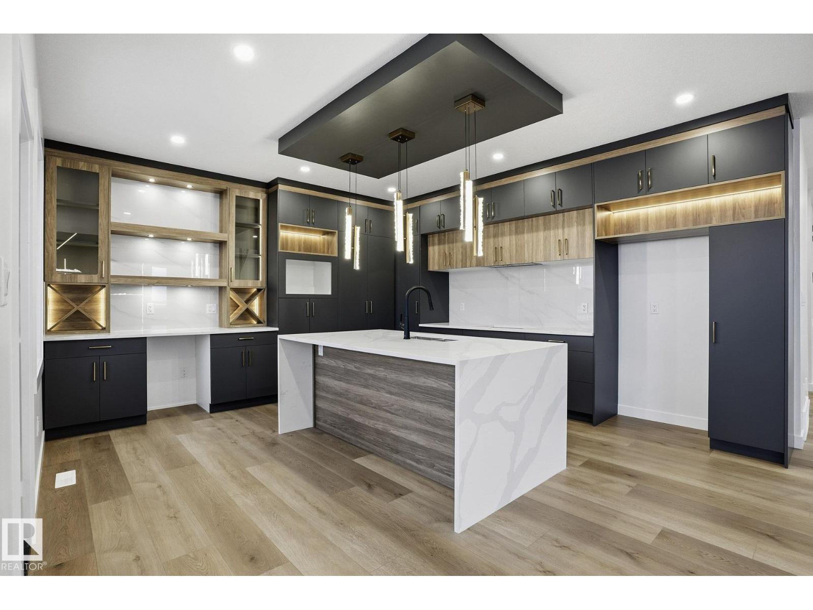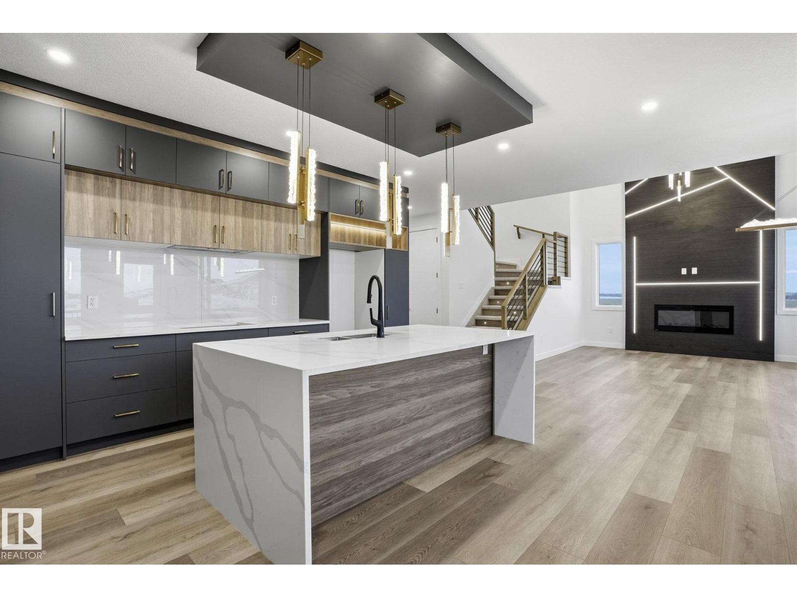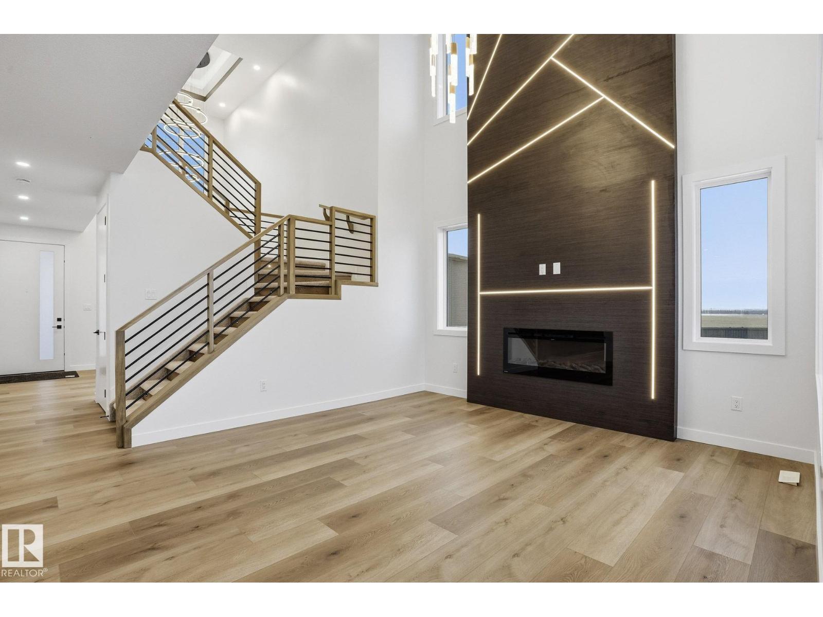 Beautiful 2-storey luxury home on a Pie-Shaped lot, offering space, comfort, and refined design throughout. This 5-bedroom, 4 full bathroom home features TWO stunning OPEN-TO-BELOW areas that create a bright, grand living experience. The Main Floor includes a bedroom with a full bath—ideal for guests or multi-generational living—alongside a chef-inspired kitchen with a waterfall-edge island, fully functional Spice Kitchen, and bar fridge. Step outside to a completed deck, perfect for seamless indoor-outdoor living. Upstairs, you’ll find 4 spacious bedrooms, including a luxurious primary suite with a fireplace and private ensuite, a second bedroom with its own ensuite, and two additional bedrooms sharing a full bath, plus a bonus room and convenient second-floor laundry. A thoughtfully designed home, perfect for modern family living. (id:63190)