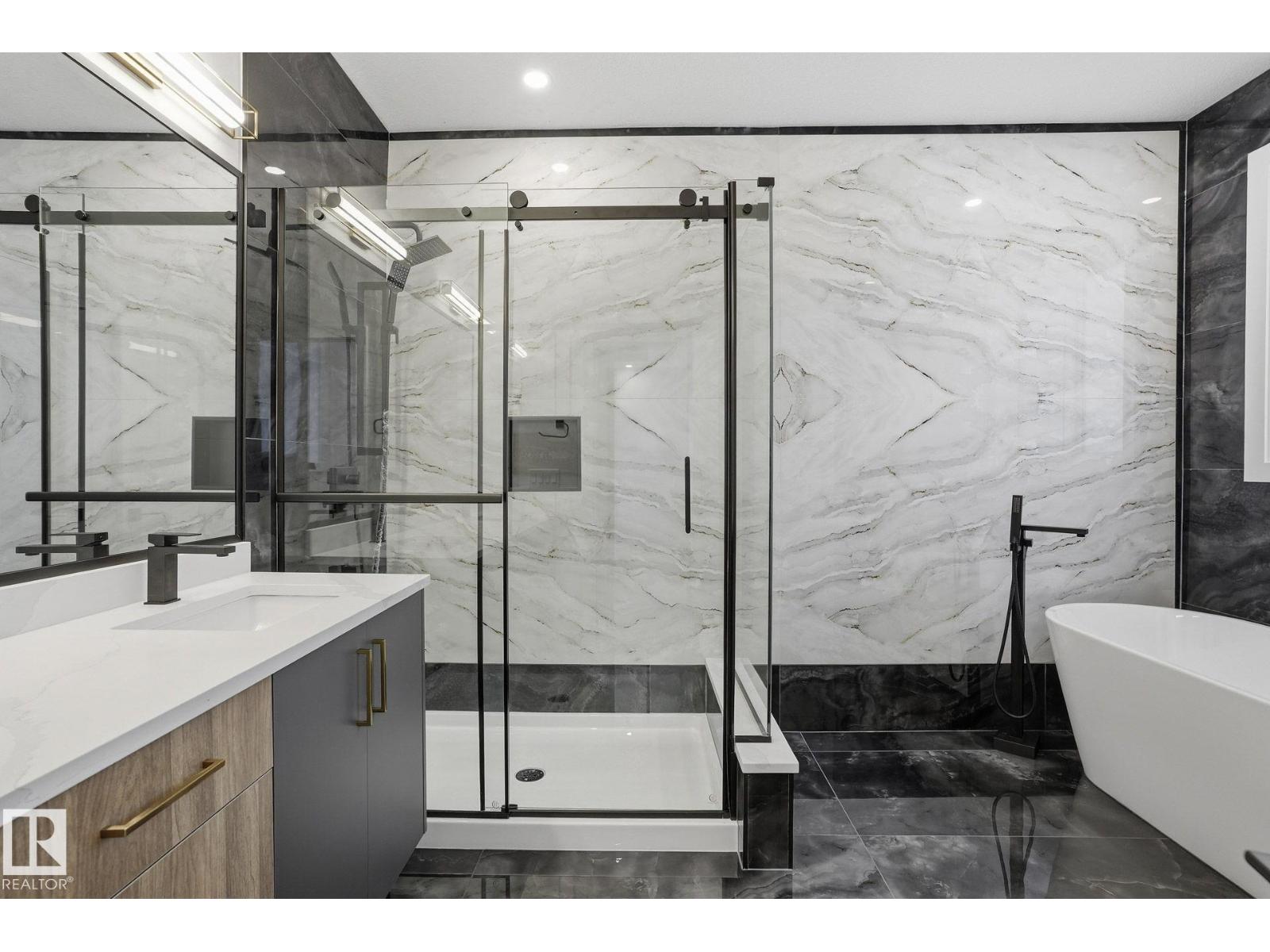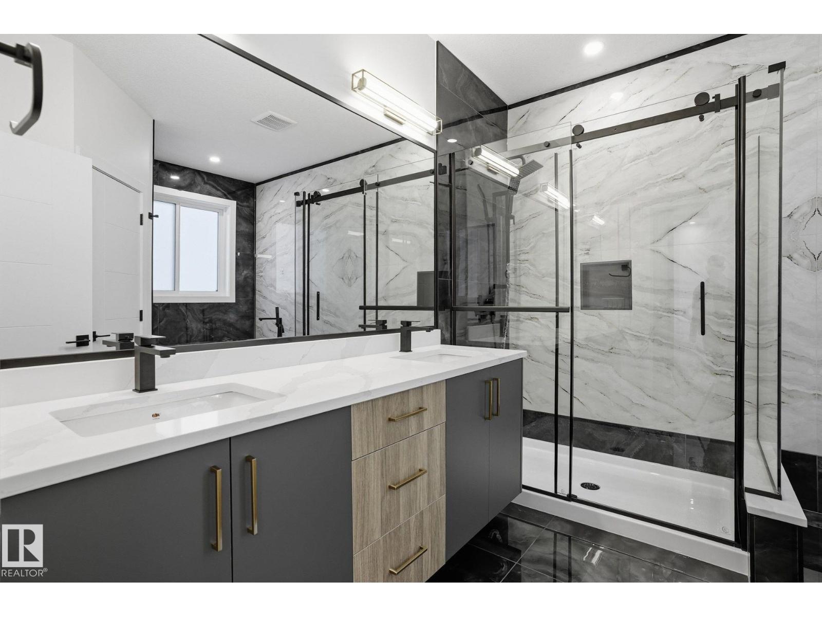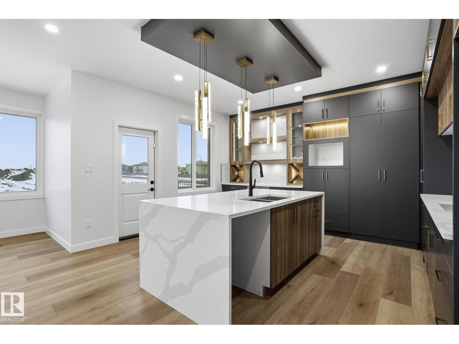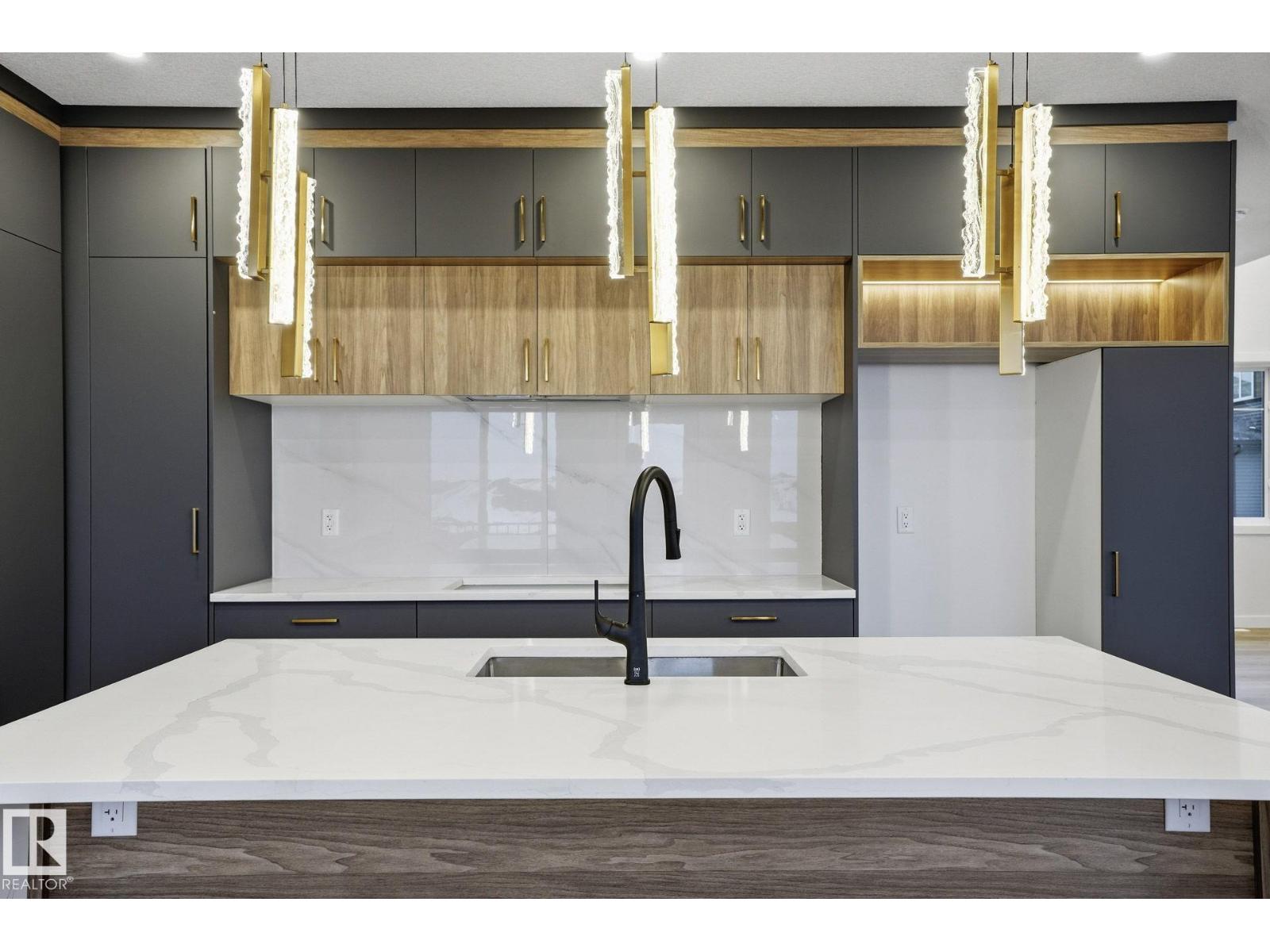 Beautiful 2-storey luxury home on a Pie-Shaped lot, offering space, comfort, and refined design throughout. This 5-bedroom, 4 full bathroom home features TWO stunning OPEN-TO-BELOW areas that create a bright, grand living experience. The Main Floor includes a bedroom with a full bath—ideal for guests or multi-generational living—alongside a chef-inspired kitchen with a waterfall-edge island, fully functional Spice Kitchen, and bar fridge. Step outside to a completed deck, perfect for seamless indoor-outdoor living. Upstairs, you’ll find 4 spacious bedrooms, including a luxurious primary suite with a fireplace and private ensuite, a second bedroom with its own ensuite, and two additional bedrooms sharing a full bath, plus a bonus room and convenient second-floor laundry. A thoughtfully designed home, perfect for modern family living. (id:63190)