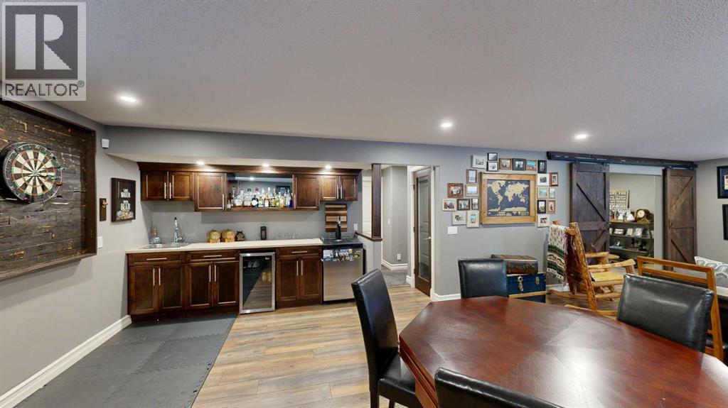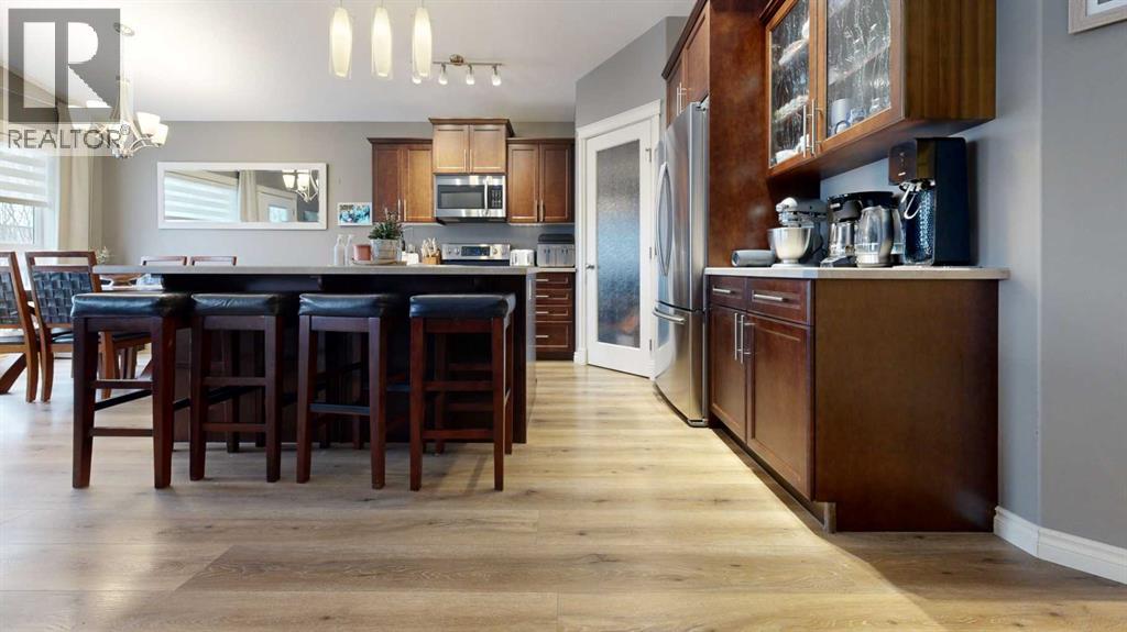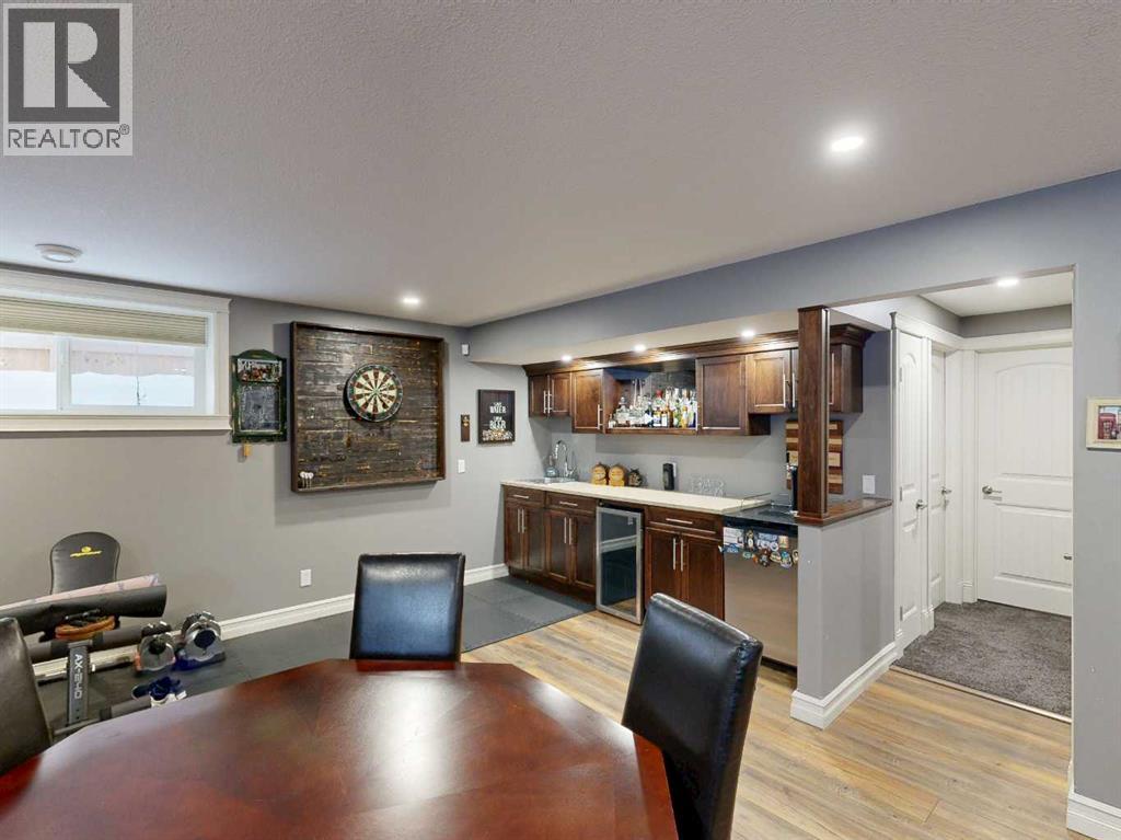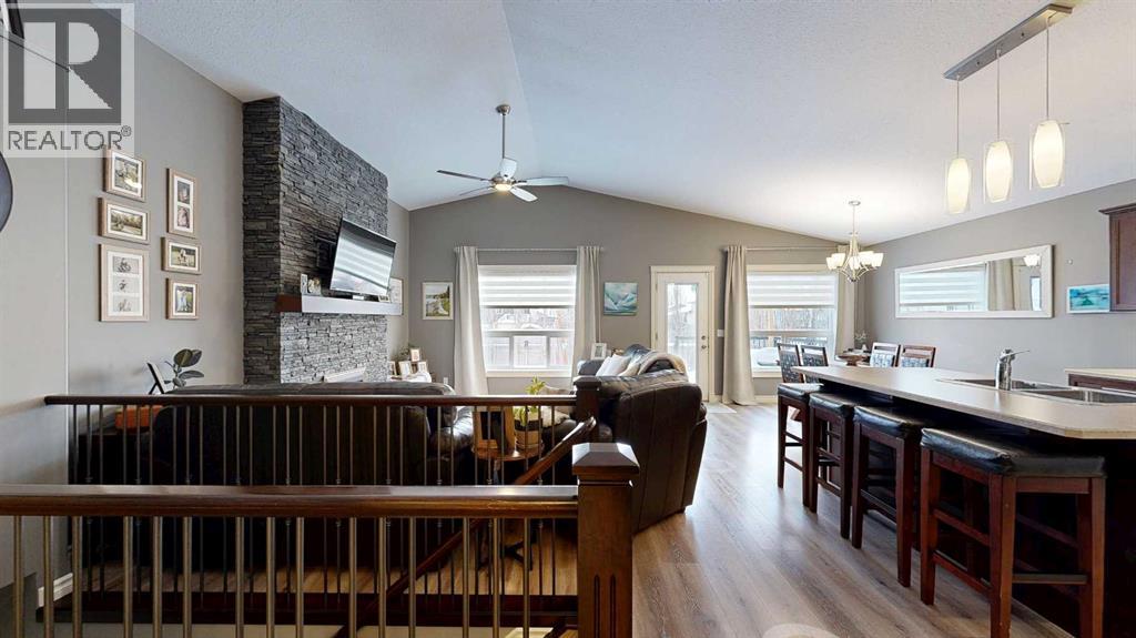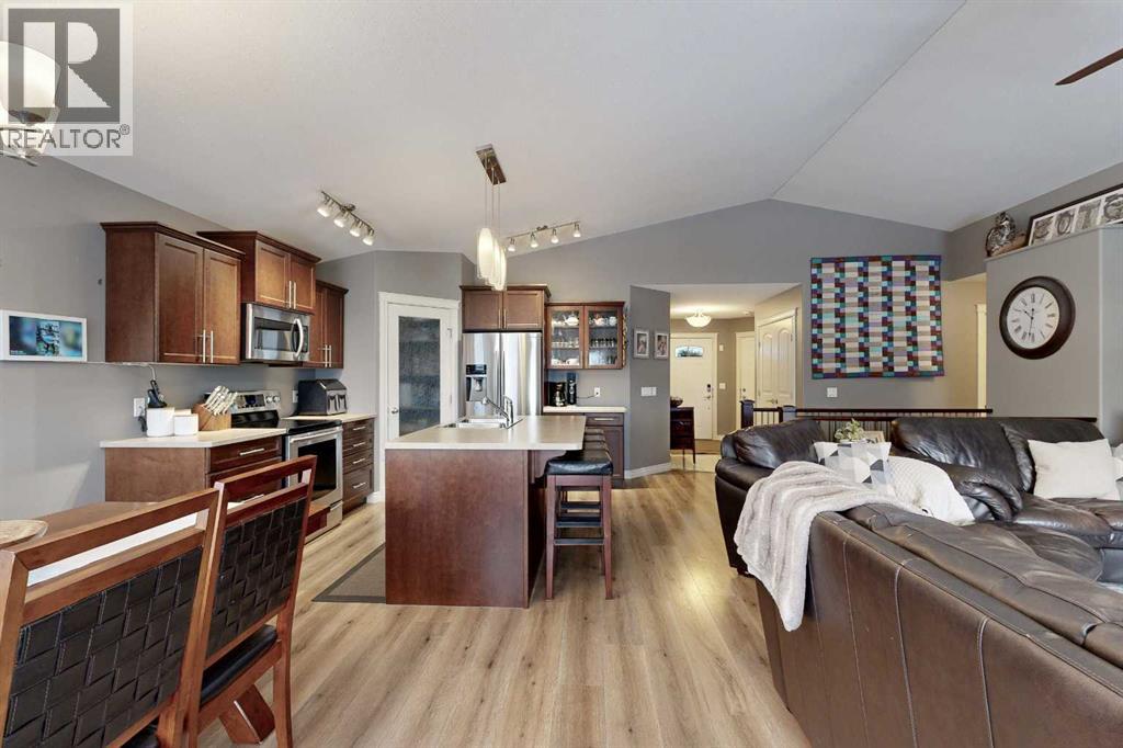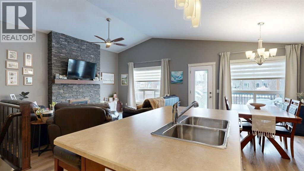 Lovely 2014-built bungalow offering 4 bedrooms and 3 bathrooms, perfect for families or first-time buyers. The open-concept main floor features vaulted ceilings, a cozy fireplace, and a bright, inviting living space. The kitchen is well designed with an island and pantry, making it ideal for everyday living and entertaining. The fully developed basement offers a spacious family/rec room complete with a built-in wet bar and wine rack, plus a charming kids’ hideaway tucked under the stairs, a fun and unique touch! Comfort is a priority with central air conditioning and a heated garage. Step outside to a private backyard retreat surrounded by mature trees, creating a peaceful summer oasis with plenty of space for outdoor entertaining and relaxing. Situated in an excellent location close to schools, parks, playgrounds, ball diamonds, and the golf course, this home truly checks all the boxes. An excellent starter or family home in a fantastic neighbourhood. (id:63190)