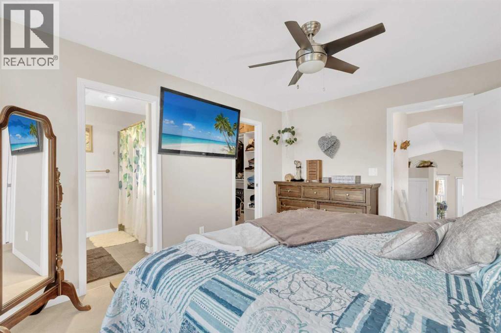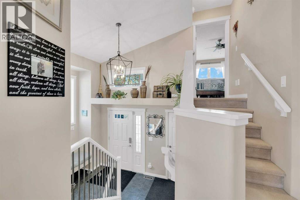 This modified bi-level offers a functional layout, thoughtful upgrades, and excellent energy efficiency in desirable Lakeway Landing, close to schools. The bright main level features vaulted ceilings and a well-designed kitchen with an island. The primary bedroom includes a private ensuite and walk-in closet.The fully developed lower level includes cozy in-floor heating, which also extends into the garage. Outdoor living is ideal for entertaining, with a raised deck, retractable pergola, privacy lattice, and secure storage below. The fully fenced yard offers a 10-foot lockable gate, mature ornamental trees, fruit bushes, and perennial gardens. Attic insulation has been upgraded to R65 for added efficiency.A well-cared-for home in Lakeway Landing. Pride of ownership is evident throughout. (id:63190)
