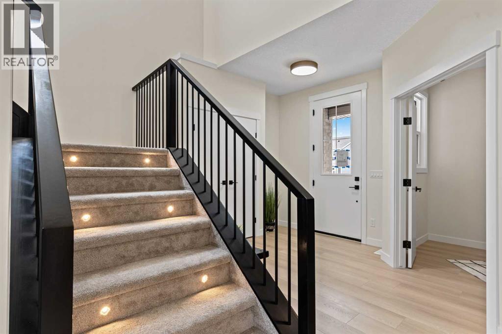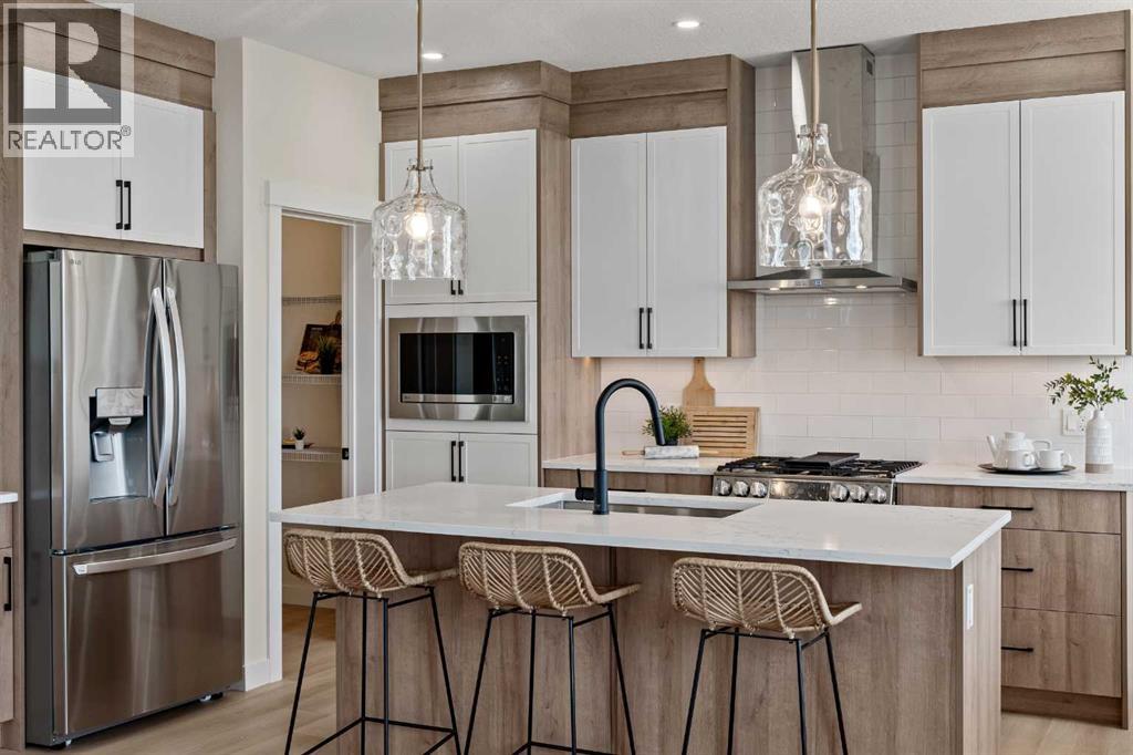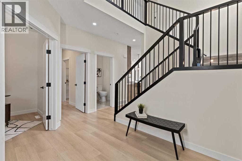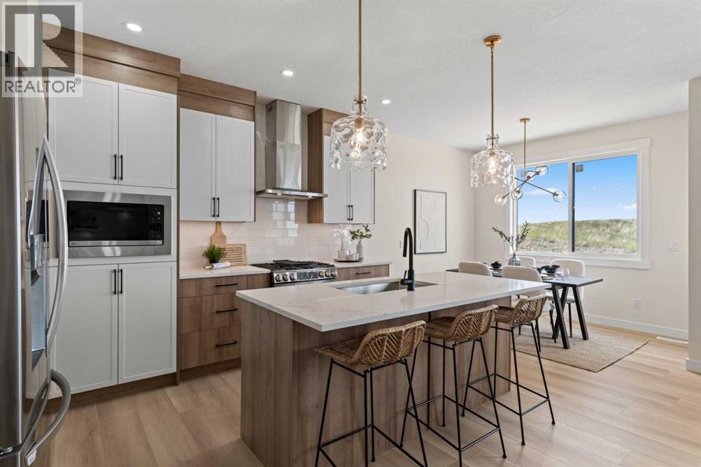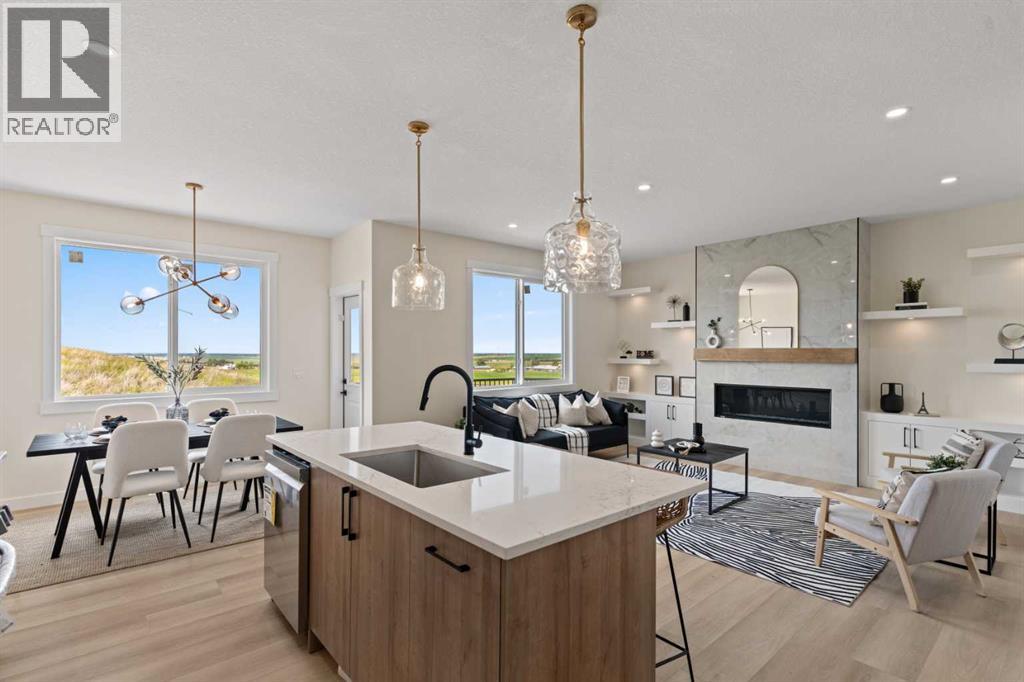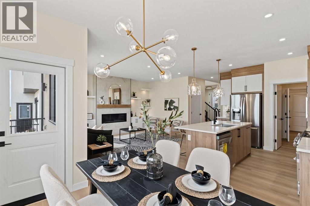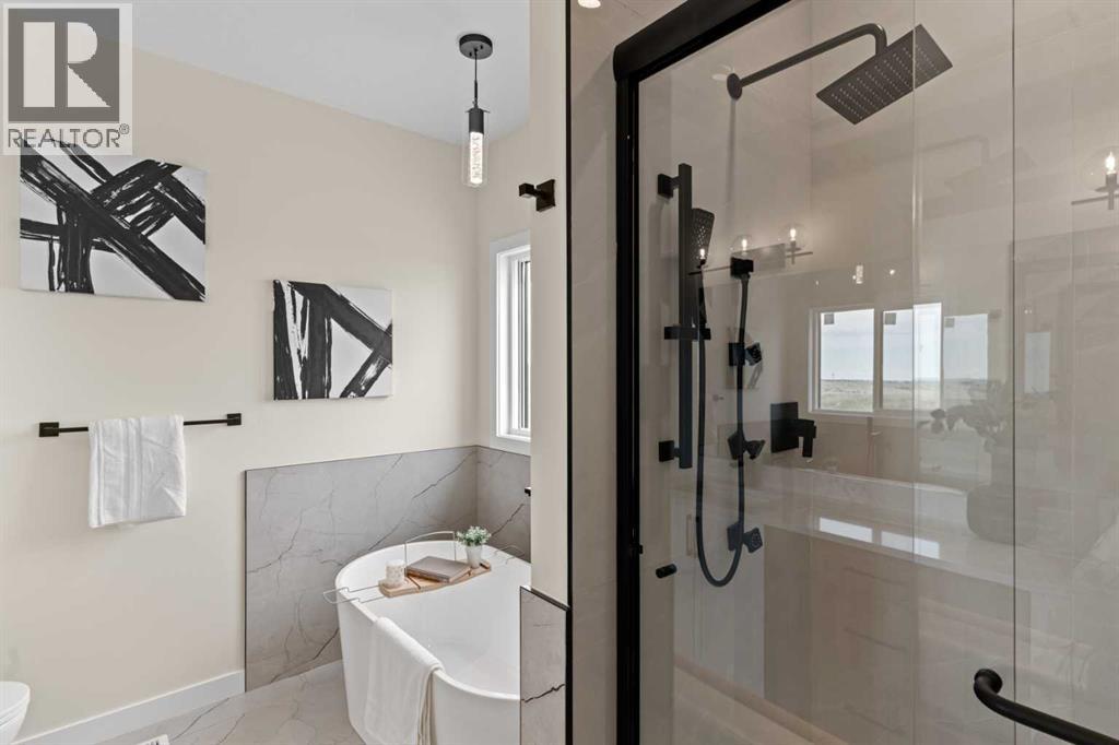Welcome to our latest Exquisite SHOWHOME in the town of Crossfield. Just 10 minutes north of Airdrie, 25 minutes from Calgary and 3 minutes off highway 2. This 2050sqft heavily upgraded home consists of 3 bedrooms, 2.5 bathrooms with bespoke finishings such as maple wood detail, shaker with plywood cabinet boxes, black exterior dual pane windows, high end lighting, montigo natural gas fireplace feature, quartz countertops, upgraded black plumbing fixtures with freestanding tub, upgraded black hardware, wide plank Lvp flooring with a drywalled/insulated garage. Exterior also includes beautiful stucco/stone finishes. Full finishes can be provided upon request. Additional features include a large WALKOUT lot, 9FT CEILINGS on all floors, Open concept design, separate entrance, completed landscaping, basement roughed in with plans included. Exterior landscaping to be completed concrete wrapped around to rear patio is included. Spend sunny afternoons in the towns parks and playgrounds such as Veterans peace park or checkout the Crossfield Farmers market, the annual demolition Derby, the Rodeo grounds. This rapidly growing town also has amenities such K-12 schools such as Crossfield elementary school and W.G. Murdoch School, which are just short walk away! Find your forever home in this beautiful serene town with connectivity and affordable prices, you'll wonder why you didn't move sooner! Home is almost complete with final finishes/touchups and exterior landscaping remaining. (id:63190)