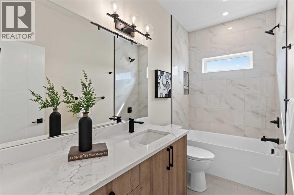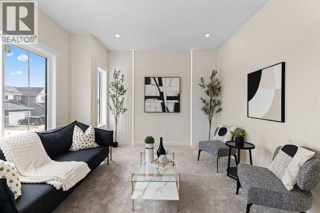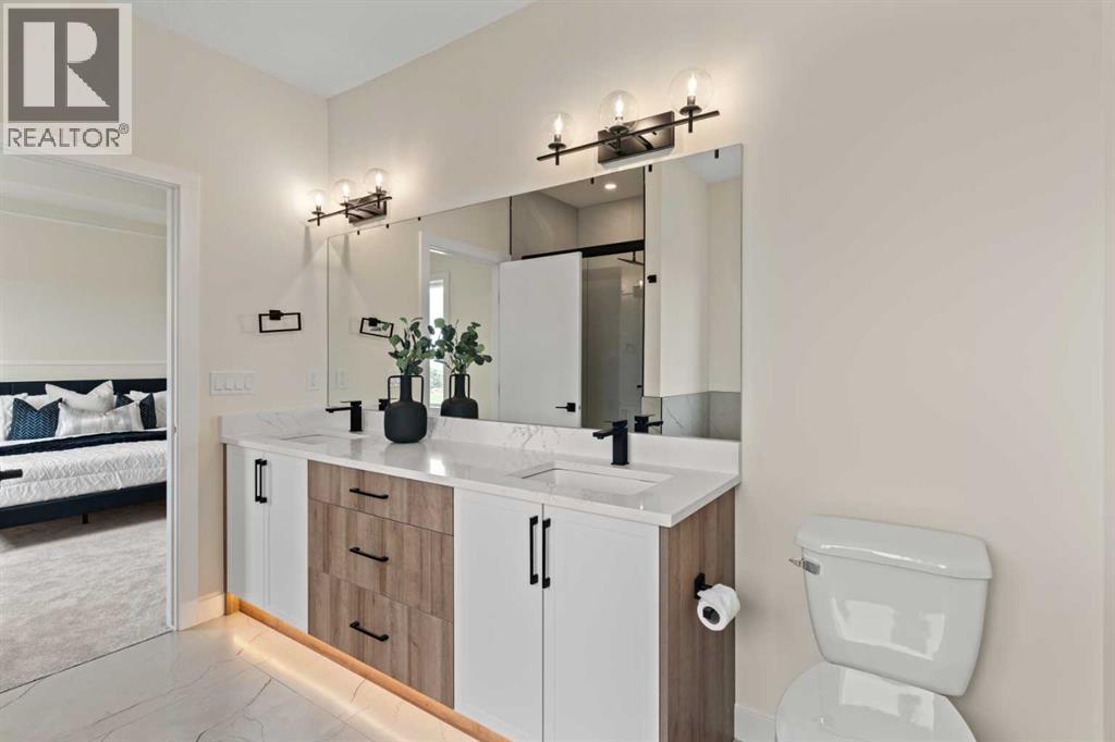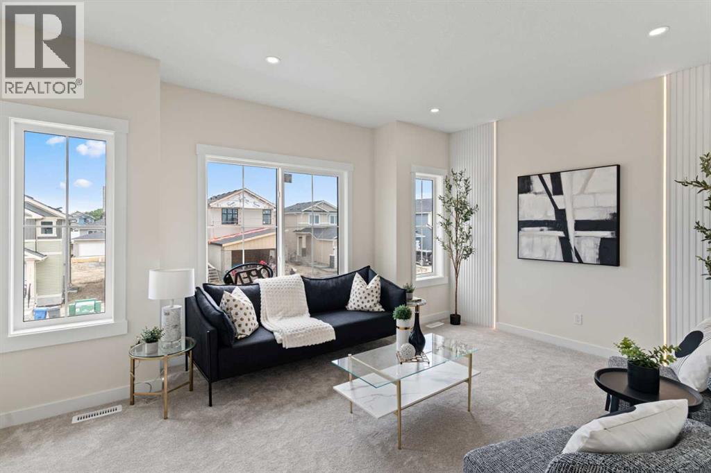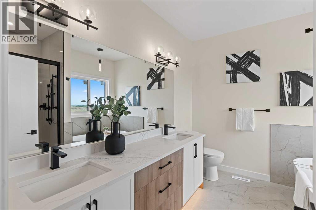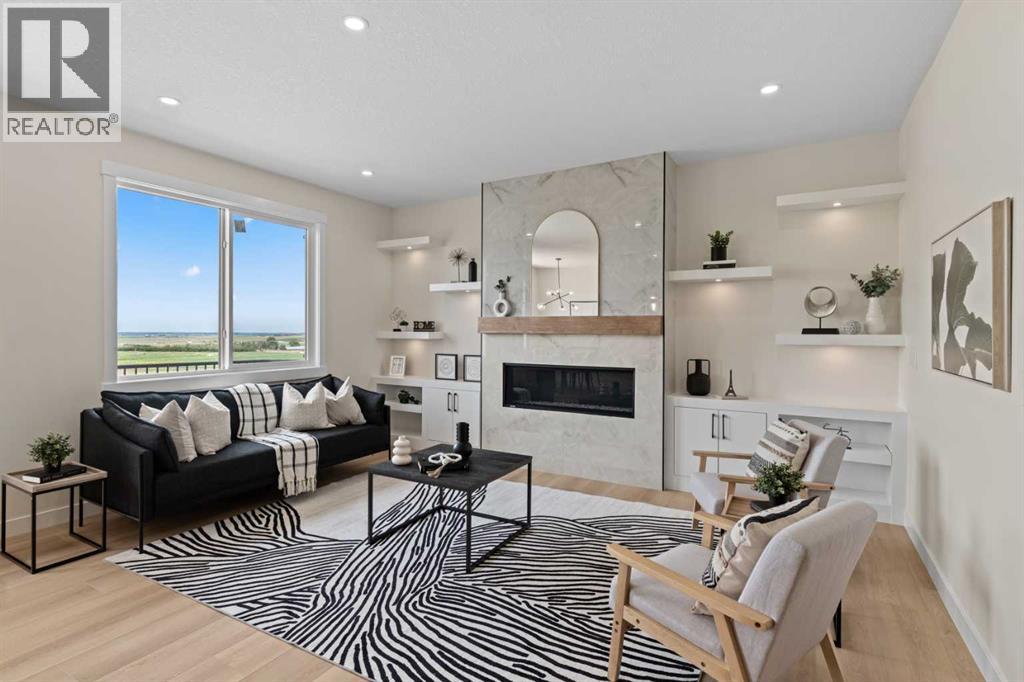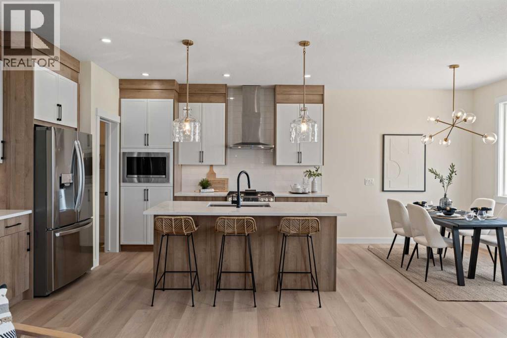 Welcome to our latest Exquisite SHOWHOME in the town of Crossfield. Just 10 minutes north of Airdrie, 25 minutes from Calgary and 3 minutes off highway 2. This 2050sqft heavily upgraded home consists of 3 bedrooms, 2.5 bathrooms with bespoke finishings such as maple wood detail, shaker with plywood cabinet boxes, black exterior dual pane windows, high end lighting, montigo natural gas fireplace feature, quartz countertops, upgraded black plumbing fixtures with freestanding tub, upgraded black hardware, wide plank Lvp flooring with a drywalled/insulated garage. Exterior also includes beautiful stucco/stone finishes. Full finishes can be provided upon request. Additional features include a large WALKOUT lot, 9FT CEILINGS on all floors, Open concept design, separate entrance, completed landscaping, basement roughed in with plans included. Exterior landscaping to be completed concrete wrapped around to rear patio is included. Spend sunny afternoons in the towns parks and playgrounds such as Veterans peace park or checkout the Crossfield Farmers market, the annual demolition Derby, the Rodeo grounds. This rapidly growing town also has amenities such K-12 schools such as Crossfield elementary school and W.G. Murdoch School, which are just short walk away! Find your forever home in this beautiful serene town with connectivity and affordable prices, you'll wonder why you didn't move sooner! Home is almost complete with final finishes/touchups and exterior landscaping remaining. (id:63190)