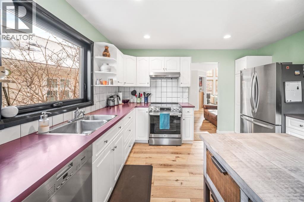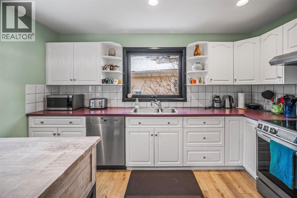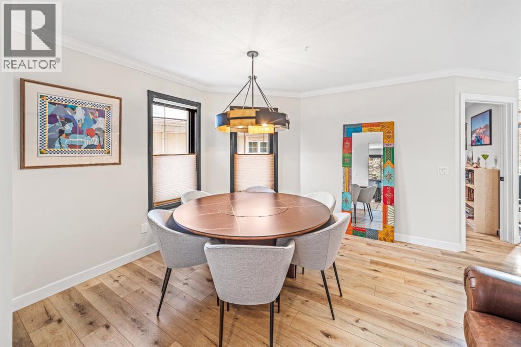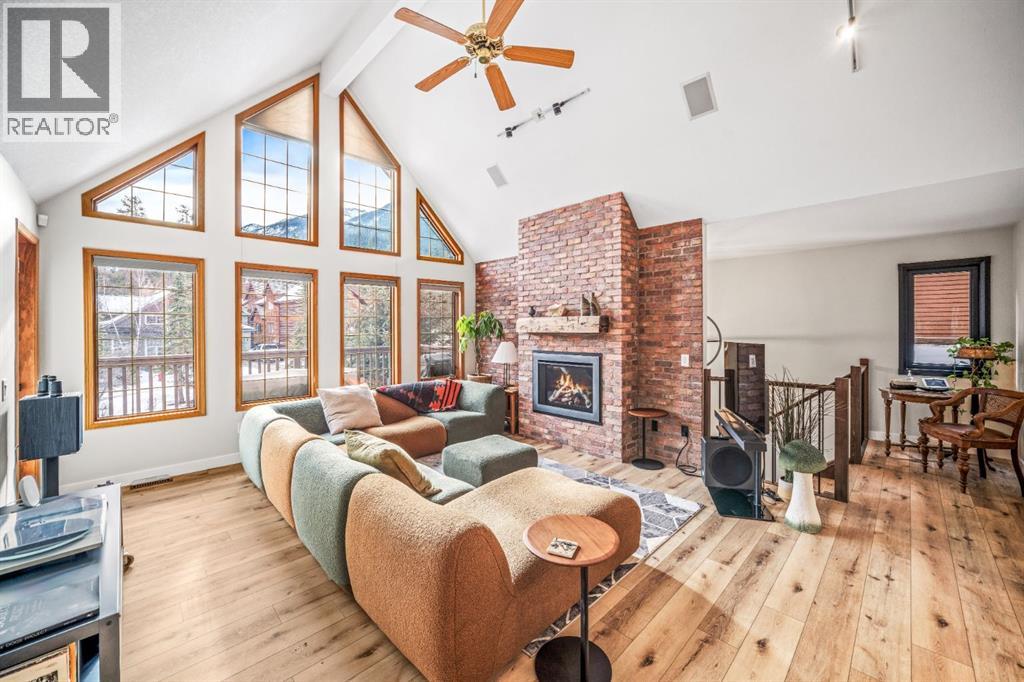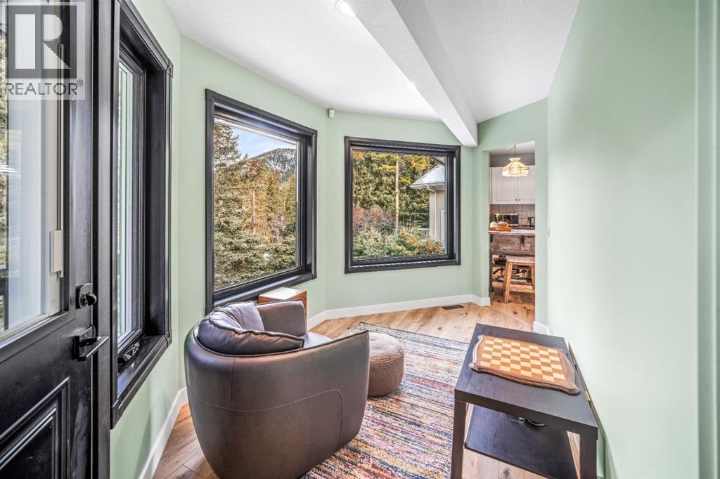 108 Lougheed Circle, Banff, Alberta is a quietly confident mountain home—light-filled, grounded, and deeply connected to its setting. Tucked into a peaceful residential cul-de-sac at the base of Sulphur Mountain, this updated single-family residence offers the rare combination of privacy, outdoor space, and walkability in one of Banff’s most sought-after neighbourhoods. Thoughtfully oriented to the south, the home is designed around natural light and everyday livability. The main living level sits above grade, elevating the experience with vaulted ceilings, expansive windows, and long views of the surrounding mountains. A bright great room anchors the space, centred around a warm fireplace and flowing naturally into the dining area and kitchen—spaces that feel open yet grounded, ideal for both quiet mornings and unhurried evenings. A generous primary suite with ensuite bath, dedicated office, and sunroom further reinforce the home’s emphasis on light and comfort. Two balconies extend the living space outdoors, capturing sun throughout the day and offering seamless connection to the surrounding landscape. On the ground level, a walk-out family room, two additional bedrooms, full bathroom, and laundry create flexibility for family, guests, or work-from-home living. This level opens directly to a private backyard—an increasingly rare feature in Banff—offering space to garden, relax, or simply enjoy the calm of a residential setting. A double attached garage with workshop and ample storage completes the home’s practical appeal. Recently updated and meticulously cared for, 108 Lougheed Circle is moments from Bow Falls and a short walk to the iconic Banff Springs Hotel, yet removed from the energy of Banff Avenue. It’s a home that balances design, light, and landscape—offering a grounded, modern take on mountain living in the heart of Banff. (id:63190)
