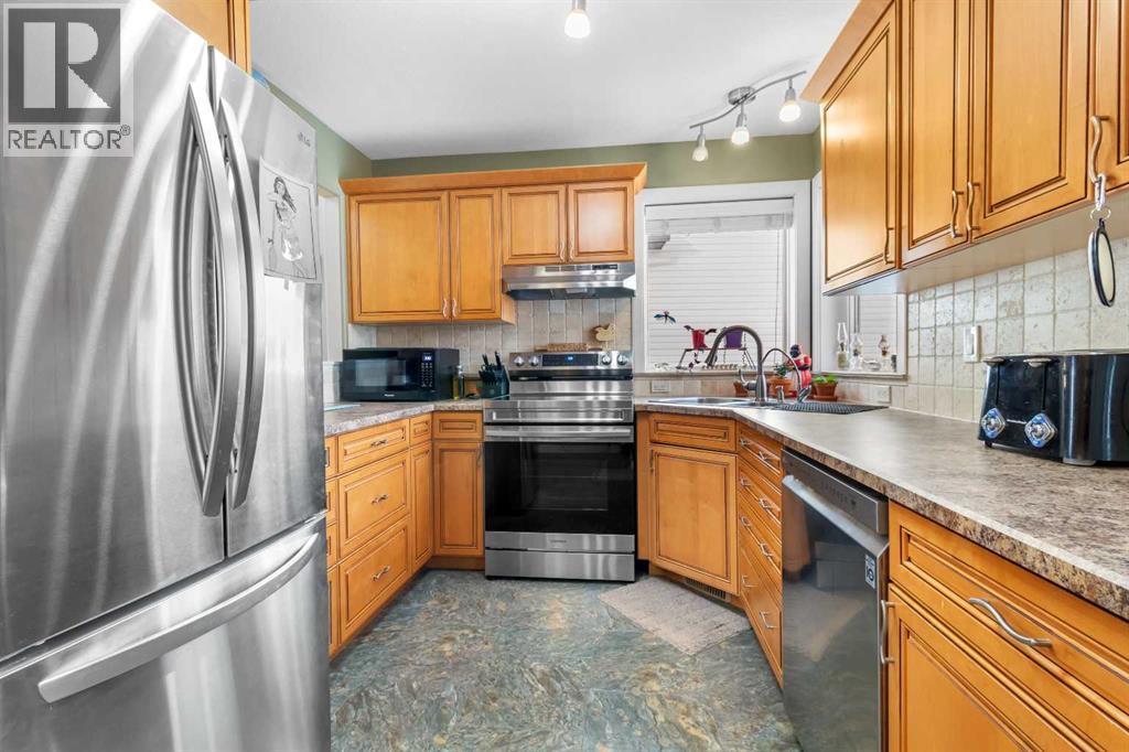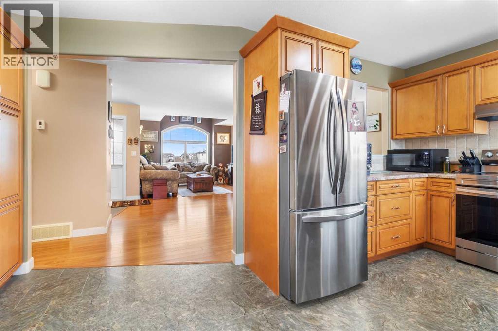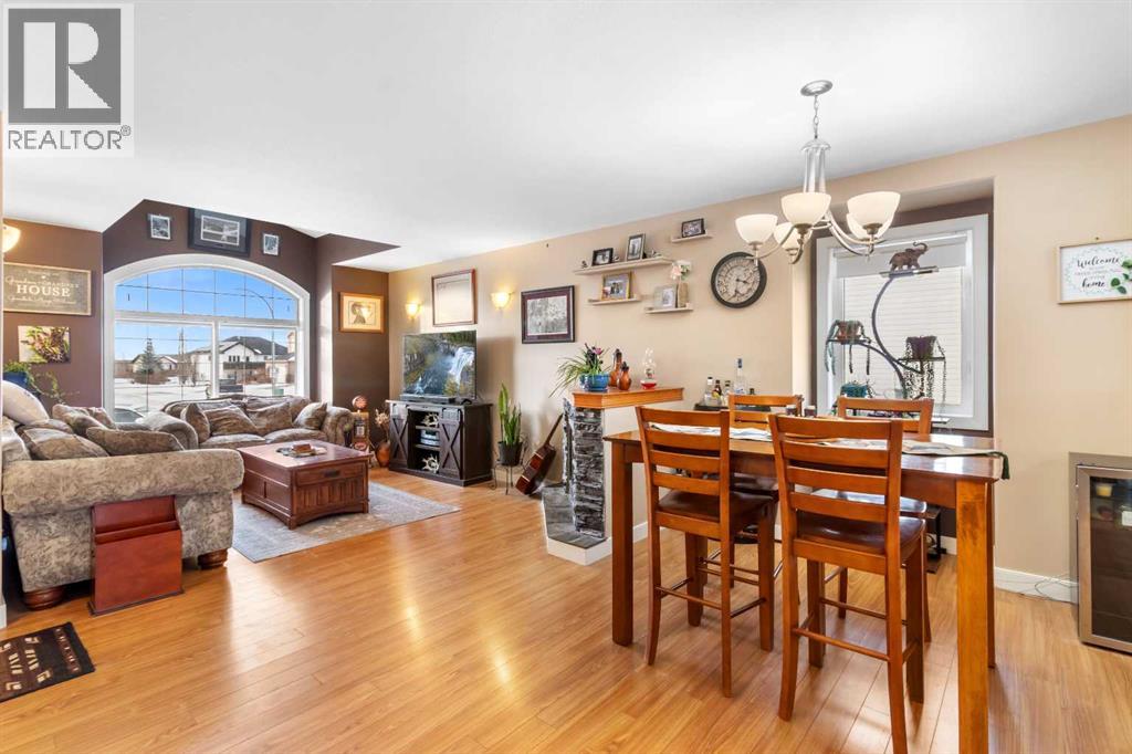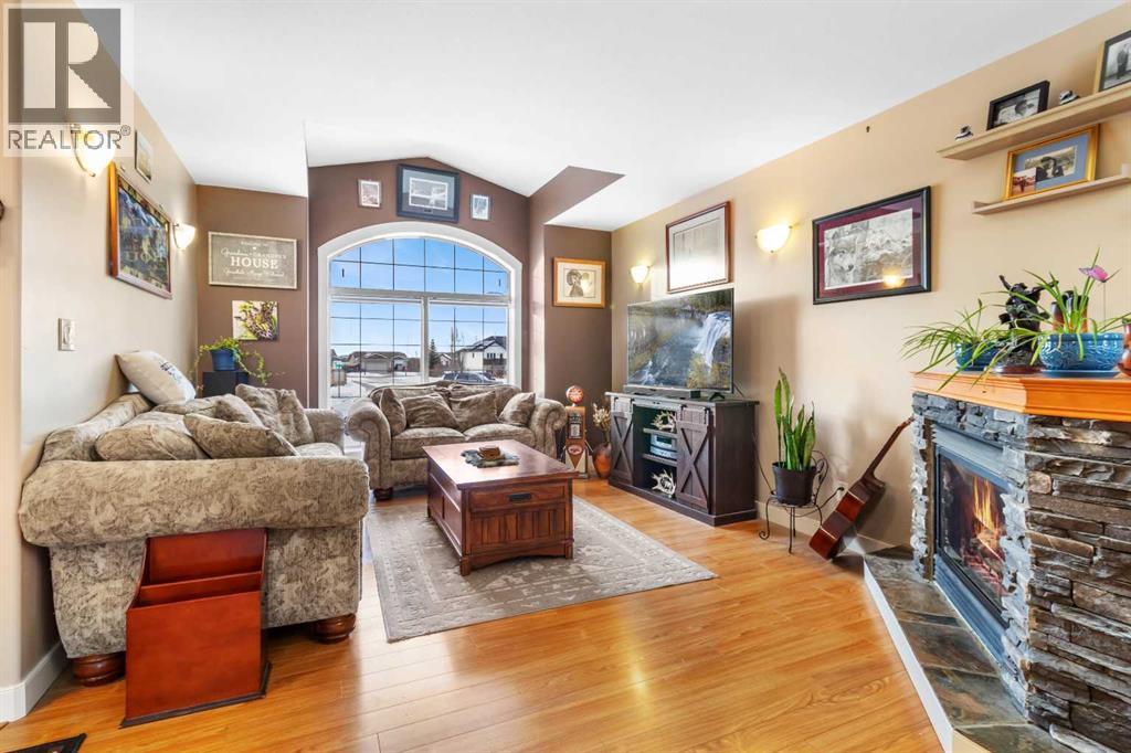 Bright, beautiful, cozy & comfortable is what comes to mind when you enter this lovely bungalow in Bowden. The large windows open into the living room, inviting natural light to showcase an open great-room feel. This house has it all - 3 bedrooms up, 2 baths, including a 4pc. main and 3pc. ensuite, main floor laundry, attached/insulated & finished garage, large windows & a stylish fireplace in the main living area, a bright, beautiful kitchen with coffee bar and pantry - and that's just upstairs!! Downstairs, you will find in-floor heat, 2 bedrooms & a den space, a family/rec room, a full 4pc bathroom, and an incredible amount of storage! Let's not forget the yard just off the kitchen, with a large east-facing deck offering a natural gas hookup & gazebo overlooking a beautiful green space. The fully fenced backyard has gorgeous perennial flowerbeds and room for a vegetable garden if you desire. A few updates include a new high-efficiency water heater in 2024 and a new 25-year roof and new eaves-troughing in 2025. The stove was purchased last year and carries an extended 4-year warranty. The gazebo on the rear deck is included in the sale. Located in a quiet subdivision, just minutes from schools, shopping, parks, and much more. Commutes: just 25 mins to Red Deer, 12 mins to Olds, and 10 mins to Innisfail. (id:63190)