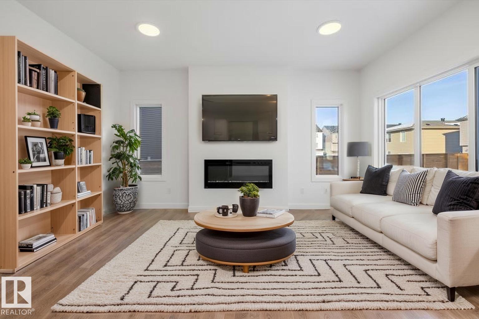 The Ascend 22 is a masterfully engineered home featuring an oversized double attached garage (2' extra width), 9’ ceilings, and a separate side entrance. Durable Luxury Vinyl Plank flooring spans the main level, leading from a spacious foyer into a bright, open-concept living area. The gourmet kitchen is highlighted by Quartz counters, a corner pantry, and a flush-ledge island, while the adjacent great room features a modern electric fireplace and garden door access to the yard. Upstairs, a central bonus room provides a versatile retreat near the dedicated laundry room. The primary suite is a true standout, offering a walk-in closet with its own window and a 4-piece ensuite with dual sinks and a glass shower. Two additional bedrooms and a full bath complete the second floor. Finished with brushed nickel fixtures and the premium Sterling Signature Specification, this home balances high-end style with everyday utility. (id:63190)
