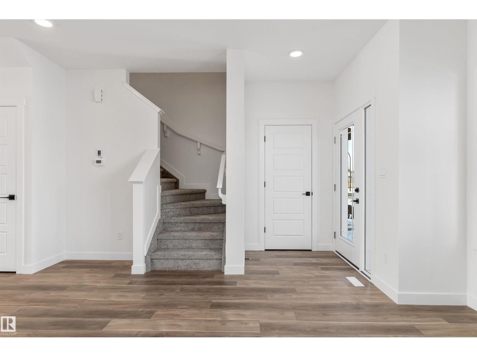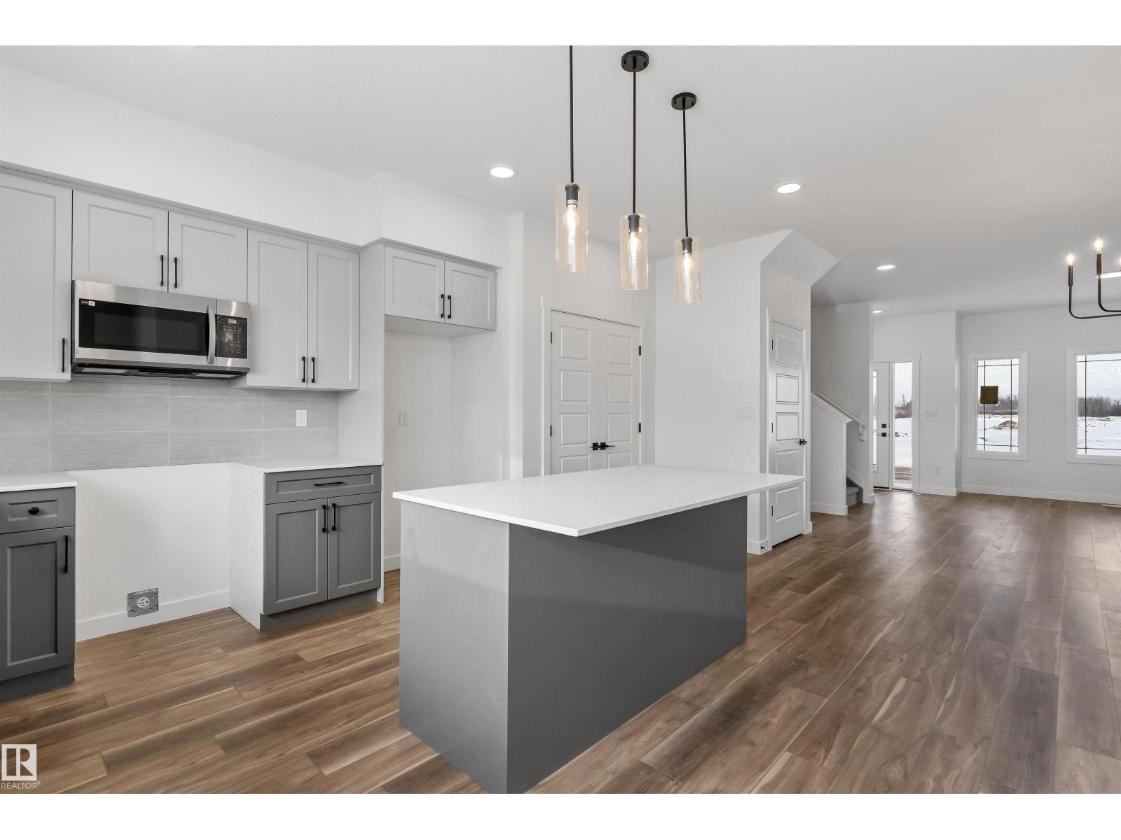 The Sansa is a premier example of refined living, featuring 9’ ceilings and Luxury Vinyl Plank flooring. The main level hosts a sun-soaked front great room that flows into an open dining area. At the rear, the L-shaped kitchen shines with Quartz surfaces, a flush-ledge island, and upgraded soft-close cabinetry paired with a dedicated pantry. A discreetly placed powder room leads to the backyard and parking pad, which offers potential for a future detached garage. The upper floor serves as a versatile retreat with a central loft and a primary suite featuring a walk-in closet and private ensuite. Two secondary bedrooms, a full bath, and a convenient laundry area complete the second level. Finished with contemporary black hardware, this home blends high-end style with smart utility. (id:63190)