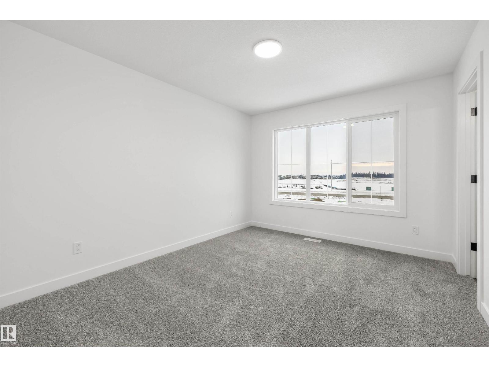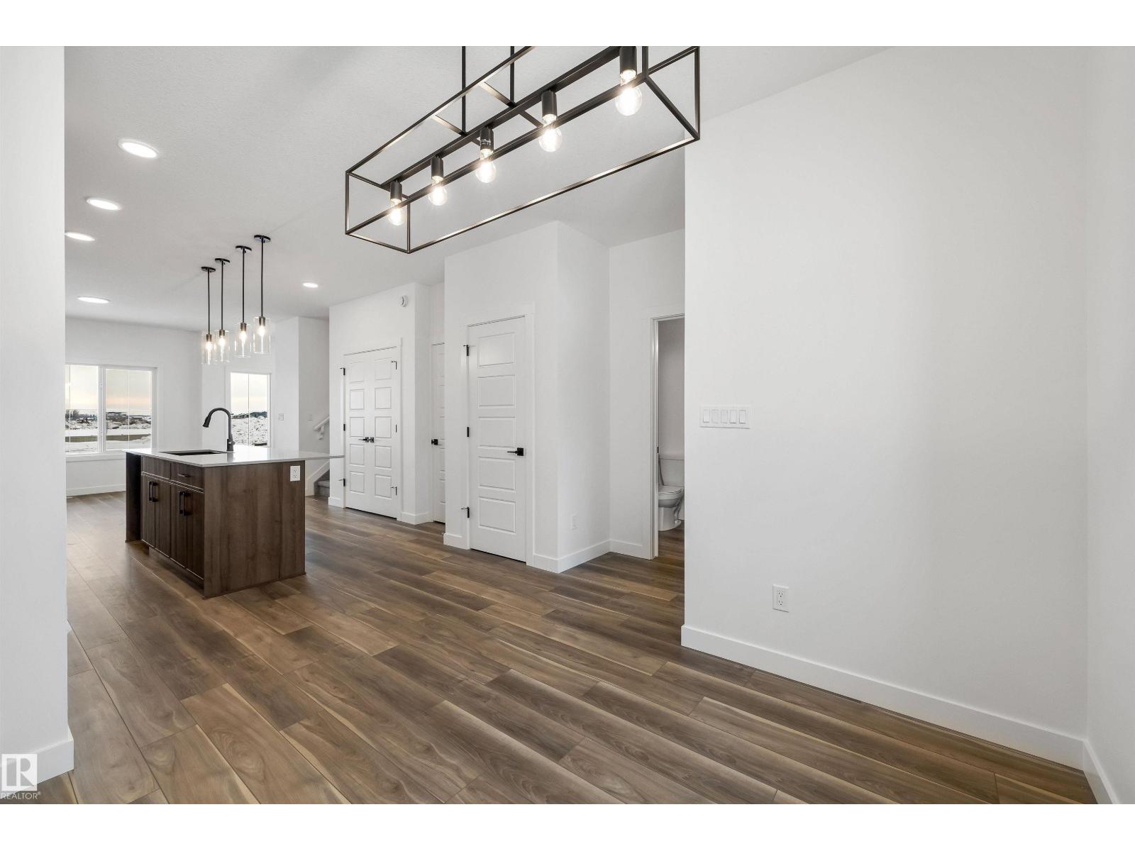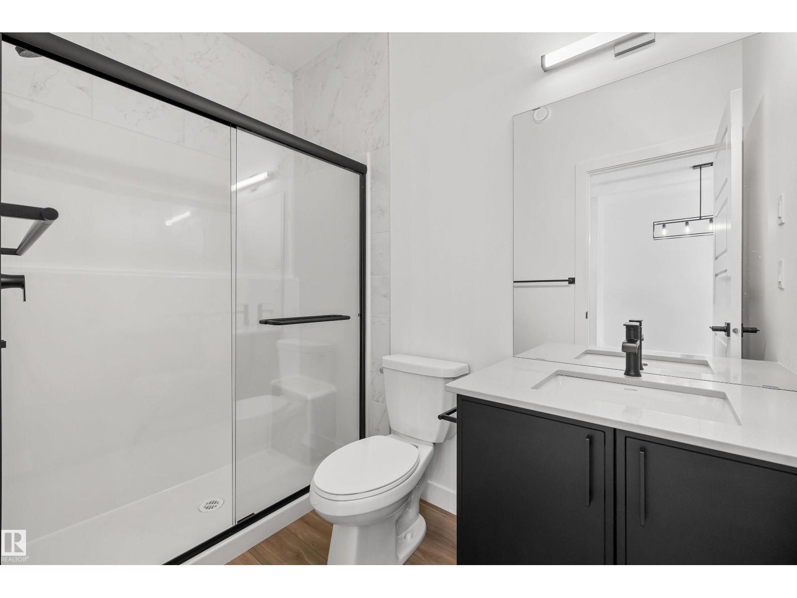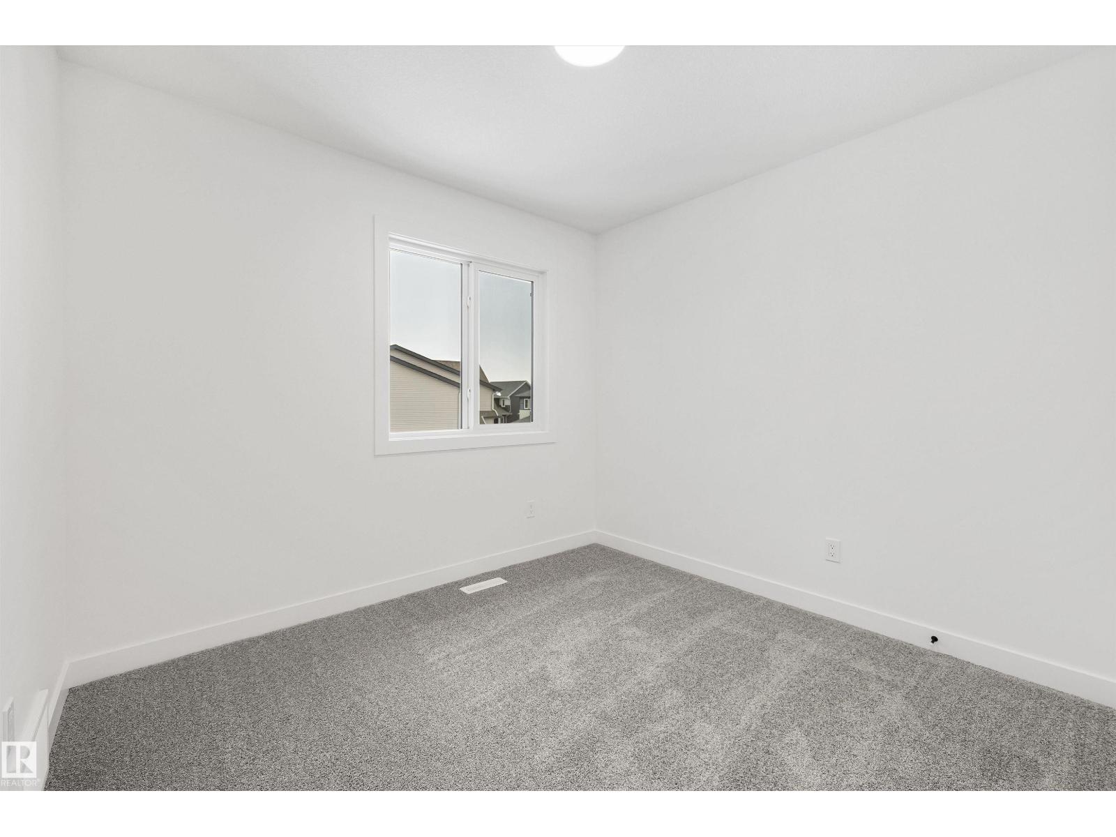 The Sylvan showcases elite craftsmanship, featuring 9’ ceilings and Luxury Vinyl Plank flooring that spans from the welcoming foyer to a sun-drenched front great room. The central kitchen serves as a high-end hub with stone surfaces, a flush-ledge island, and premium soft-close cabinetry. A unique highlight is the main-floor fourth bedroom and adjacent full three-piece bath, offering a private space for guests or a home office near the rear nook and garden door. The second level balances privacy and utility, hosting a primary suite with a walk-in closet and ensuite, plus two additional bedrooms and a dedicated laundry closet. Finished with bold black hardware, a separate side entrance, and a basement rough-in, this layout offers versatile living on every level. Outside, a rear parking pad provides space for an optional double garage. (id:63190)