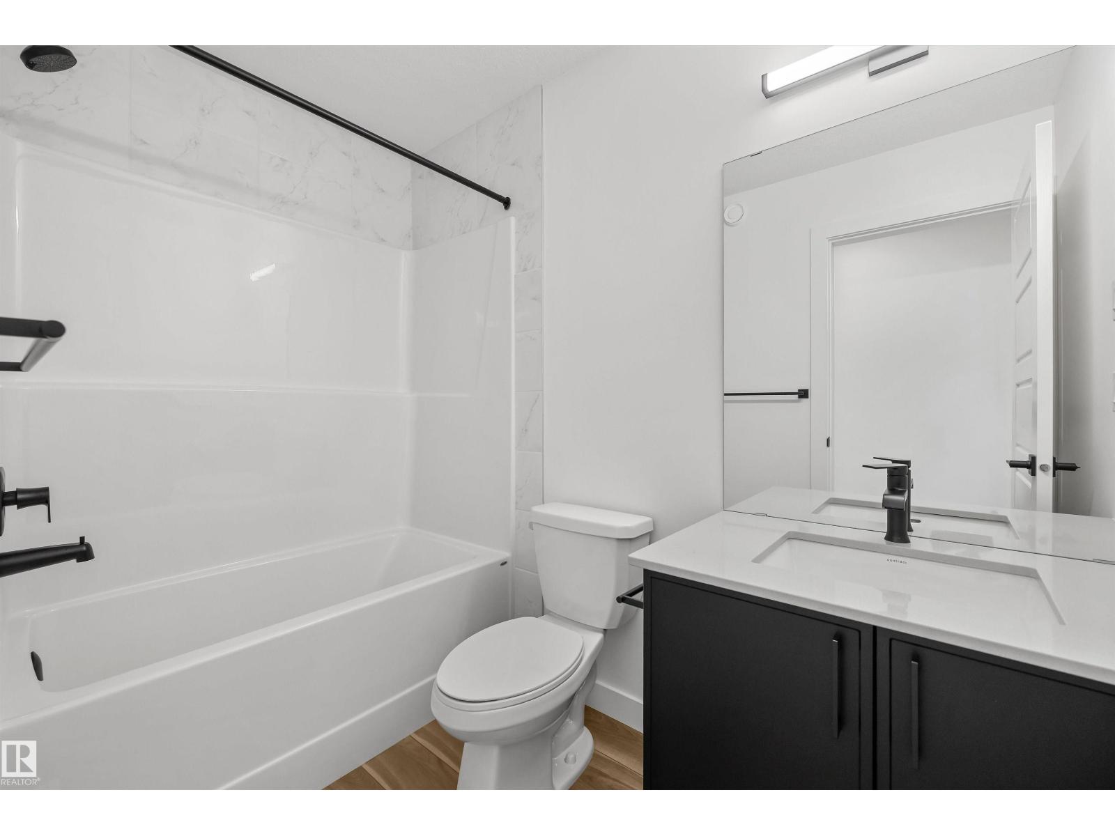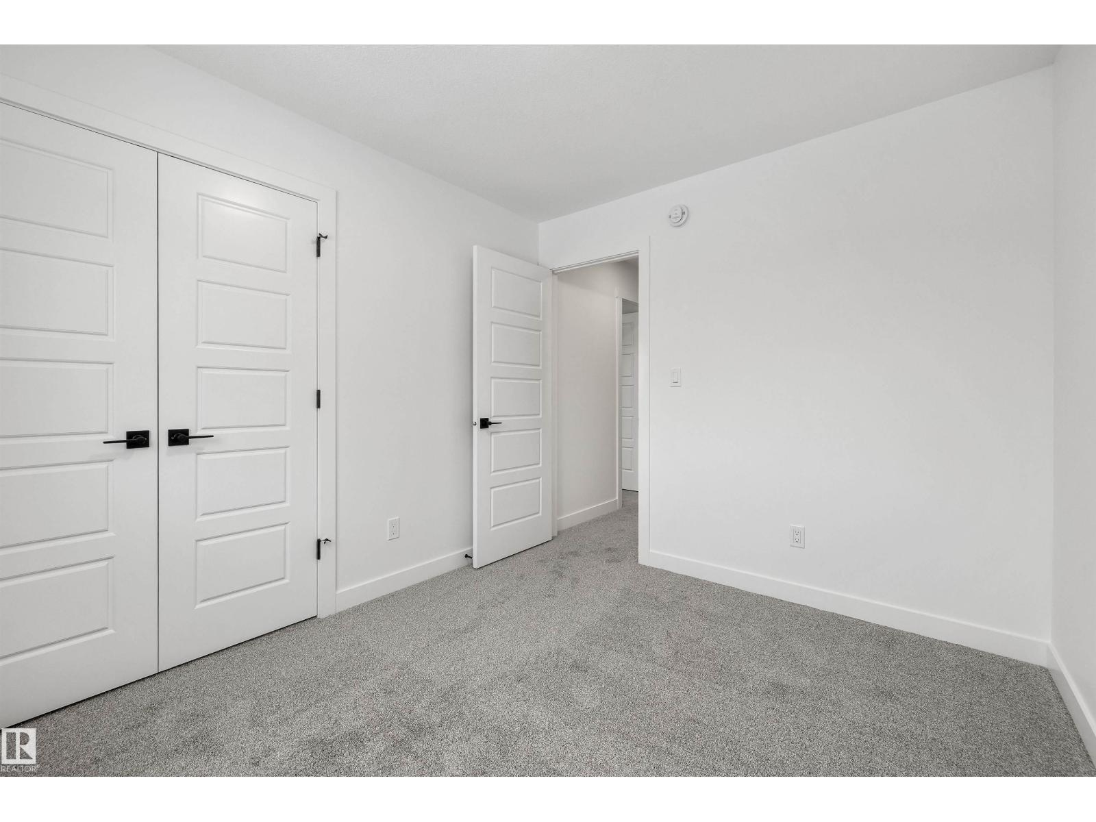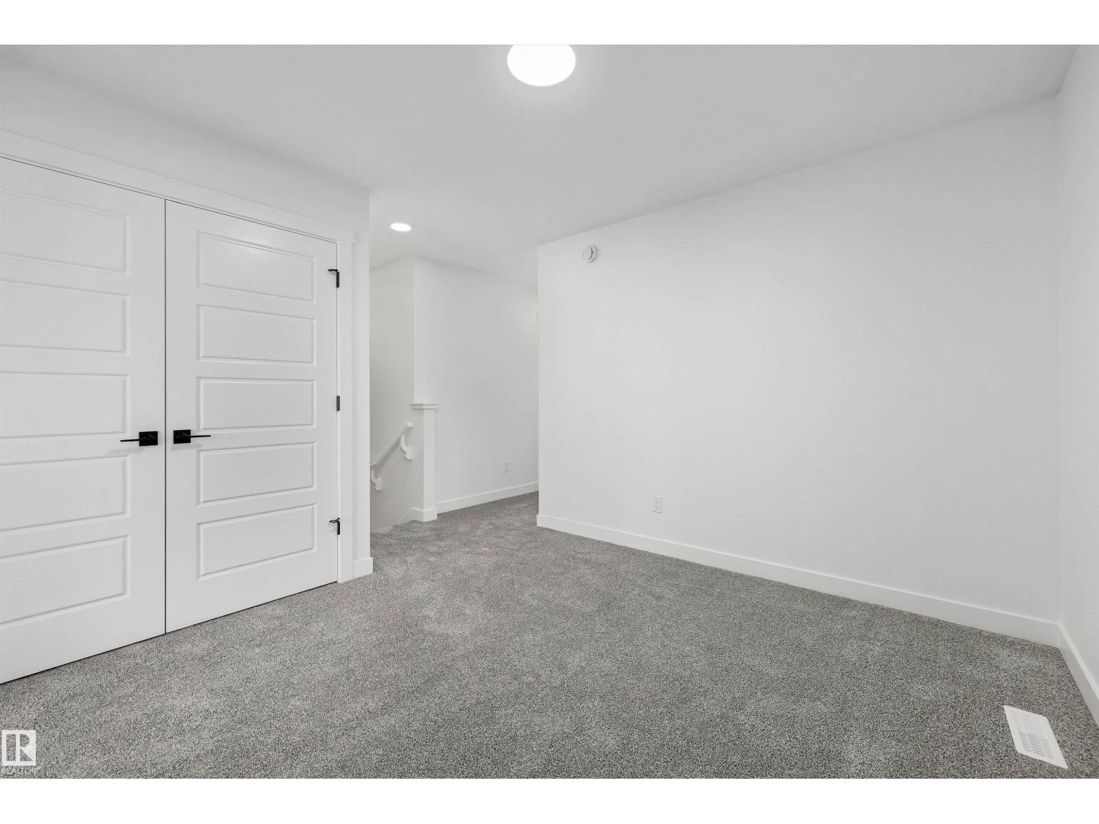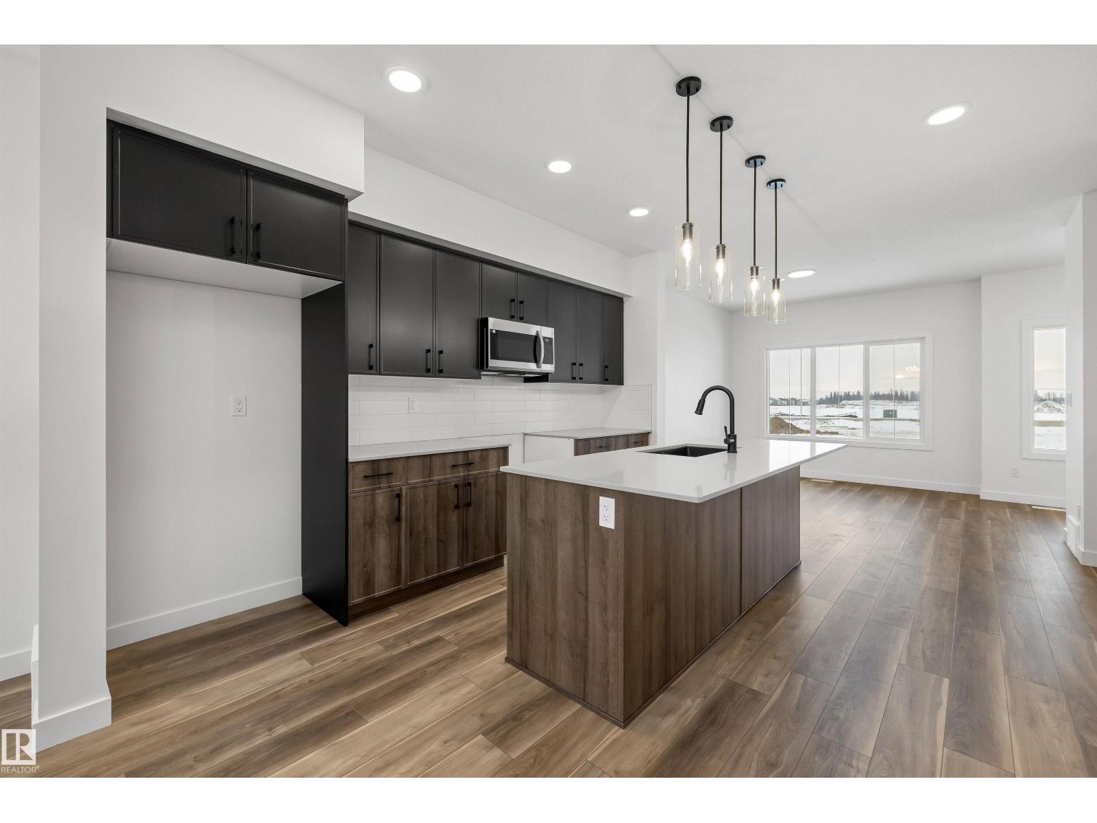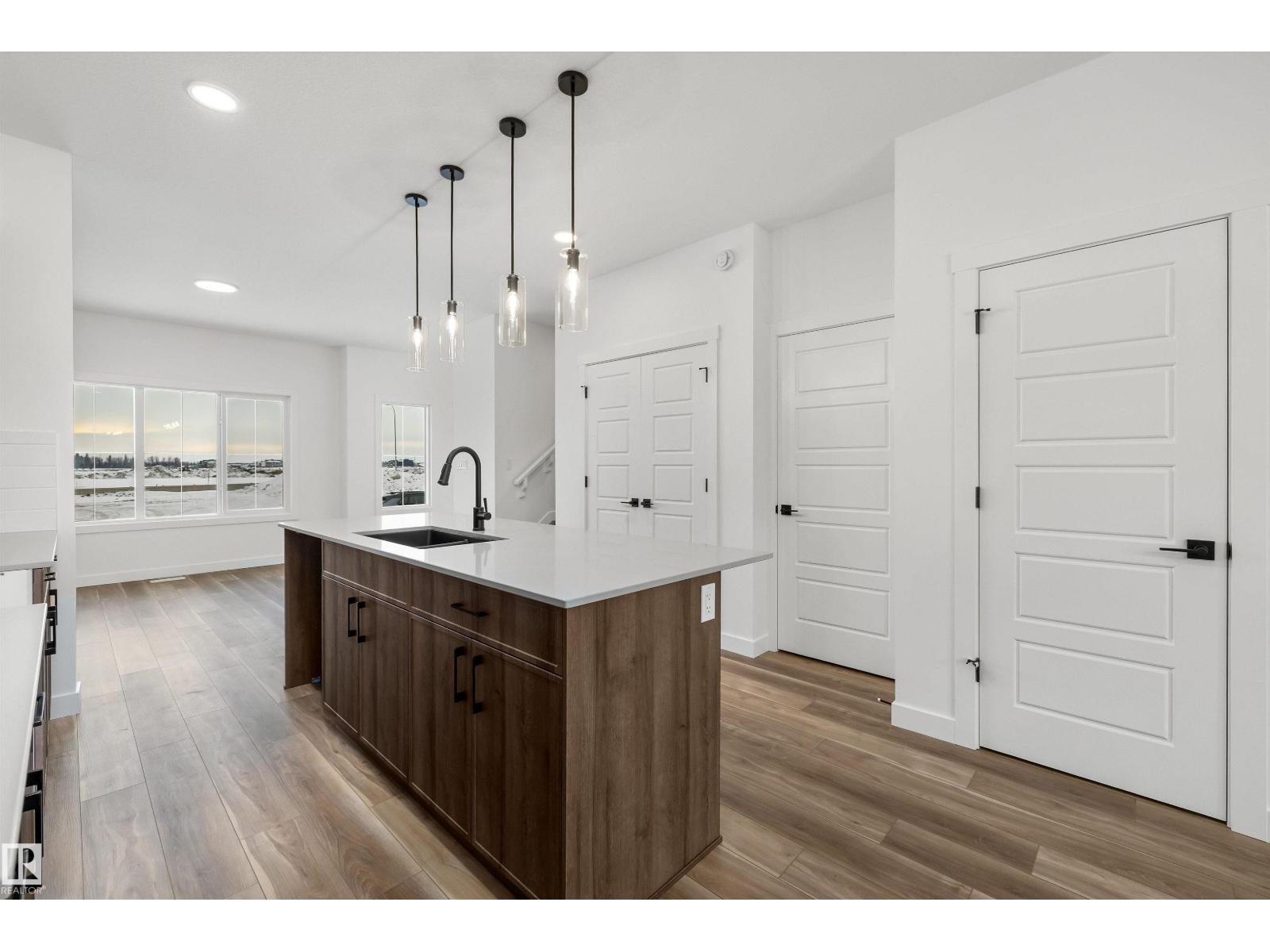The Sylvan showcases elite craftsmanship, featuring 9’ ceilings and Luxury Vinyl Plank flooring that spans from the welcoming foyer to a sun-drenched front great room. The central kitchen serves as a high-end hub with stone surfaces, a flush-ledge island, and premium soft-close cabinetry. A unique highlight is the main-floor fourth bedroom and adjacent full three-piece bath, offering a private space for guests or a home office near the rear nook and garden door. The second level balances privacy and utility, hosting a primary suite with a walk-in closet and ensuite, plus two additional bedrooms and a dedicated laundry closet. Finished with bold black hardware, a separate side entrance, and a basement rough-in, this layout offers versatile living on every level. Outside, a rear parking pad provides space for an optional double garage. (id:63190)