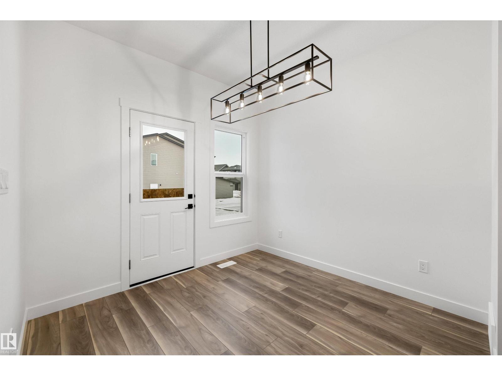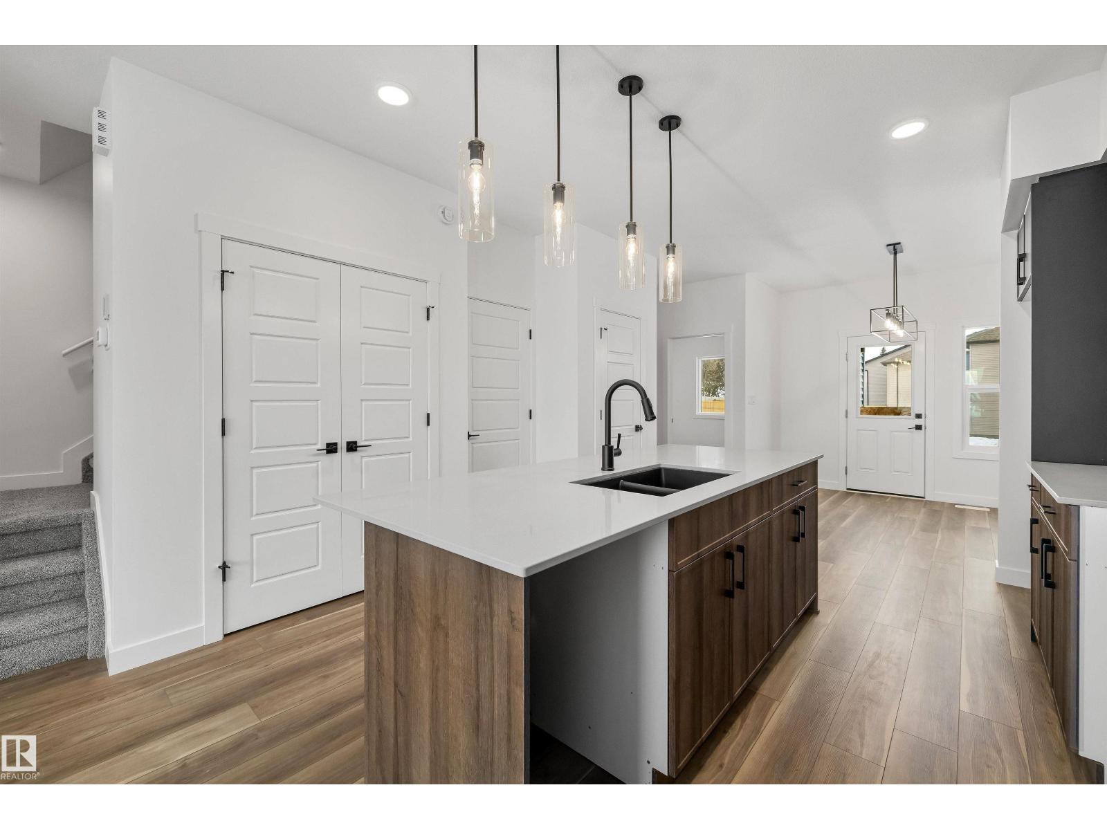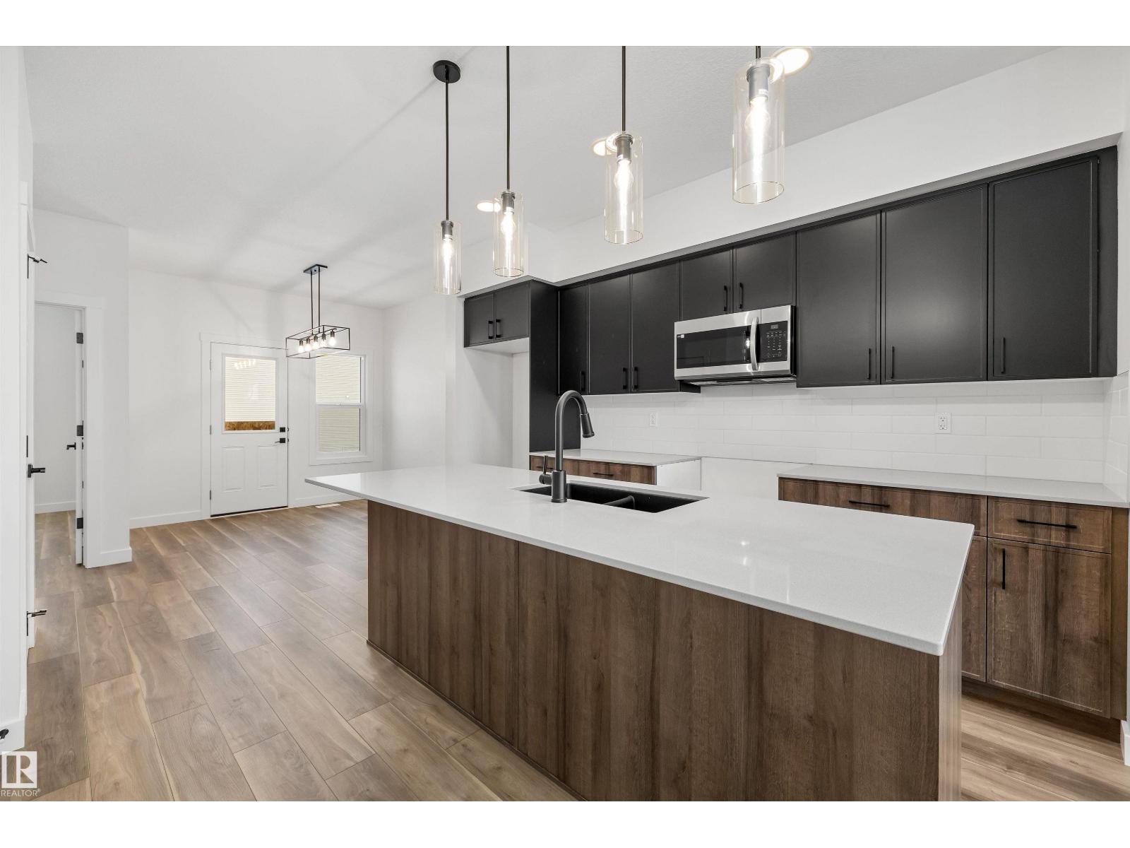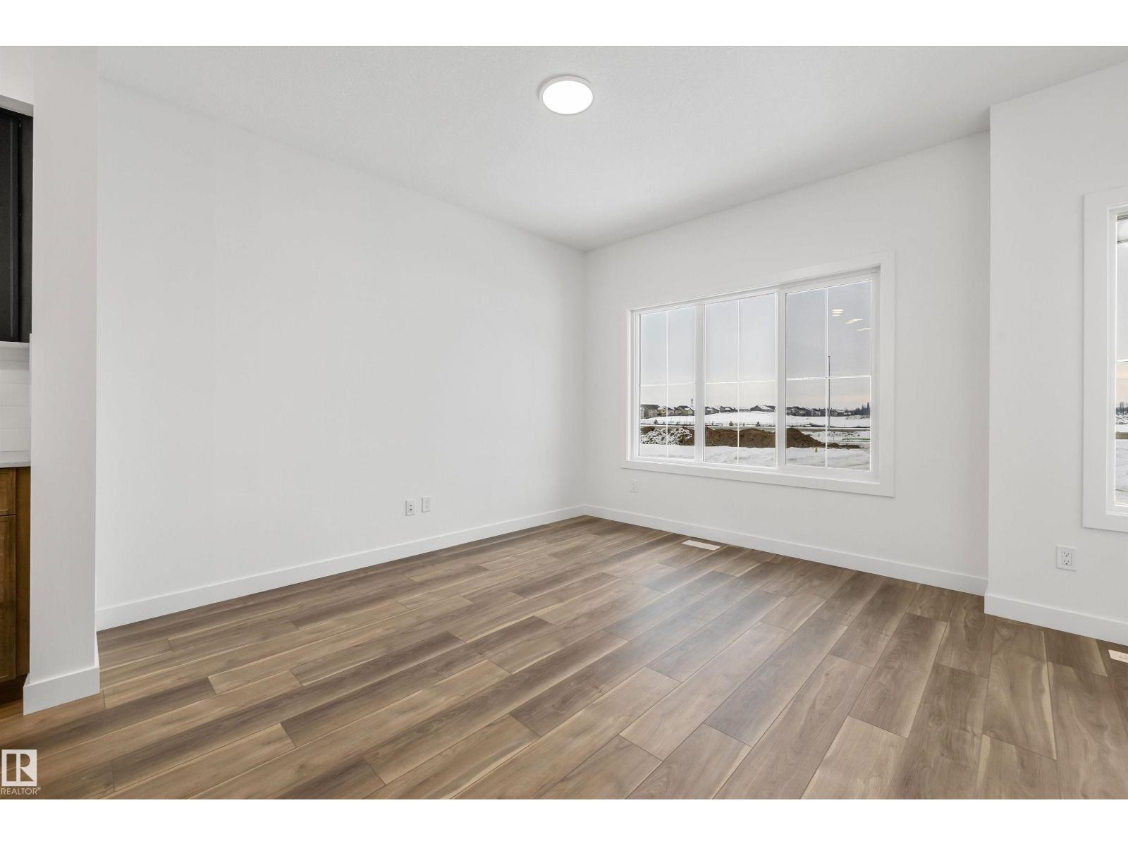 The Sylvan showcases elite craftsmanship, featuring 9’ ceilings and Luxury Vinyl Plank flooring that spans from the welcoming foyer to a sun-drenched front great room. The central kitchen serves as a high-end hub with stone surfaces, a flush-ledge island, and premium soft-close cabinetry. A unique highlight is the main-floor fourth bedroom and adjacent full three-piece bath, offering a private space for guests or a home office near the rear nook and garden door. The second level balances privacy and utility, hosting a primary suite with a walk-in closet and ensuite, plus two additional bedrooms and a dedicated laundry closet. Finished with bold black hardware, a separate side entrance, and a basement rough-in, this layout offers versatile living on every level. Outside, a rear parking pad provides space for an optional double garage. (id:63190)