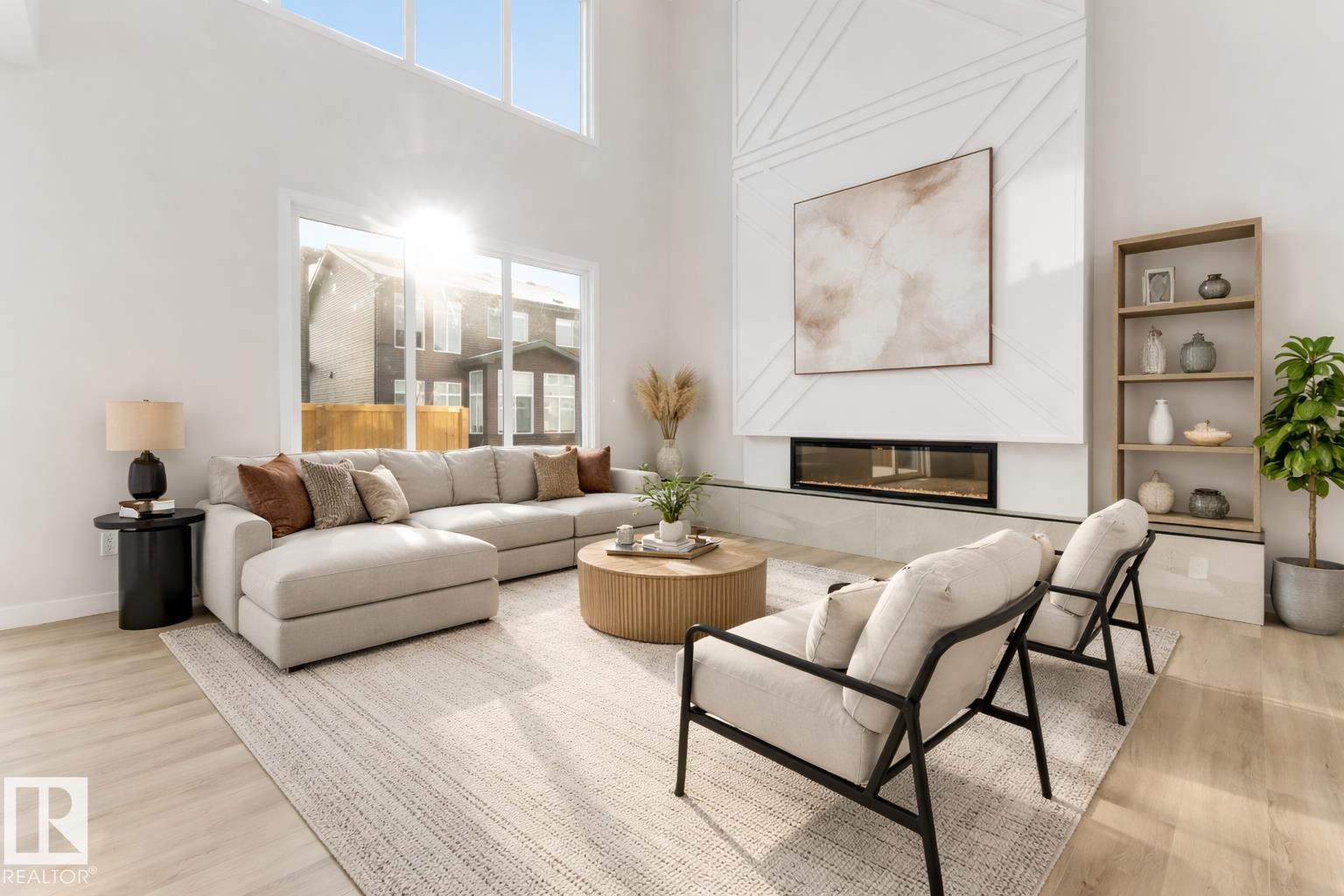 Welcome to this stunningly upgraded 2,300 sq. ft. detached home located in the heart of Keswick, one of Edmonton’s most sought-after communities. Offering 3+1 generously sized bedrooms and 3 full bathrooms, this residence blends modern design with everyday functionality, making it ideal for family living. Step inside to a dramatic open-to-above living room highlighted by oversized windows that fill the space with abundant natural light. The contemporary layout is enhanced by 9-foot ceilings on both the main and upper levels, creating a bright, spacious, and inviting atmosphere throughout. The main floor features a convenient full bedroom and bathroom, perfect for guests, extended family, or multigenerational living. The stylish kitchen flows seamlessly into the living and dining areas, providing an excellent space for entertaining with sleek finishes and thoughtful design .Situated just minutes from the highly regarded Joey Moss K–9 School, this home offers the perfect blend balance and comfort. (id:63190)