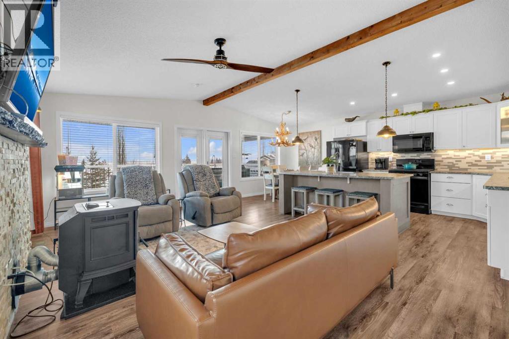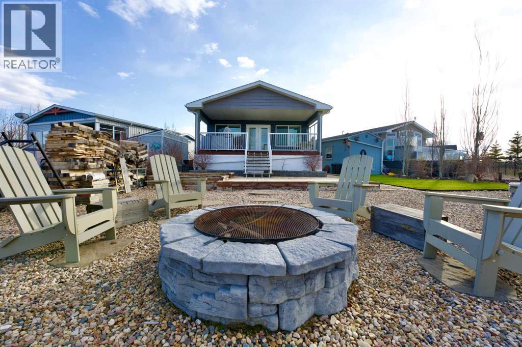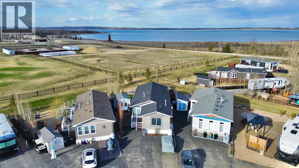 Welcome to Sandy Point Resort, an exclusive gated lakeside community on the west shores of Gull Lake, just minutes from Bentley—where refined living, nature, and recreation come together in a true four-season retreat.Tucked away on a large pie-shaped lot in a quiet cul-de-sac, this custom-designed 2-bedroom, 1-bathroom executive home backs directly onto the golf course driving range with no neighbours behind, offering exceptional privacy and unobstructed panoramic views of the lake and fairways. Fully landscaped and thoughtfully positioned, this property delivers a peaceful, private setting surrounded by breathtaking scenery. A spacious 10 x 24 covered back deck extends your living space outdoors, providing the perfect place to relax, entertain, and take in the stunning lake and golf course views in any season.Inside, the Great Room is the heart of the home—warm, inviting, and designed for both comfort and entertaining. A cozy pellet stove framed by a striking stone feature wall creates ambiance year-round, while expansive picture windows flood the space with natural light and showcase the stunning views. The open-concept design flows seamlessly into the chef’s kitchen, complete with a gas stove, pot drawers, custom lighting, and a spacious walk-through pantry with solid shelving, offering both style and exceptional functionality.The primary bedroom easily accommodates a king-size bed and features a large walk-through closet with Jack-and-Jill access to the bathroom, blending comfort with convenience. A generous second bedroom provides the perfect space for guests, making this home ideal for hosting family and friends.Sandy Point Resort offers a truly elevated lifestyle with exclusive resident amenities including a community gazebo with fire pit, playgrounds, scenic bike trails, and convenient on-site laundry, showers, and restrooms for year-round enjoyment. Golf enthusiasts will appreciate the driving range and the upcoming brand-new 12-hole golf course. Th e full-service marina with gas and propane makes lake days effortless, while the seasonal restaurant with rooftop patio is the perfect place to relax and take in the views.Additional features include gated storage, a community garden, and close proximity to local greenhouses and berry farms, offering a true farm-to-table lifestyle. Whether you’re seeking a seasonal escape or a full-time residence, this one-of-a-kind custom home is a rare opportunity to own a prime lake property in one of Alberta’s most desirable resort communities.Enjoy lakeside living, year-round recreation, and a vibrant community—all just a short drive to Bentley, Lacombe, and Sylvan Lake.This is lake life at its finest. Book your showing today. (id:63190)