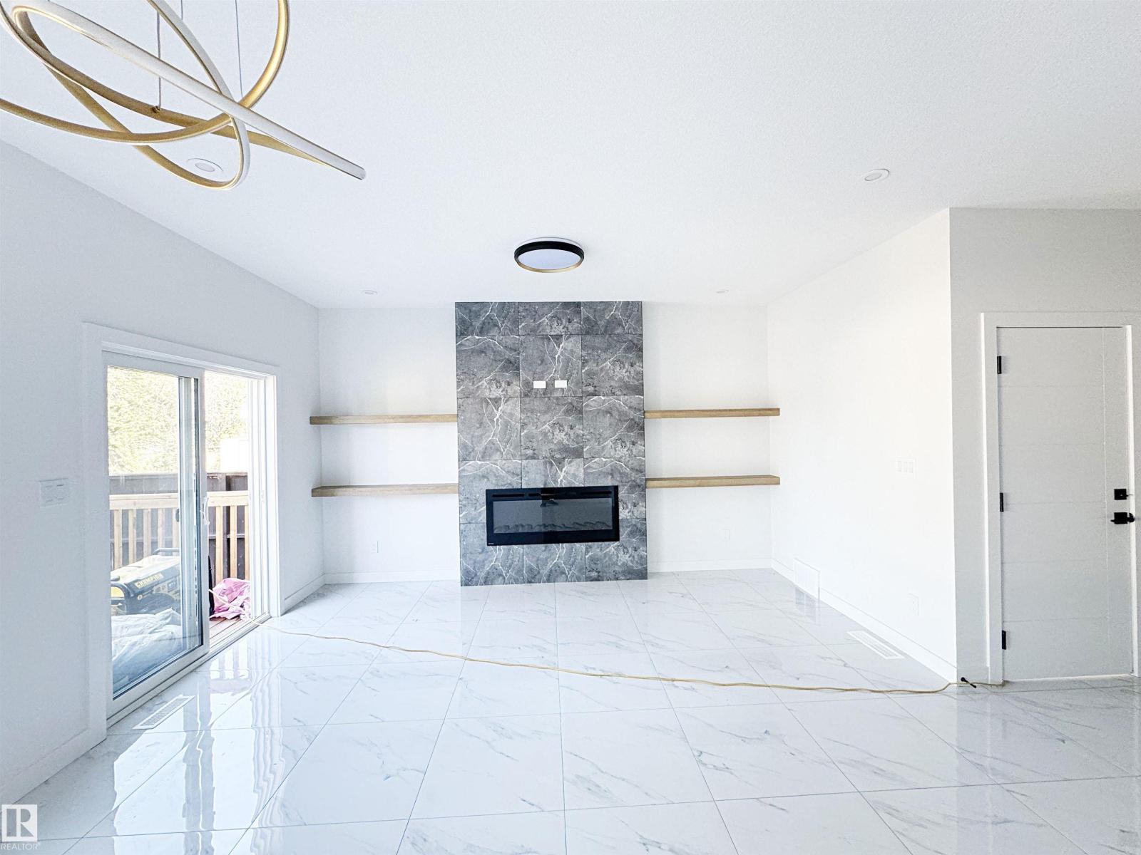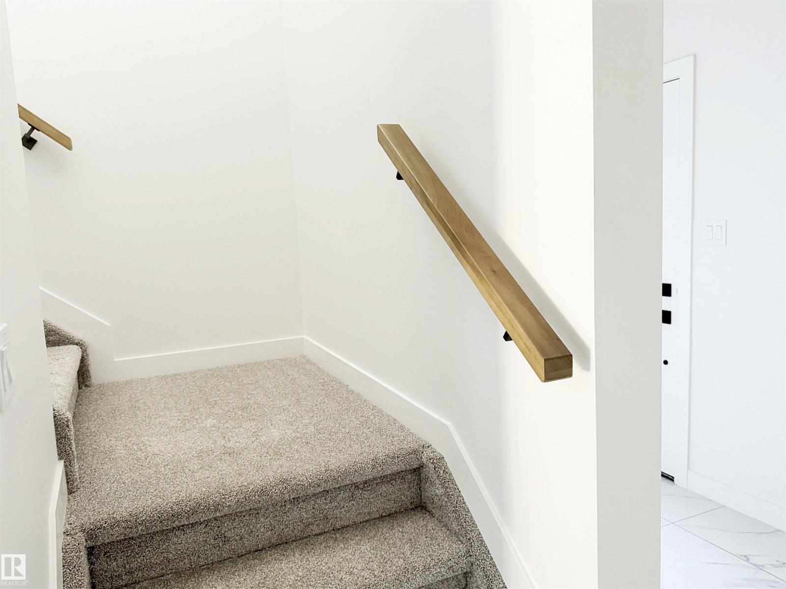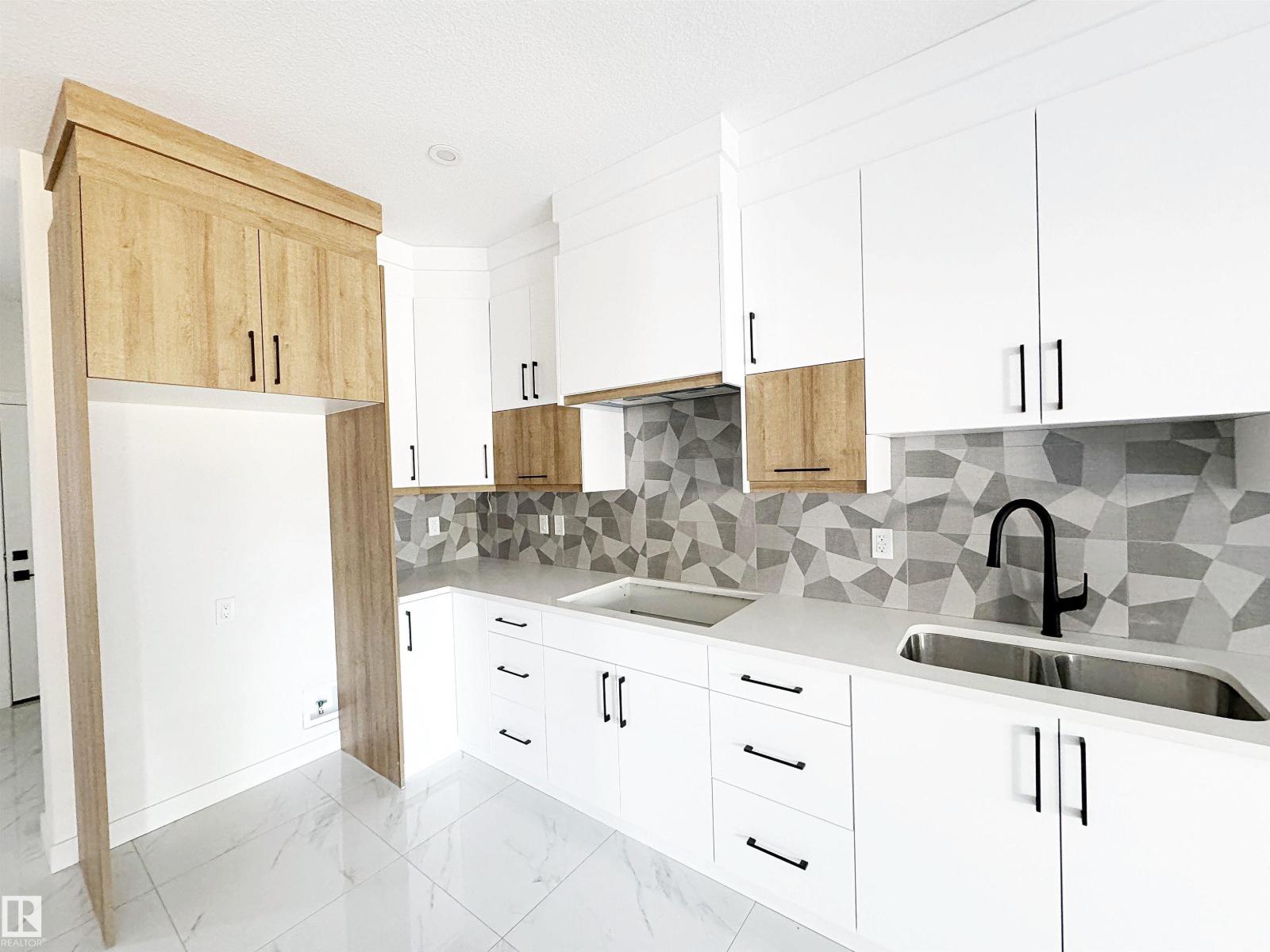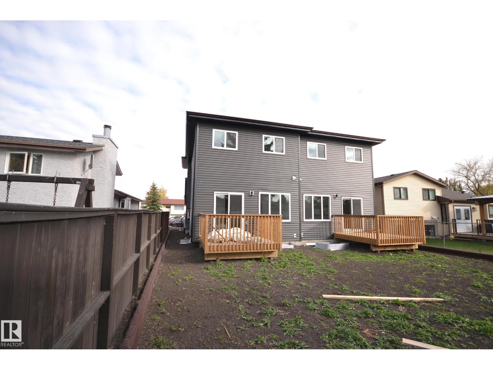 Stunning two-story duplex with LEGAL SECONDARY SUITE in the mature, family-friendly community of Crawford Plains, close to schools, parks, shopping, and transit. Offering approx. 2,400 sq. ft. on 3 levels, this property features 5 bedrooms and 3.5 bathrooms—ideal for investors or multi-generational living. The main floor includes a bright living room with an electric fireplace, access to a sun deck, and a stylish European-inspired kitchen with quartz countertops, ample cabinetry, and a spacious dining area. Upstairs offers a primary bedroom with an ensuite and a walk-in closet, two additional bedrooms, a bonus room, a full bath, and a laundry with a sink. The legal basement suite with a separate entrance features 2 bedrooms, a kitchen, a living area, a full bath, and its own laundry, providing excellent rental income potential. Modern exterior with vinyl & smart board siding, double attached garage, and an impressive 8’ front door with sidelights complete this fantastic opportunity. A Super 10! Hurry! (id:63190)