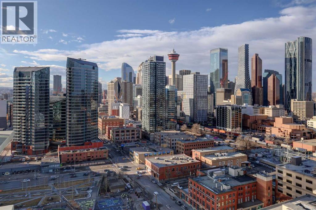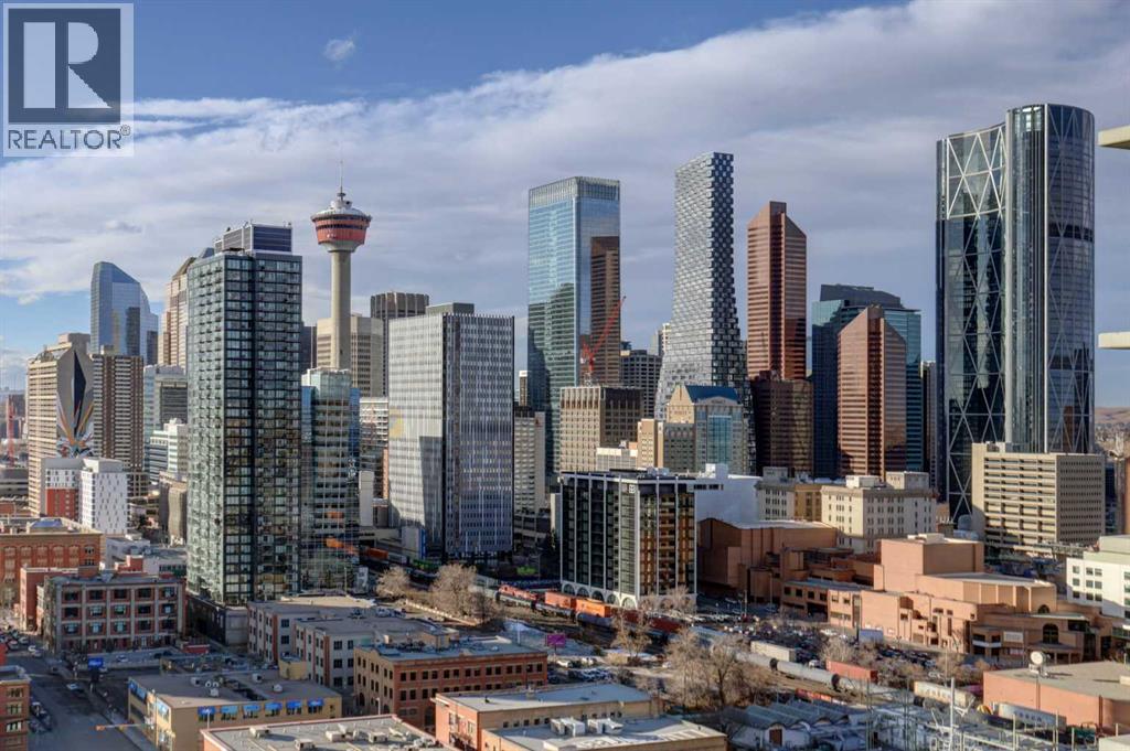 Experience elevated urban living with a VIEW | Modern one Bedroom Condo with Titled Underground Parking & assigned Storage, in The Guardian South Tower - one of Calgary’s most iconic high rise communities with incredible amenities. Inside, the thoughtfully designed open-concept layout is anchored by a sleek, contemporary Kitchen featuring integrated executive style appliances including a hidden refrigerator, all complemented by elegant stone countertops and modern cabinetry. Flowing seamlessly into the dining and living area, where floor-to-ceiling windows flood the space with natural light. Stepping out to the spacious covered Balcony to enjoy vibrant city views and stunning sunsets, glass railings help showcase the spectacular views of Calgary’s skyline - including the iconic Calgary Tower. A full blind package provides both style and privacy, upgraded LVP flooring throughout enhances the modern feel, and CENTRAL AIR conditioning ensures year-round comfort. Take advantage of The Guardian’s impressive resident AMENITIES, including a huge social club with fireplace, big-screen TVs, Wi-Fi, and lounge seating, a fully equipped FITNESS centre that rivals most gyms, and an expansive landscaped GARDEN TERRACE. This home includes titled, secure, heated UNDERGROUND PARKING and assigned storage locker. The building is pet-friendly with approval, and professionally managed, making it an ideal choice for professionals, investors, or anyone seeking a low-maintenance downtown lifestyle. Perfectly positioned in the heart of the Beltline, this home places you steps from the Stampede Grounds, Scotiabank Saddledome, transit, casinos, and an endless selection of restaurants, cafés, and shopping. A rare opportunity to own in one of Calgary’s most sought-after towers… Walkability & urban living at its FINEST. This unit checks all the boxes, book your private viewing before it’s too late!! (id:63190)
