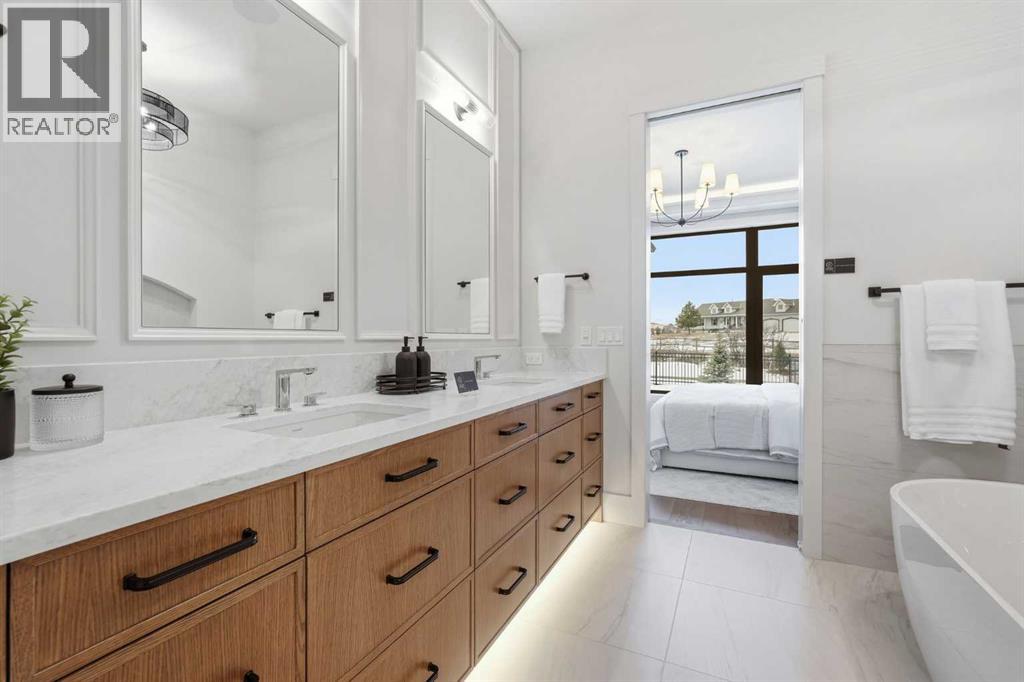 OPEN HOUSE SATURDAY, APRIL 25TH & SUNDAY, APRIL 26TH FROM NOON - 5 PM BOTH DAYS. Nestled in the heart of Serenity at Heritage Pointe and backing onto a beautifully landscaped greenspace, this luxurious 3 bedroom, 3.5 bath villa with the Sawyer floorplan has been carefully crafted by RareBuilt Homes & offers over 3200 sq ft of exceptional living space. The open concept main floor impresses with luxury vinyl plank flooring, custom tile detailing, 10’ ceilings, and a spacious great room with large sliding doors that open to a covered rear deck and private fenced yard. The chef inspired kitchen is equipped with a full Whirlpool appliance package, including a six burner gas cooktop, custom hood fan, refrigerator/freezer, dishwasher, and built in oven with convection microwave. A generous island, ample storage, and thoughtful layout make this kitchen ideal for both everyday living and entertaining. A stylish home office with beam detailing adds both character and functionality. The primary suite provides a serene retreat, complete with a spa inspired 5 piece ensuite featuring heated floors, a freestanding soaker tub, an oversized shower, and a custom walk in closet. The fully finished basement extends the living space with a large recreation room, two additional bedrooms, a full bath plus a large storage room. Additional highlights include tilt and turn triple glazed windows, 6 standard solar panels, a high efficiency furnace, heat pump, air conditioning, and radiant in floor heating—ensuring year round comfort and energy efficiency. Outside, enjoy a covered composite rear deck with custom aluminum railing plus a fully landscaped & irrigated yard including ornamental fencing and gate in the rear yard providing access to 2 km of local pathways. Parking is effortless with a fully finished and painted oversized double attached garage complete with epoxy flooring, aggregate driveway and EV charger readiness. Enjoy the freedom of full landscape maintenance and snow removal plu s close proximity to Heritage Pointe Golf Club, LaunchPad Golf at Heritage Pointe & easy access to Calgary or Okotoks via highway 2 or 2A. (id:63190)